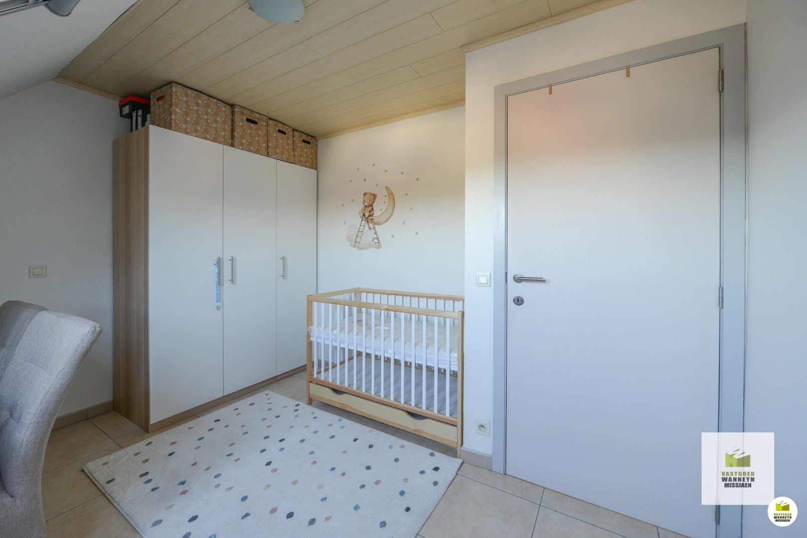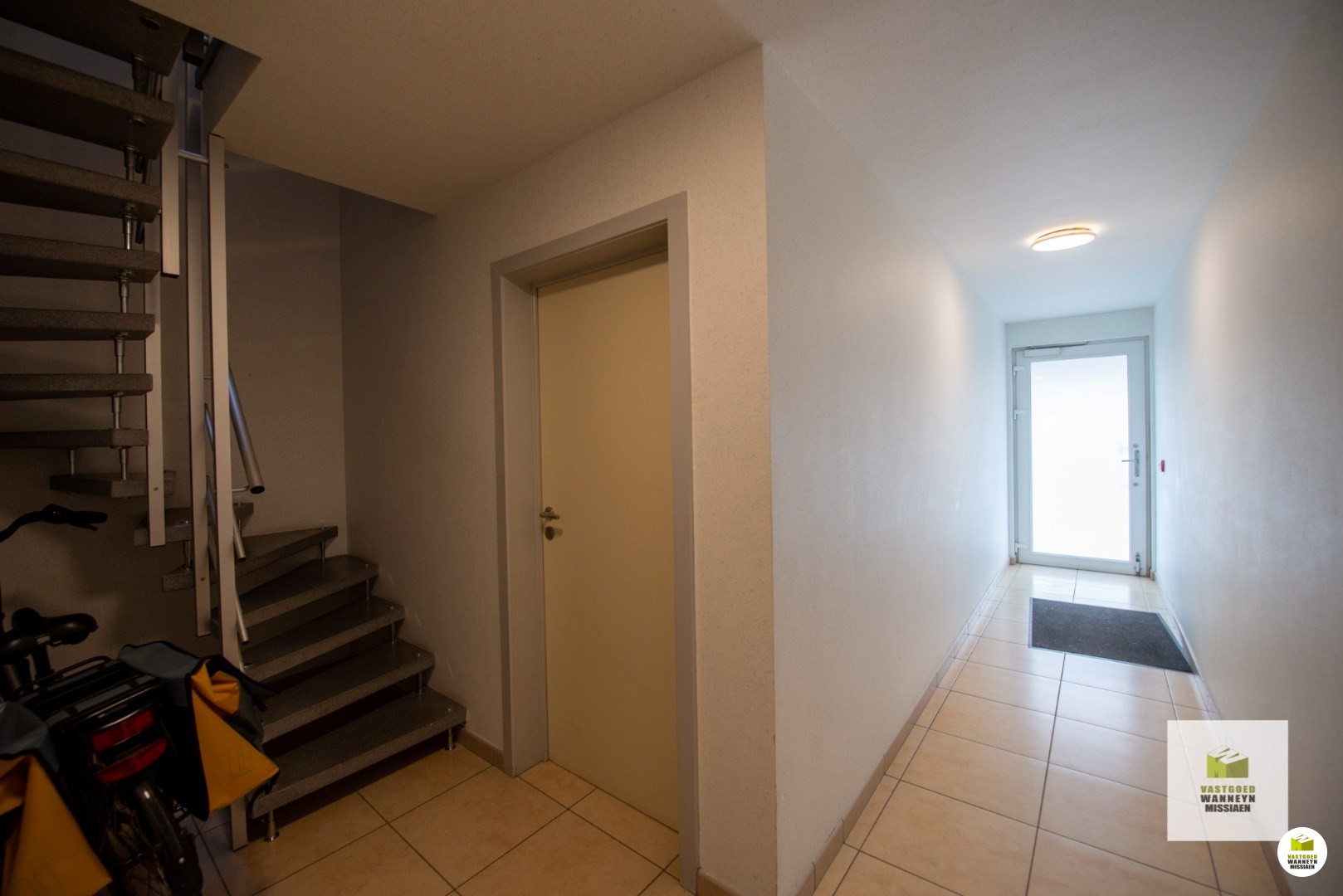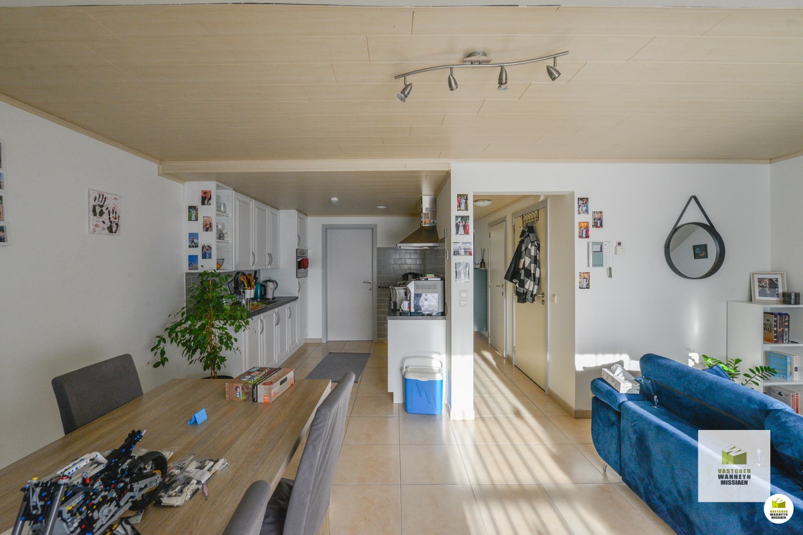 Het is meteen thuiskomen wanneer men in de lichtrijke leefruimte met open keuken binnenwandelt. Dankzij het grote schuifraam dat toegang geeft tot het zuidgericht terras wordt veel natuurlijk licht naar binnen getrokken. De ruime leefruimte biedt voldoende ruimte voor een gezellige zithoek alsook een grote eettafel. Vervolgens is de keuken, die is uitgerust met een combi-oven, dampkap, kookplaat en ingebouwde frigo. Palend aan de keuken is nog een praktische berging voorzien. Verder zijn een apart gastentoilet, de badkamer en 2 slaapkamers terug te vinden. De badkamer is voorzien van alle nodige faciliteiten: ruime douche, aansluiting voor de wasmachine en lavabo. Beide slaapkamers werden uitgerust met een Velux met verduistering.