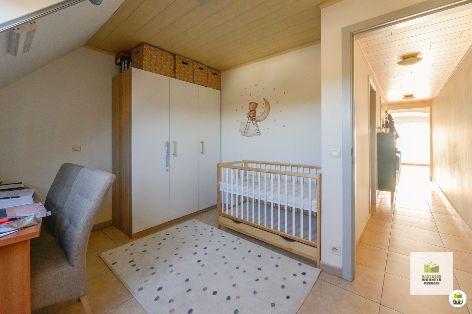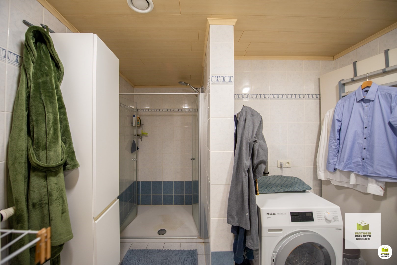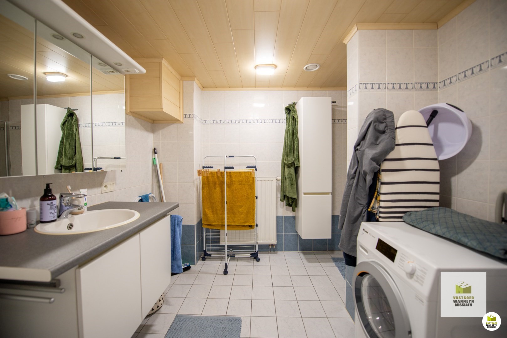 Het is meteen thuiskomen wanneer men in de lichtrijke leefruimte met open keuken binnenwandelt. Dankzij het grote schuifraam dat toegang geeft tot het zuidgericht terras wordt veel natuurlijk licht naar binnen getrokken. De ruime leefruimte biedt voldoende ruimte voor een gezellige zithoek alsook een grote eettafel. Vervolgens is de keuken, die is uitgerust met een combi-oven, dampkap, kookplaat en ingebouwde frigo. Palend aan de keuken is nog een praktische berging voorzien. Verder zijn een apart gastentoilet, de badkamer en 2 slaapkamers terug te vinden. De badkamer is voorzien van alle nodige faciliteiten: ruime douche, aansluiting voor de wasmachine en lavabo. Beide slaapkamers werden uitgerust met een Velux met verduistering.