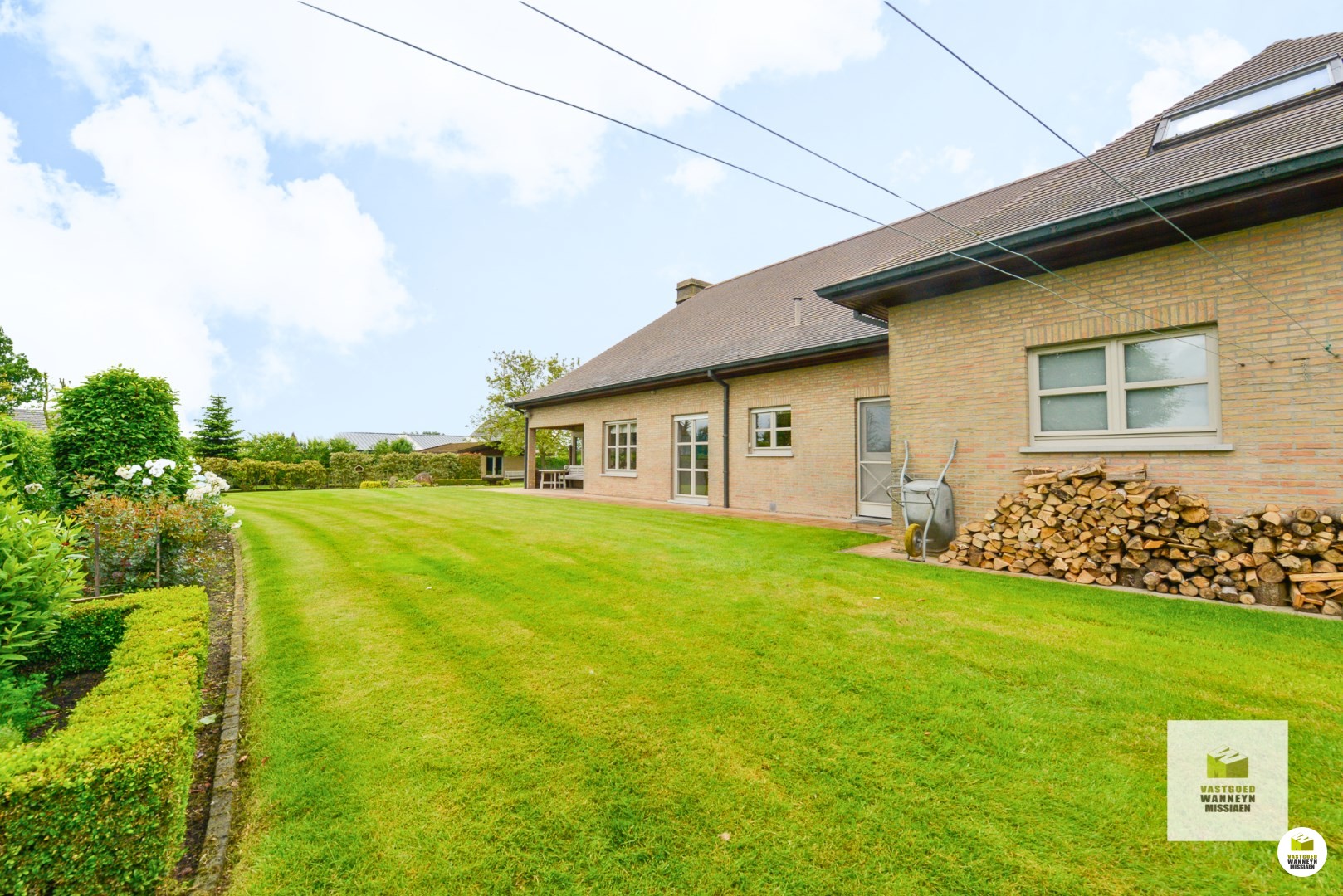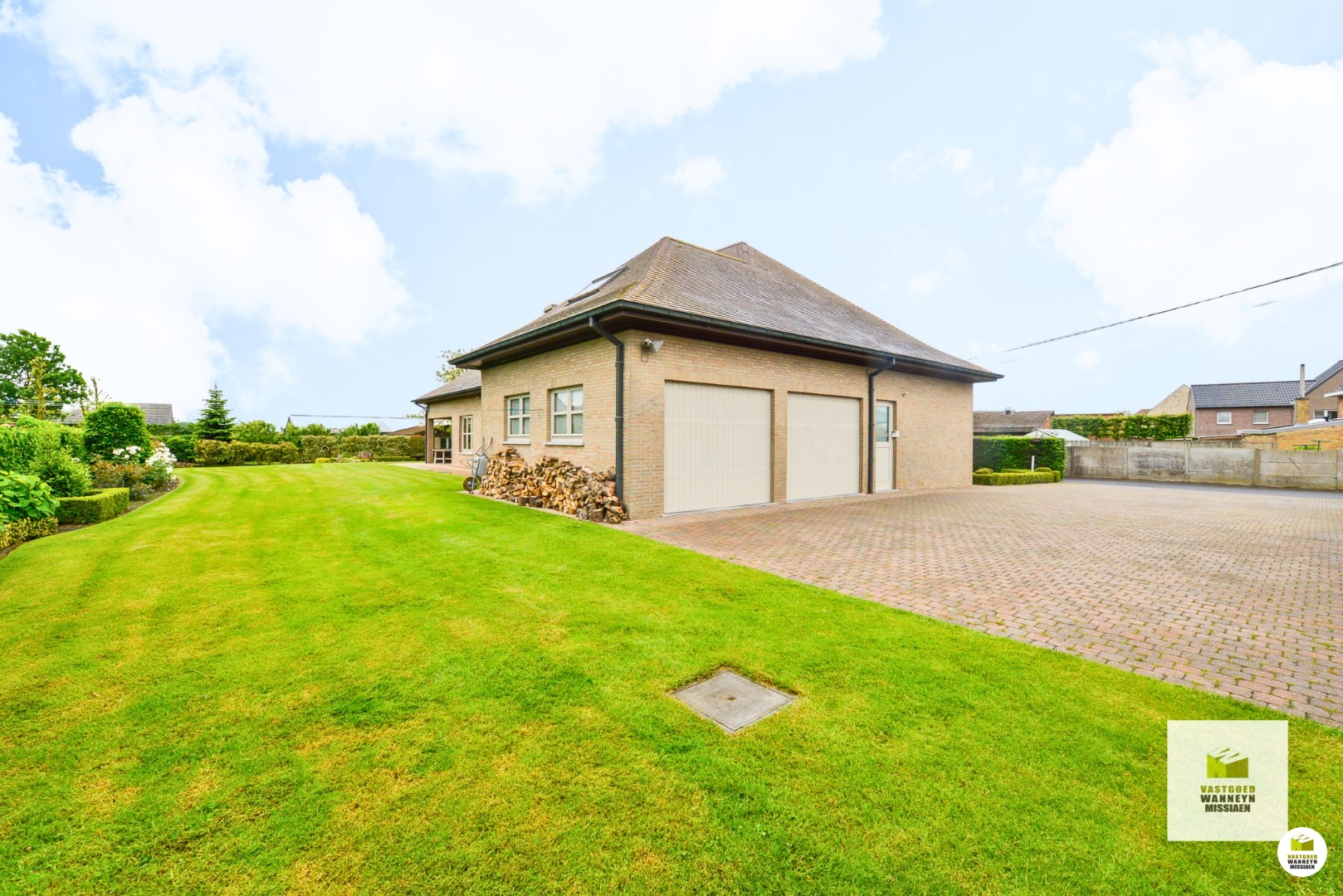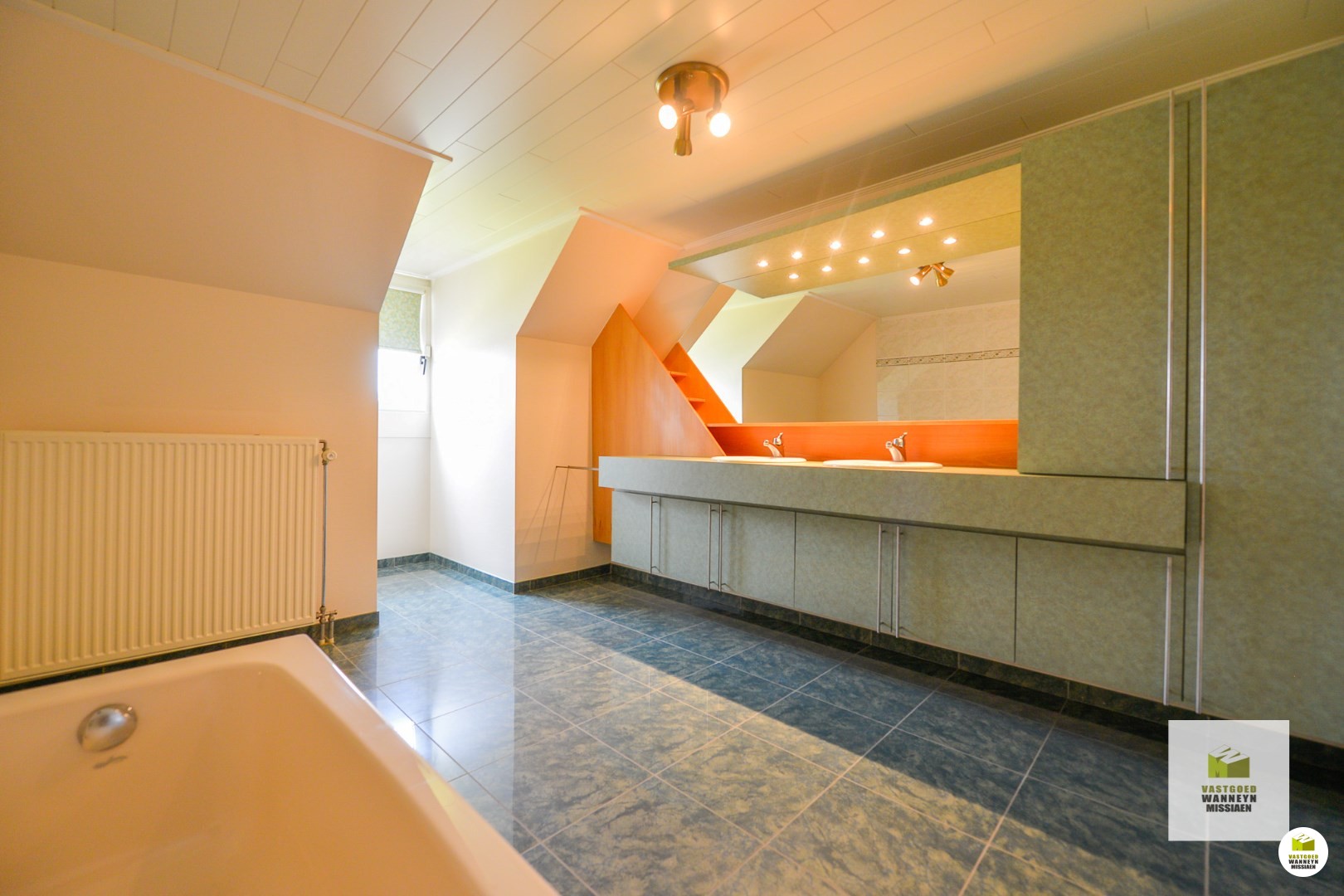 De keuken is aansluitend gelegen maar wel afsluitbaar door een schuifwand, en daardoor dus perfect als dé centrale ontmoetingsplaats. In de keuken kan er een groot gezin eten. Vanuit de keuken bereik je de wijnkelder, de rekken zijn "eigen makelij" maar brengen ook hier extra cachet. Naast de keuken vinden we de wasplaats met veel bergruimte en aansluitend, de dubbele garage die voorzien is van nog meer inbouwkasten. Er zijn 2 automatische poorten en een aparte nis voor papier, leeggoed, vuilbakken, poetsgerief,.. De tuin is netjes onderhouden en beplant met seizoensbloemen, planten en diverse terrassen. Er is veel parkeergelegenheid door de grote oprit. Er is nog een tuinhuis van +/- 50 m2. Achter het tuinhuis is er nog een kippenpark en een plek voor een grote moestuin, een tuin om te ravotten, etc..