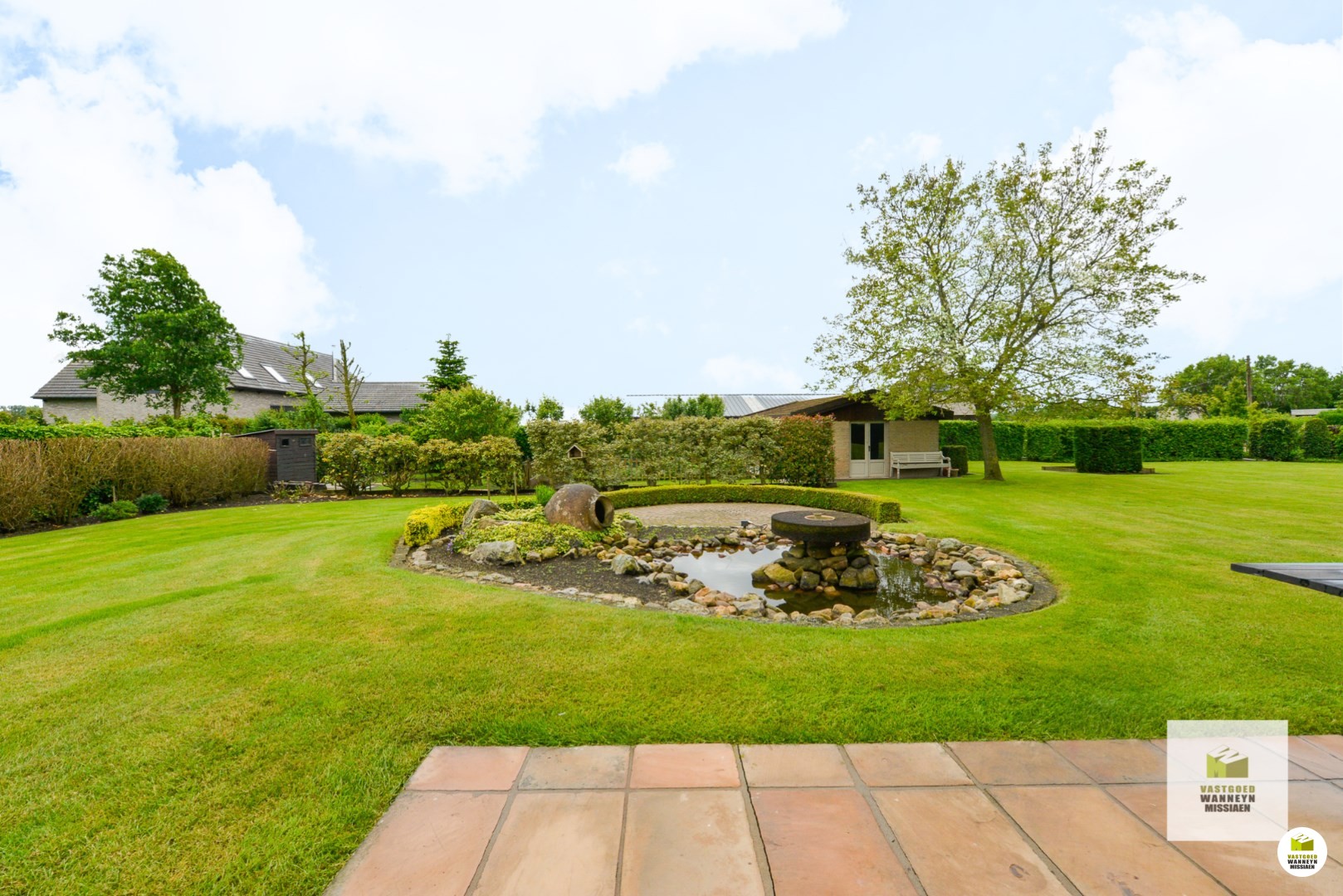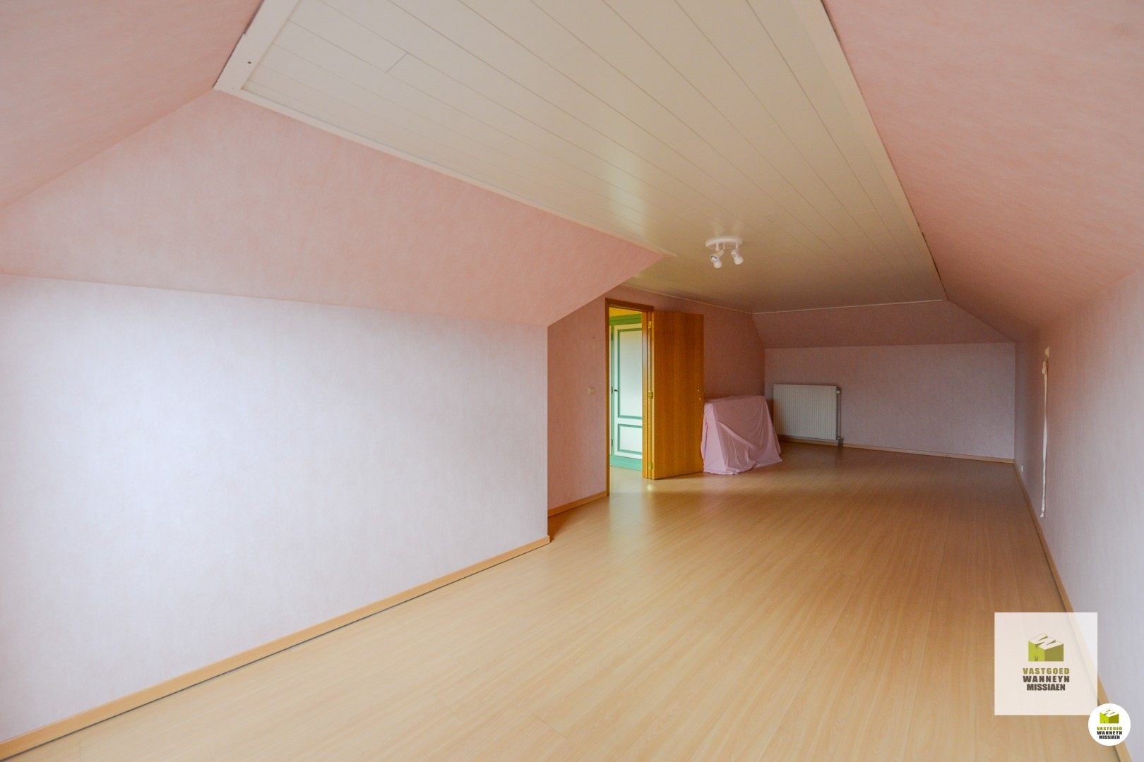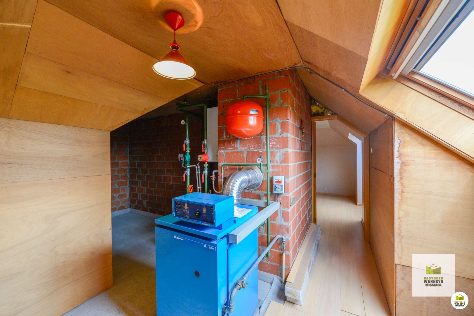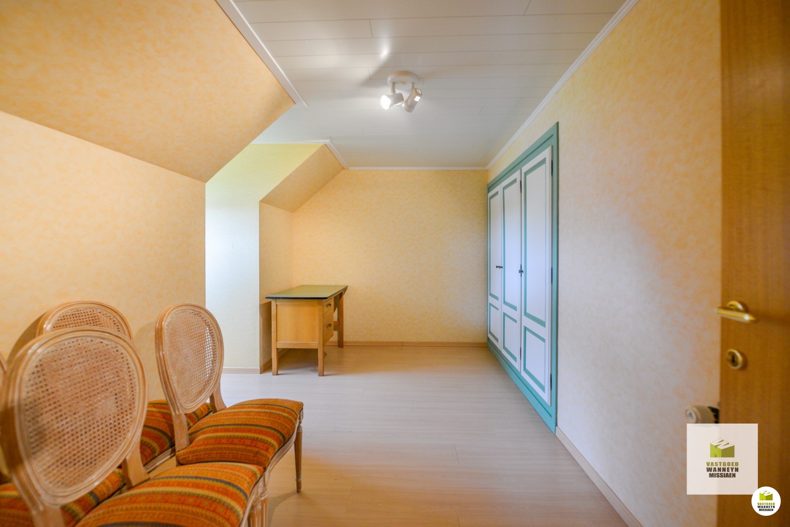 De keuken is aansluitend gelegen maar wel afsluitbaar door een schuifwand, en daardoor dus perfect als dé centrale ontmoetingsplaats. In de keuken kan er een groot gezin eten. Vanuit de keuken bereik je de wijnkelder, de rekken zijn "eigen makelij" maar brengen ook hier extra cachet. Naast de keuken vinden we de wasplaats met veel bergruimte en aansluitend, de dubbele garage die voorzien is van nog meer inbouwkasten. Er zijn 2 automatische poorten en een aparte nis voor papier, leeggoed, vuilbakken, poetsgerief,.. De tuin is netjes onderhouden en beplant met seizoensbloemen, planten en diverse terrassen. Er is veel parkeergelegenheid door de grote oprit. Er is nog een tuinhuis van +/- 50 m2. Achter het tuinhuis is er nog een kippenpark en een plek voor een grote moestuin, een tuin om te ravotten, etc..