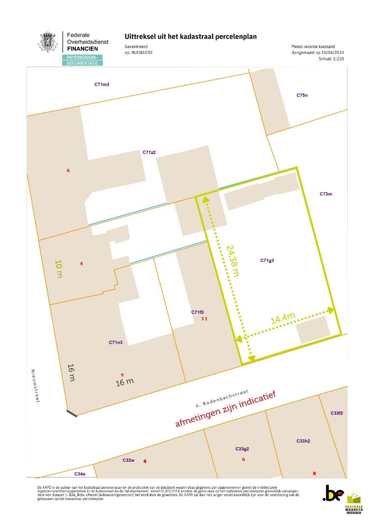 De tuingrond zal afgesplitst worden van de eigendom gelegen te Nieuwstraat 4 te Ruiselede