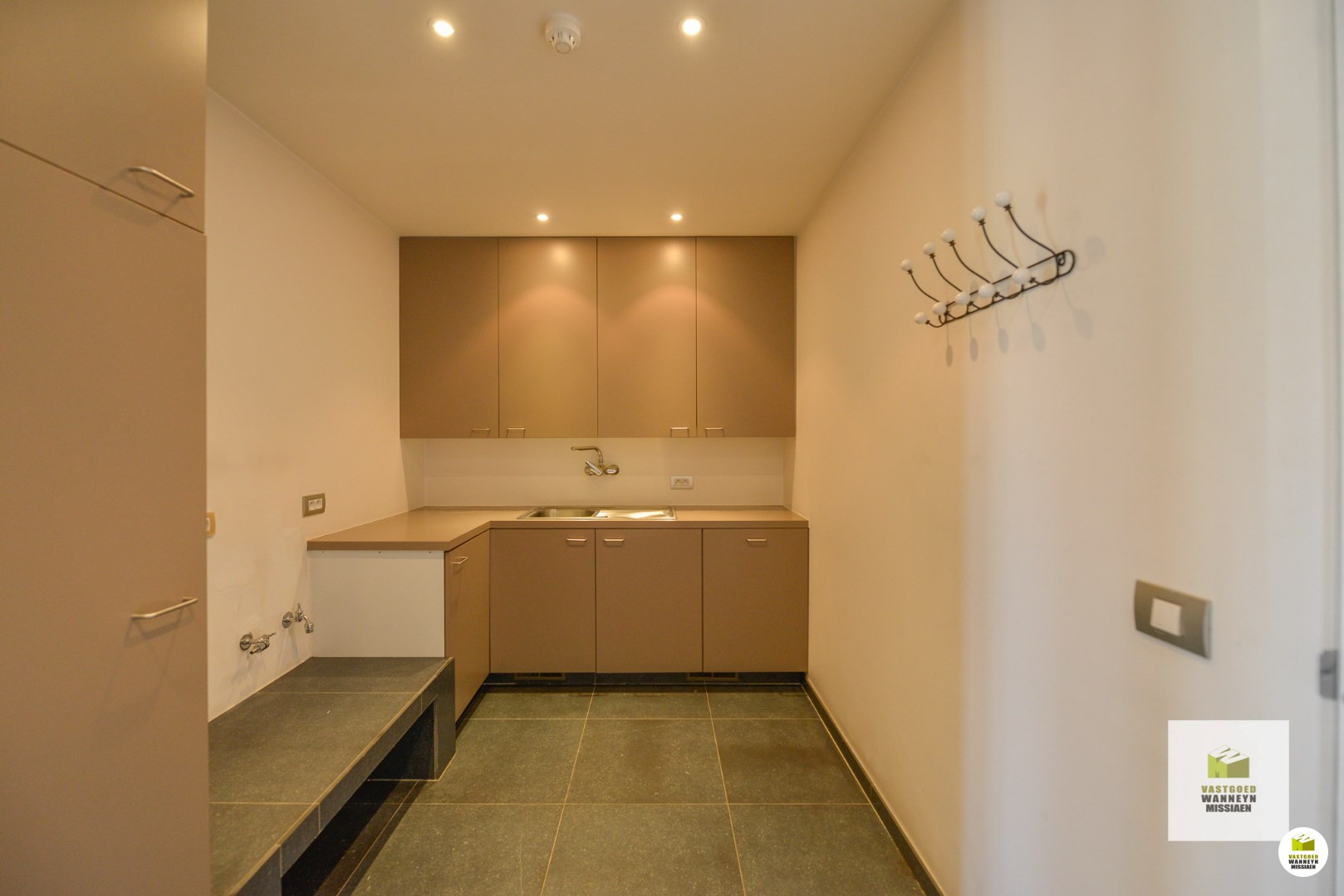 Er is ook een indrukwekkende inkomhal met wachtruimte en gastentoilet aan de voor(straat)kant.