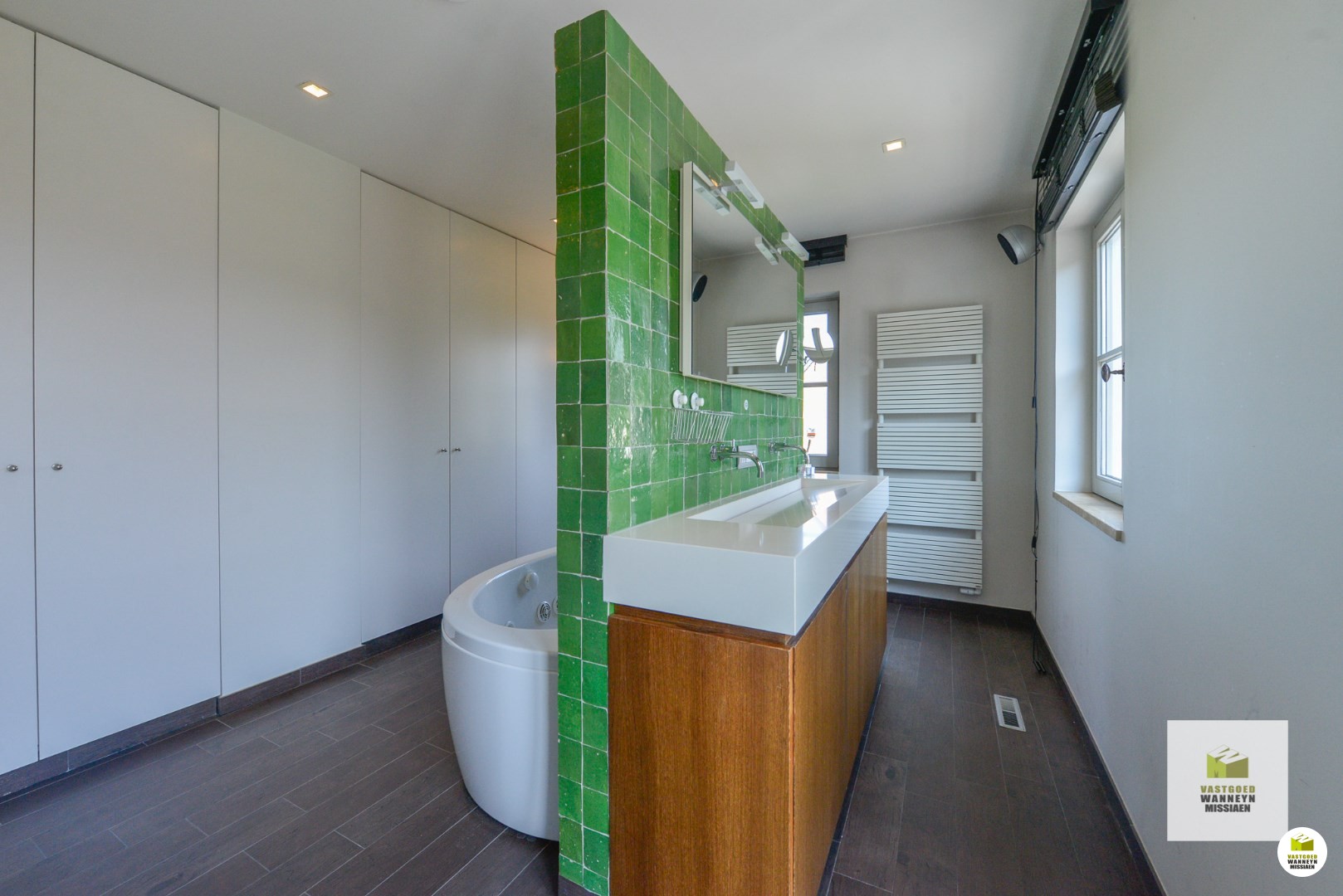 Op de eerste verdieping is er 1slaapkamer (22m2) met dressing (10m2) met een eigen badkamer, ingericht met dubbele lavabo, inloopdouche en ligbad. Op de tweede verdieping zijn er nog 2 slaapkamers en een ... badkamer er is ook een toilet. De lift komt tot de derde verdieping.