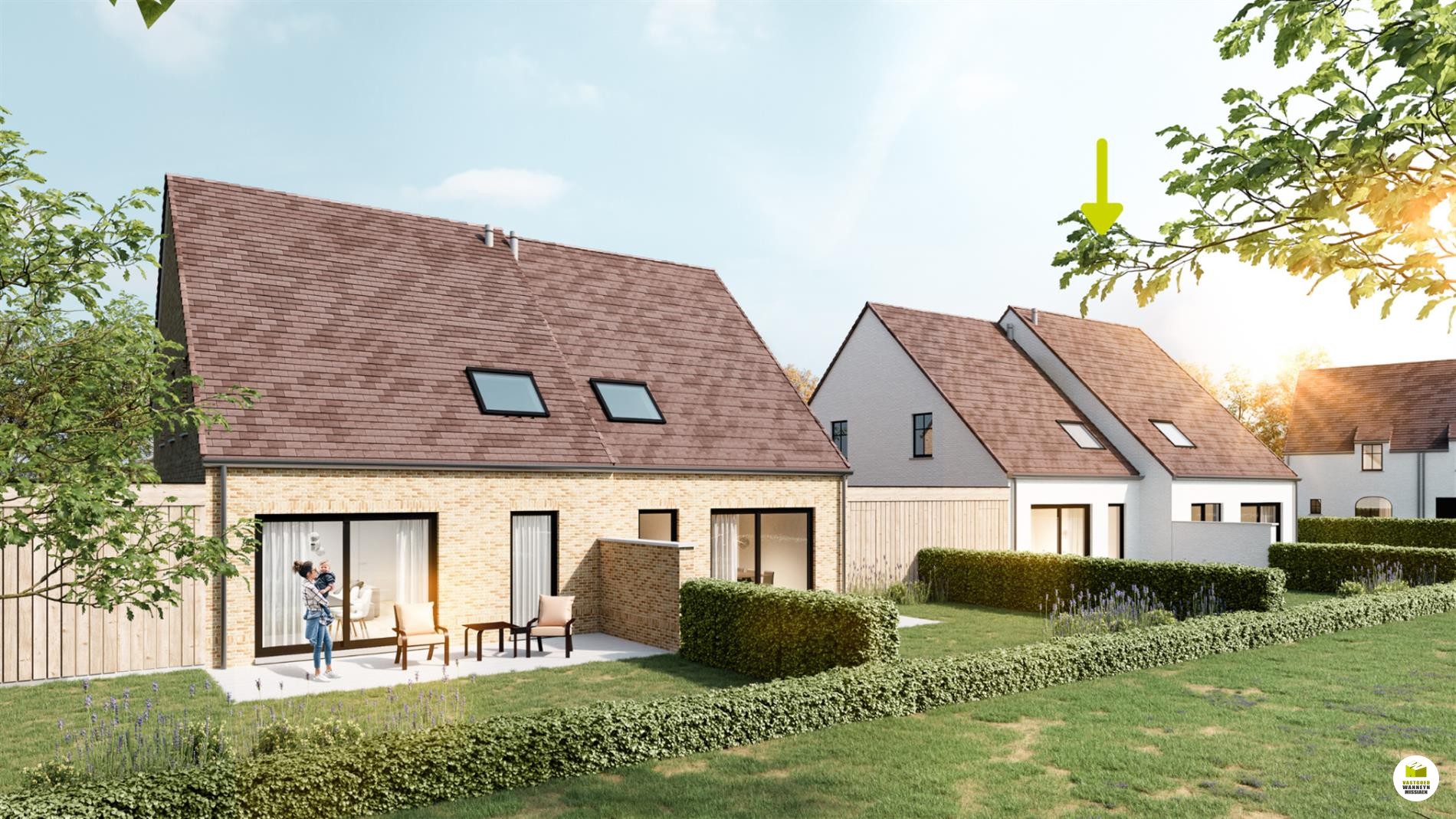 Prijs voor de grond én woning met 4 slpk en garage €365.000 (excl. registratie & 21% BTW).