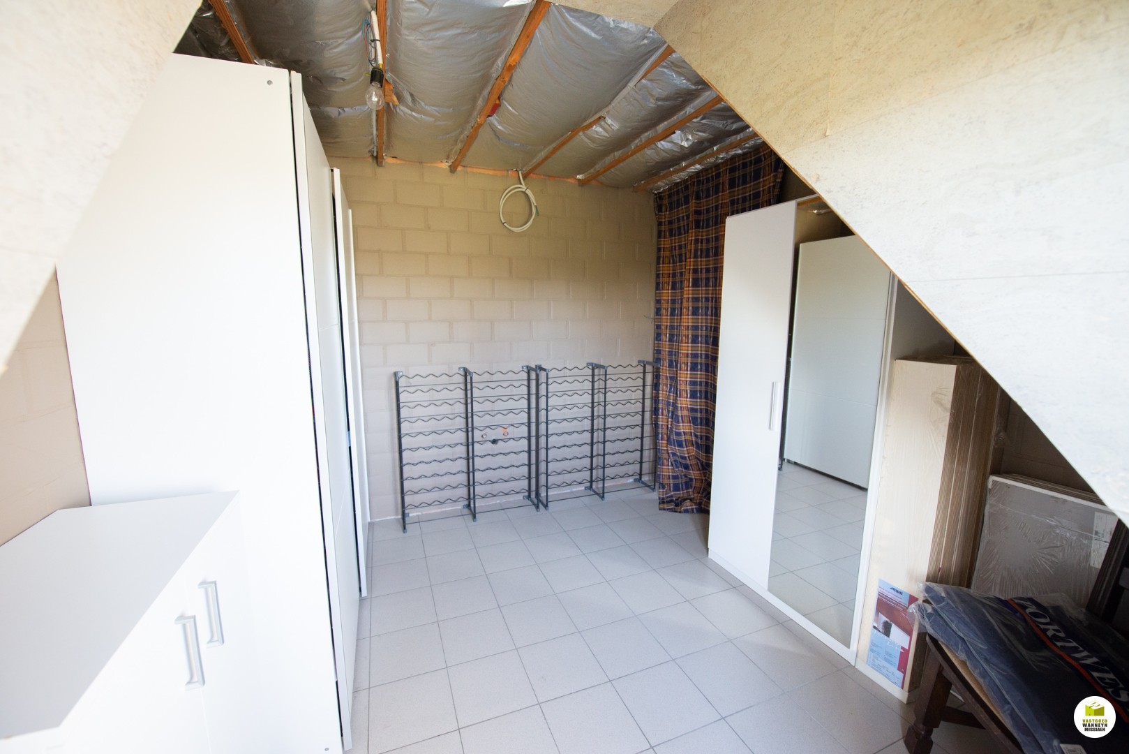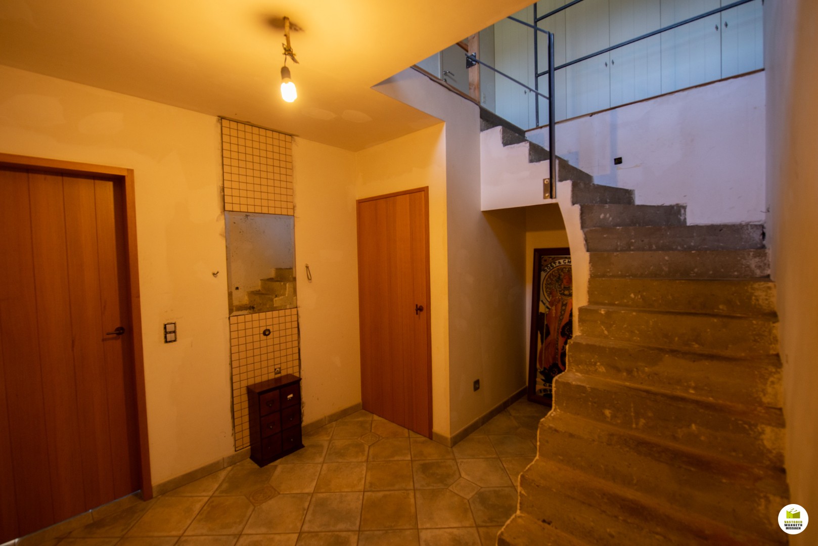 Er ... zijn nog wat afwerkingen noodzakelijk, bijvoorbeeld: trap is nog niet afgewerkt.