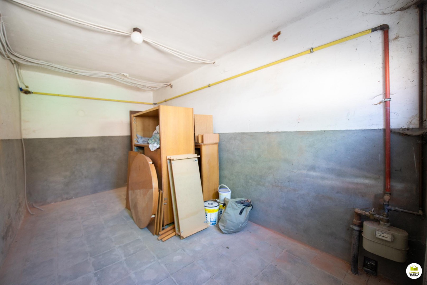 Er is ook een kelder. Via de tuin komen we in de wasplaats. Het enige toilet bevindt zich hier, dus ook buiten.
