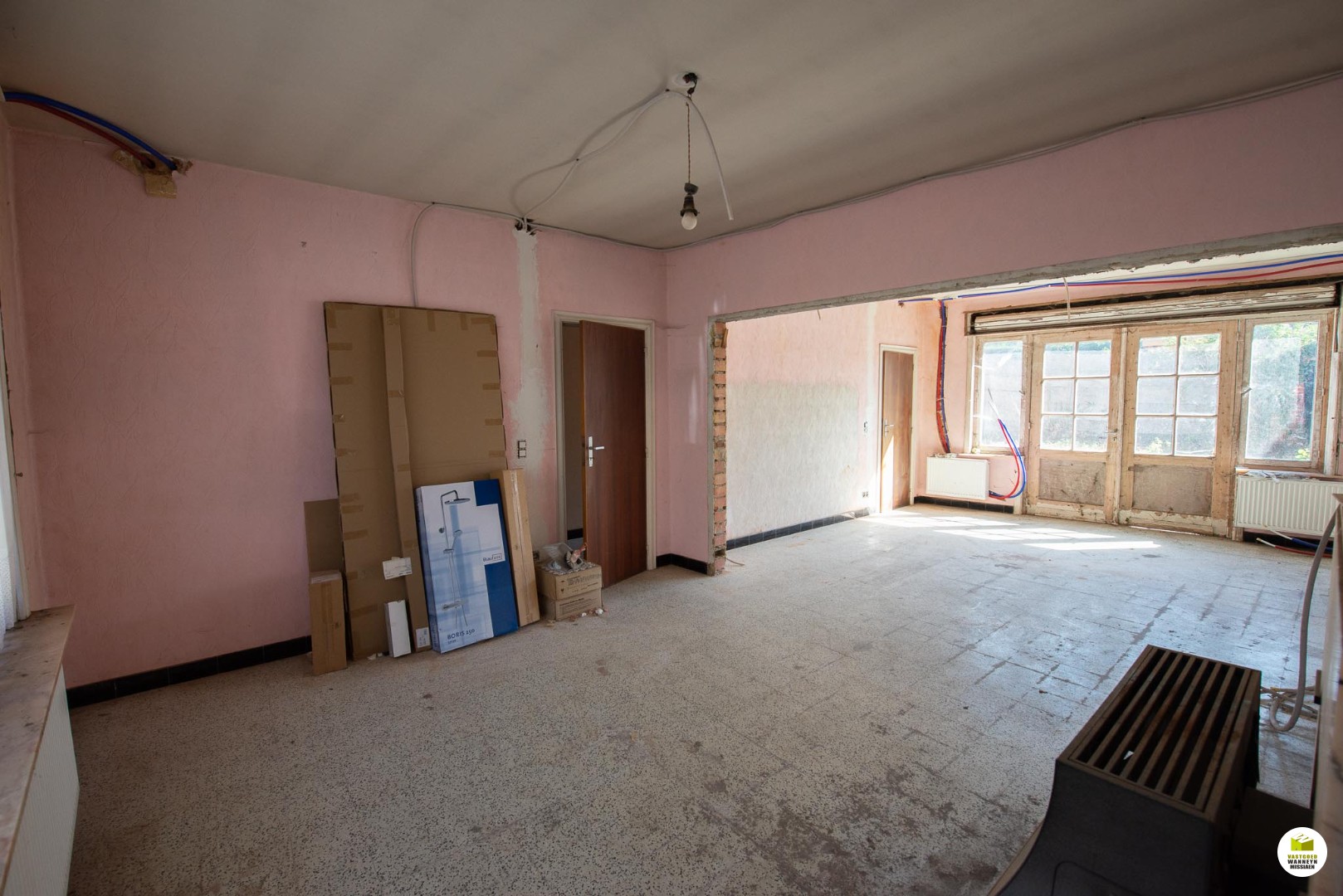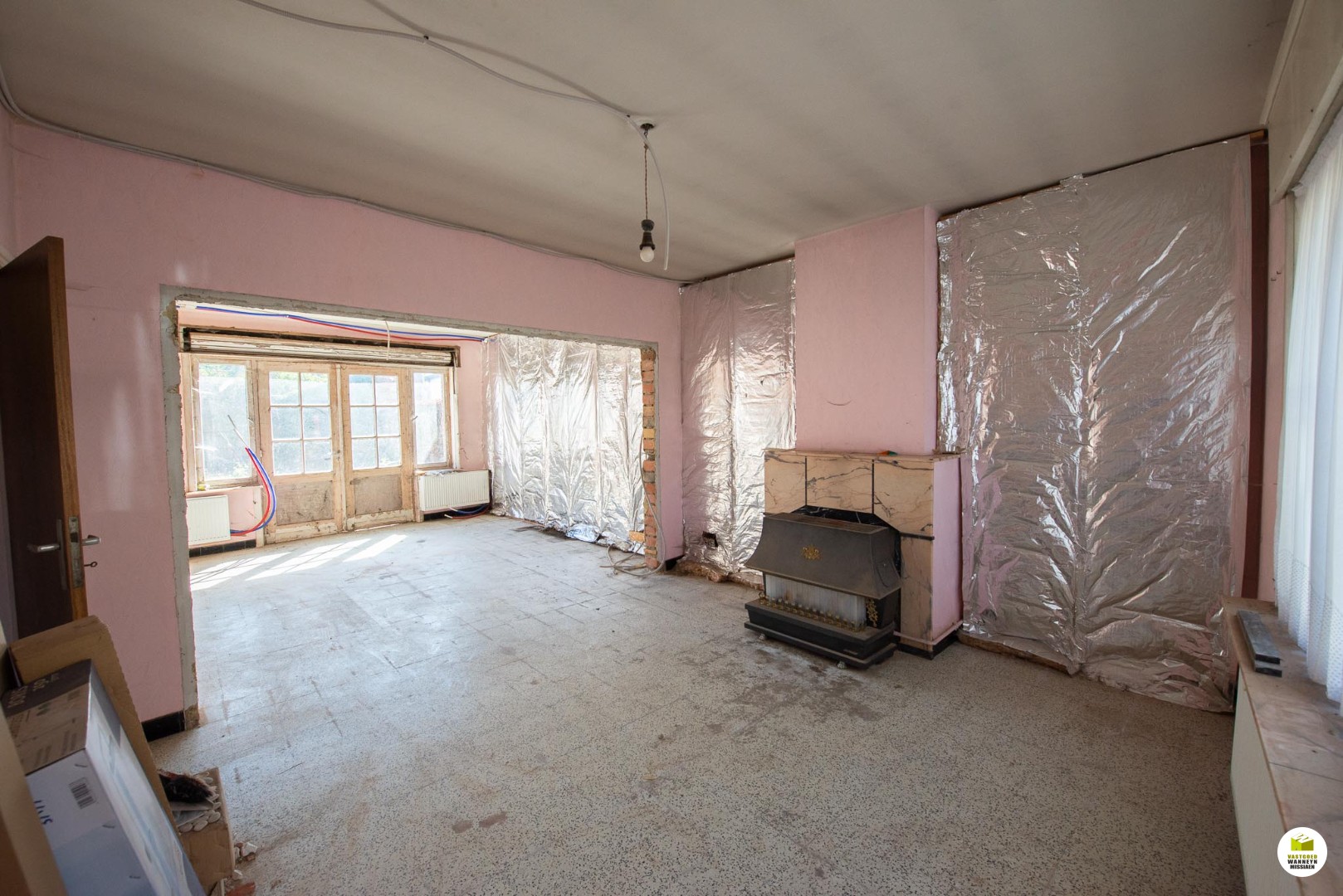 Bijzonderheden: deze woning werd deels gerenoveerd. (elektriciteit is vernieuwd, sanitaire leidingen werden vernieuwd, er werd een chauffageketel geplaatst en radiatoren, enkele binnenmuren werden reeds geïsoleerd,..)