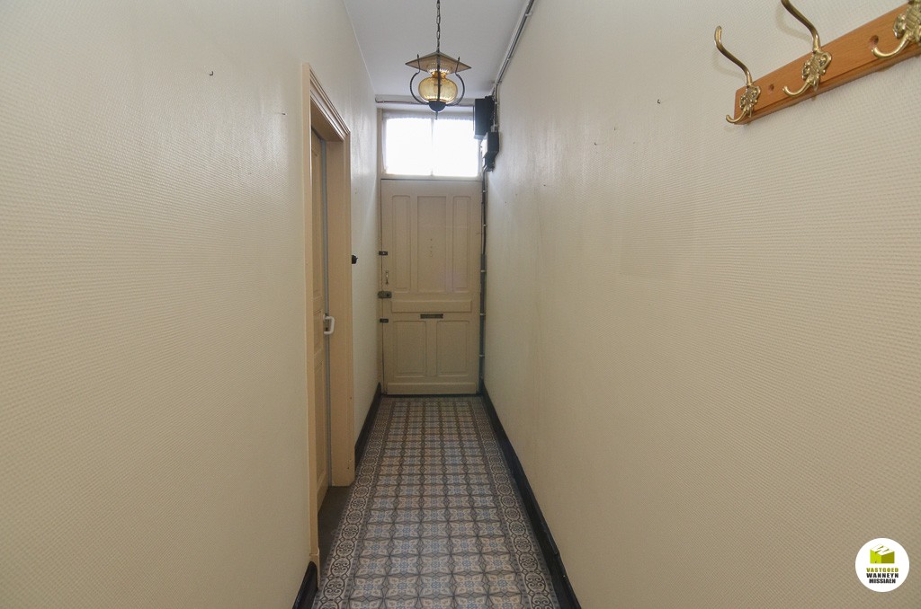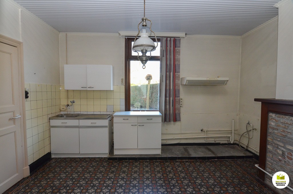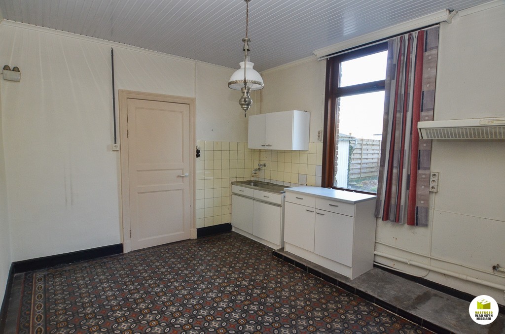 Te renoveren woning op 328m2 met private uitweg naast de woning. De woning is zeer centraal gelegen en is momenteel als volgt ingedeeld: leefruimte, keuken, kelder, toilet, 3 slaapkamers en oude badkamer. De woning is aan grote renovatie toe, doch aantal mooie authentieke elementen zoals tegelvloer gelijkvloers. Zuid-west gerichte tuin. Private uitweg naast de woning met dubbele carport en tuinhuis. Voor meer info of bezoek: 050/70 34 35