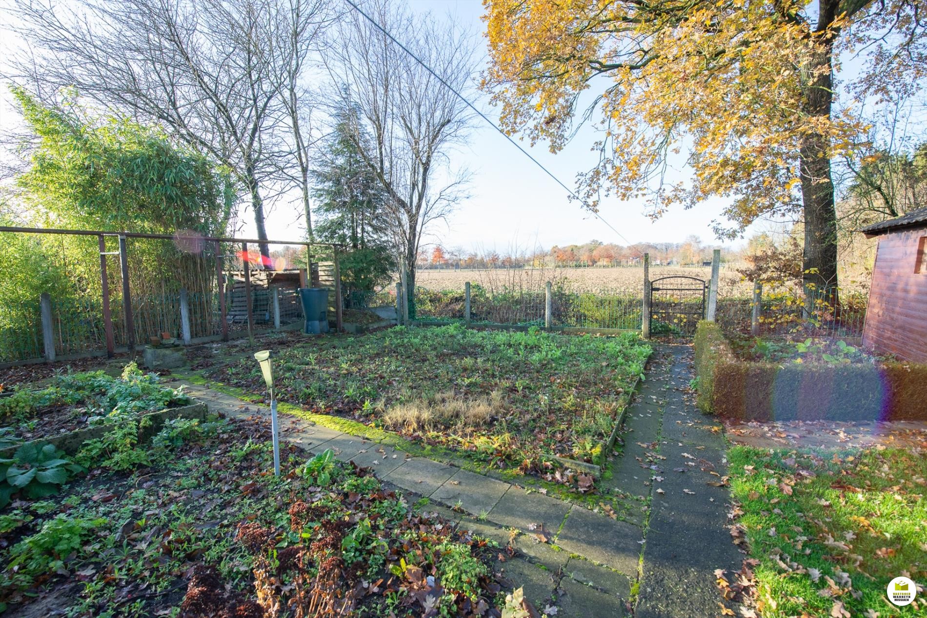 Open bebouwing met 2 slaapkamers, garage en tuin met open zicht over de velden!
