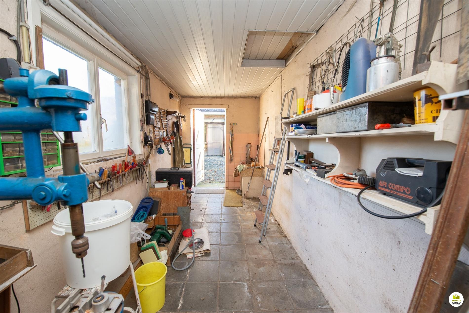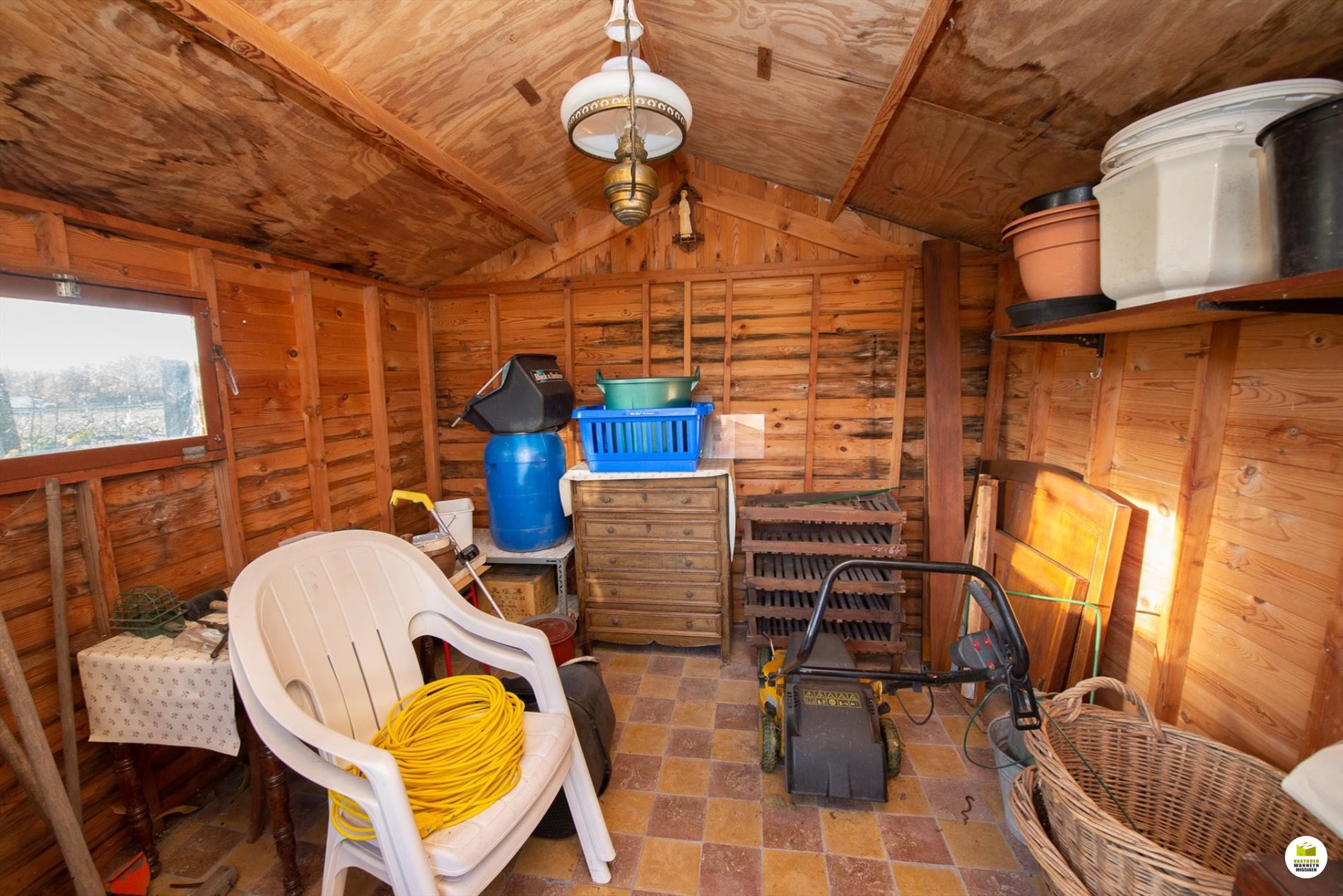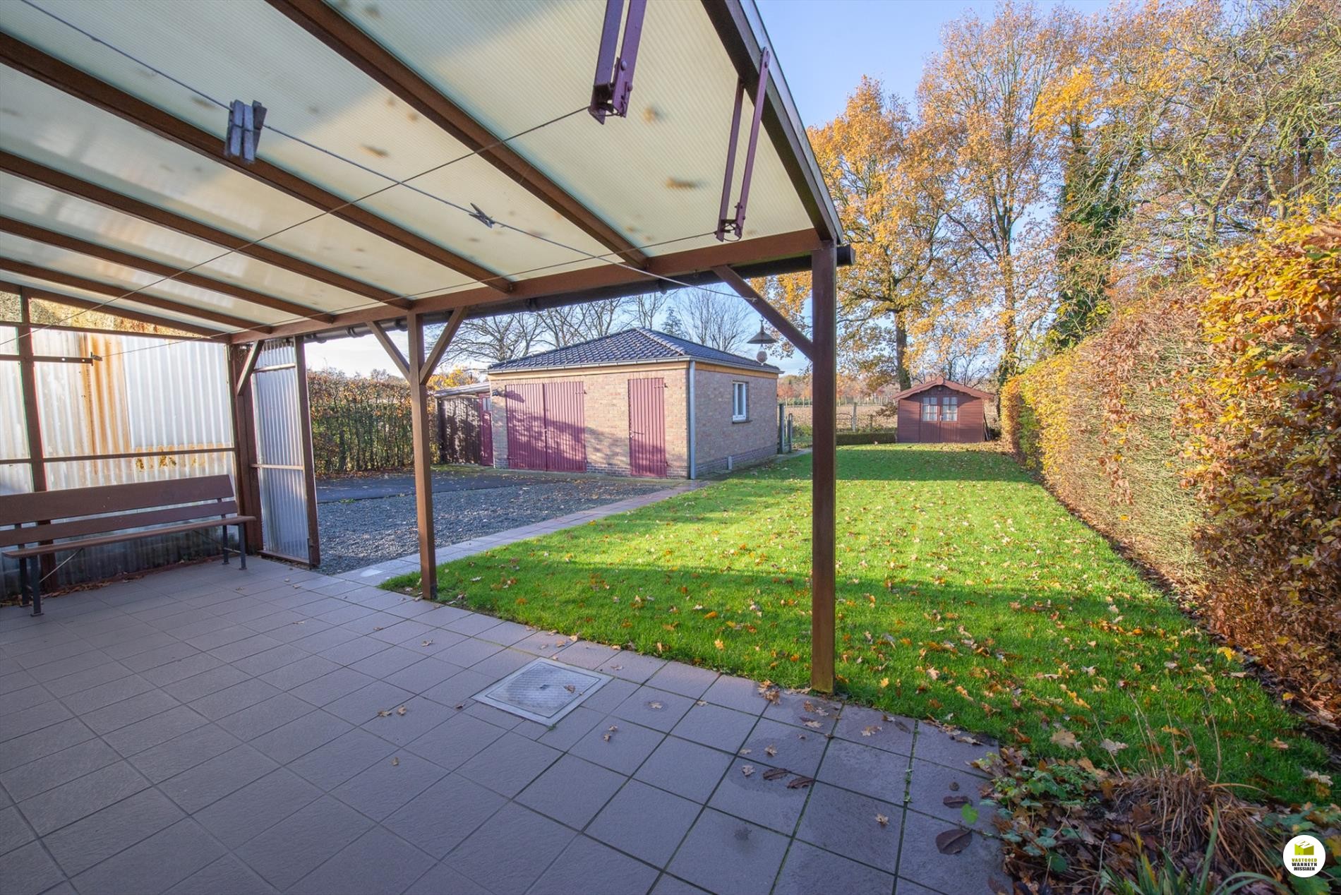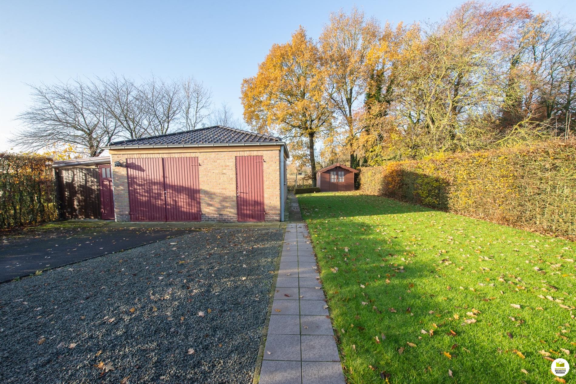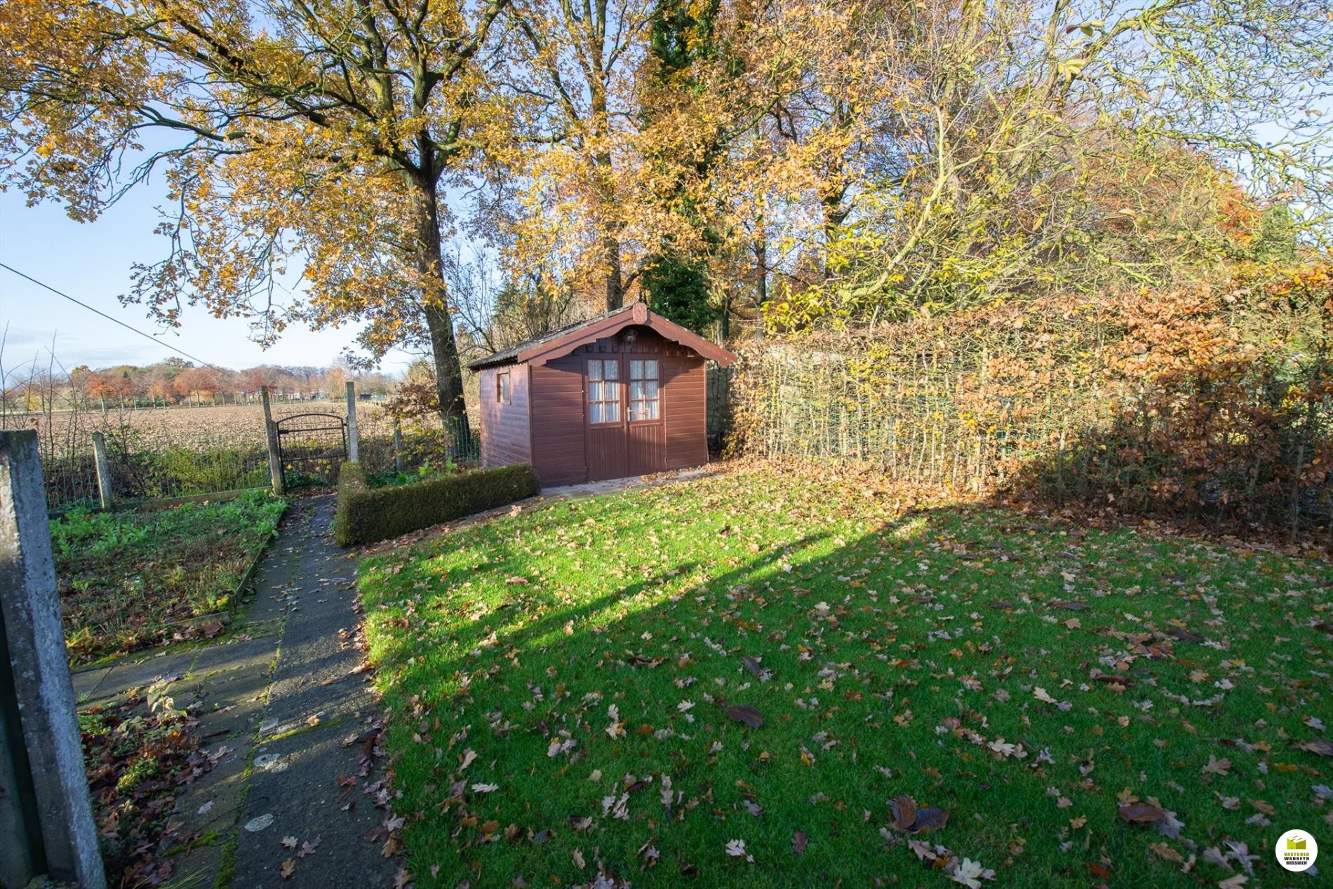 Zuid-west gerichte tuin met mooi landelijk zicht en ruim bijgebouw/garage (36m2 - drijfkracht) en tuinhuis.