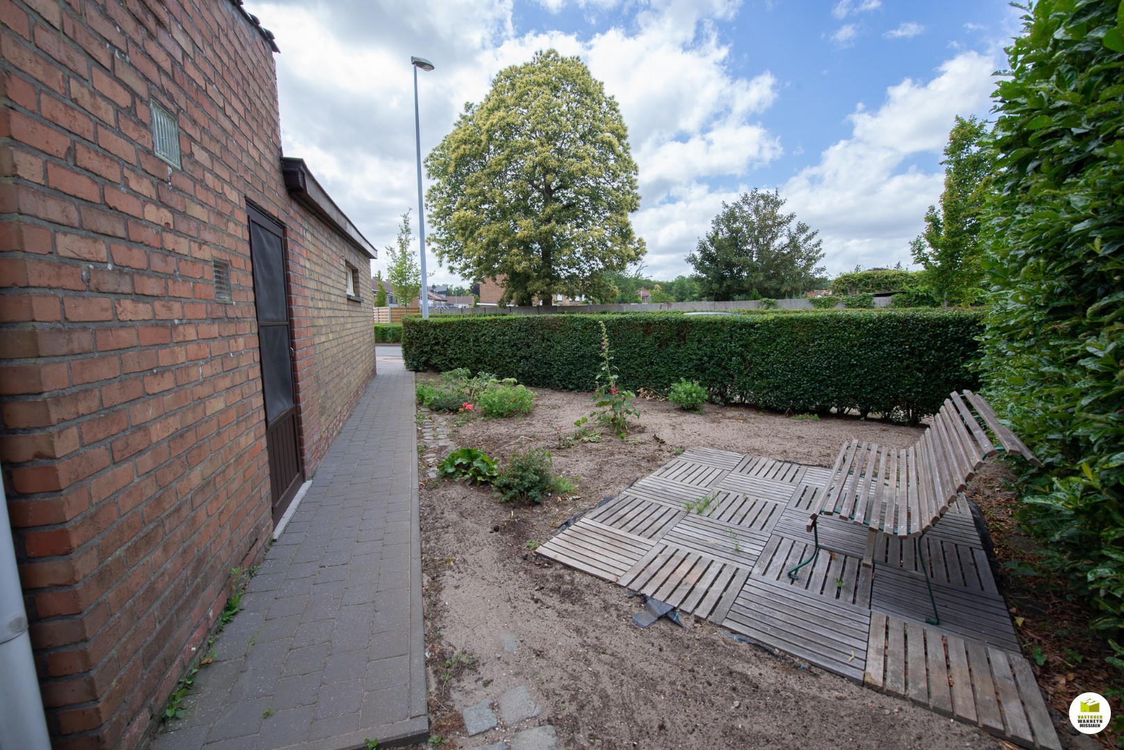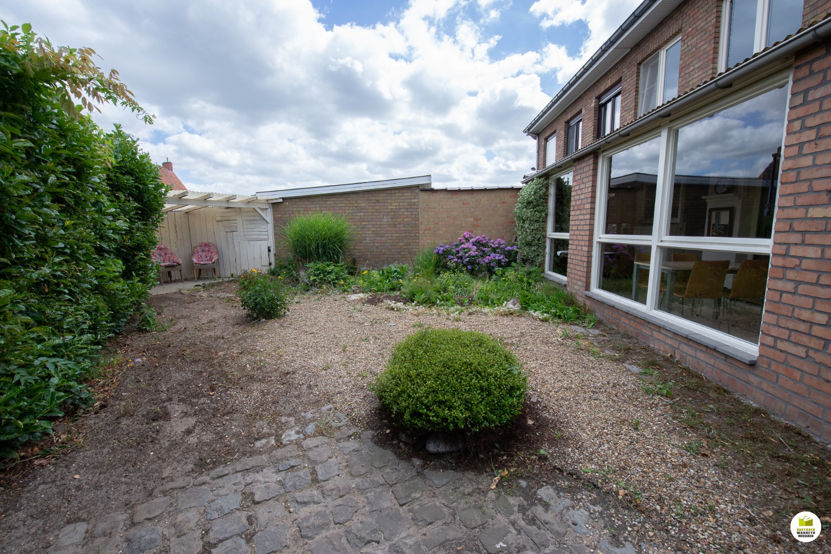 Er is ook een inpandige garage (houten poort met deur).