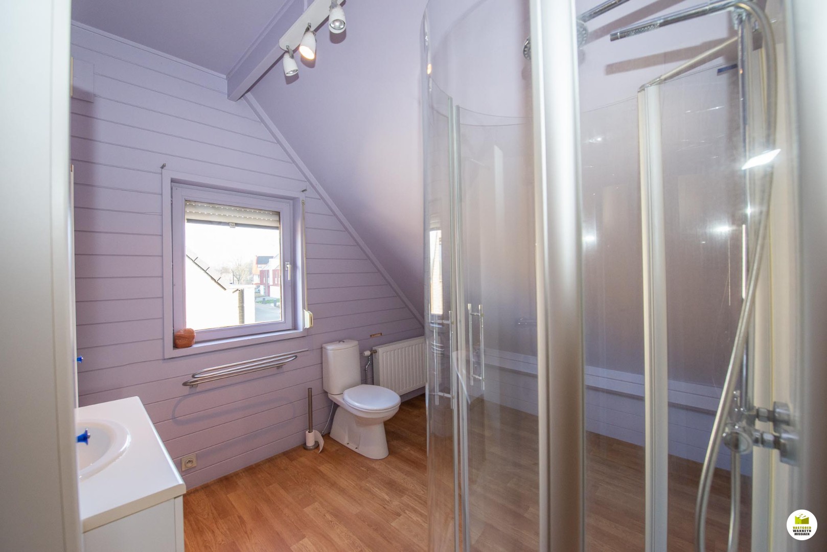 Op het verdiep bevinden zich 3 slaapkamers en een badkamer met douche, lavabomeubel en toilet.