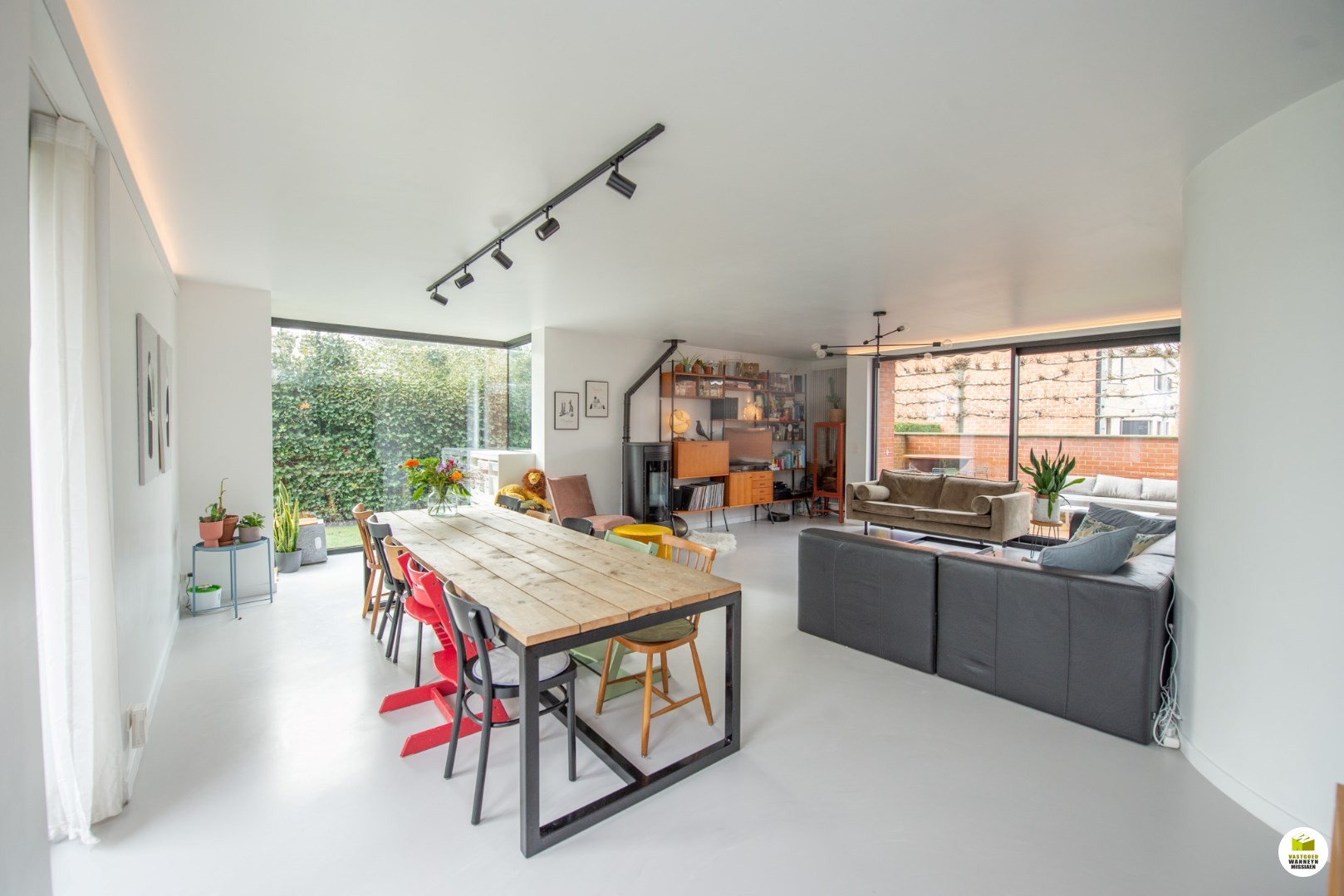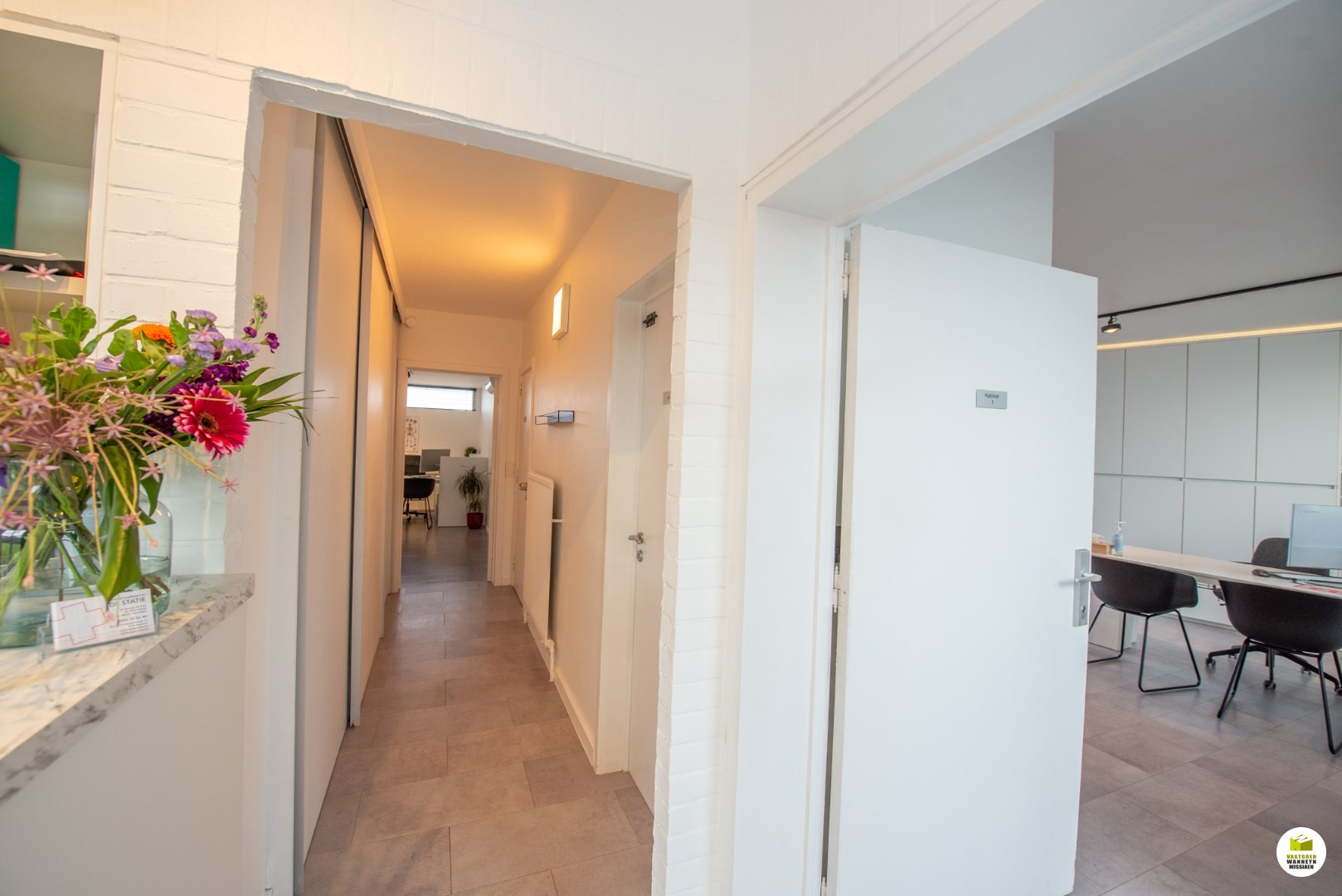 Zeer ruime woning met kantoor/praktijk van 80m2 op zeer commerciële ligging maar ook ideaal als kangoeroewoning. Deze praktijkwoning heeft 2 huisnummers, de privé ingang bevindt zich in de rustige Gladiolenstraat, de ingang van de praktijk bevindt zich langs de commerciële Hubert d'Ydewallestraat. De woning omvat een inkomhal met gastentoilet en vestiaire, berging, moderne living met PU-gietvloer, indirecte verlichting en pelletkachel, prachtige keuken in eikfineer met een spatwand in Nero Dorado marmer, uitgerust met inductiekookplaat, vaatwas, combi microgolf, oven, en frigo. Op de 1ste verdieping bevinden zich 4 ruime slaapkamers waarvan 2 slaapkamers met eigen wastafel en 1 met dressingruimte, een badkamer uitgerust met dubbele lavabo & ligbad/douche. Op de 2de verdieping bevindt zich een ruime zolderkamer. De woning heeft een mooie afgesloten tuin met leuke terrassen palend aan de leefruimte. De ganse woning werd in 2020 grondig gerenoveerd: o.a. aluminium ramen en deuren, hoogrendementsketel, pelletkachel, zonnepanelen,… en is ...