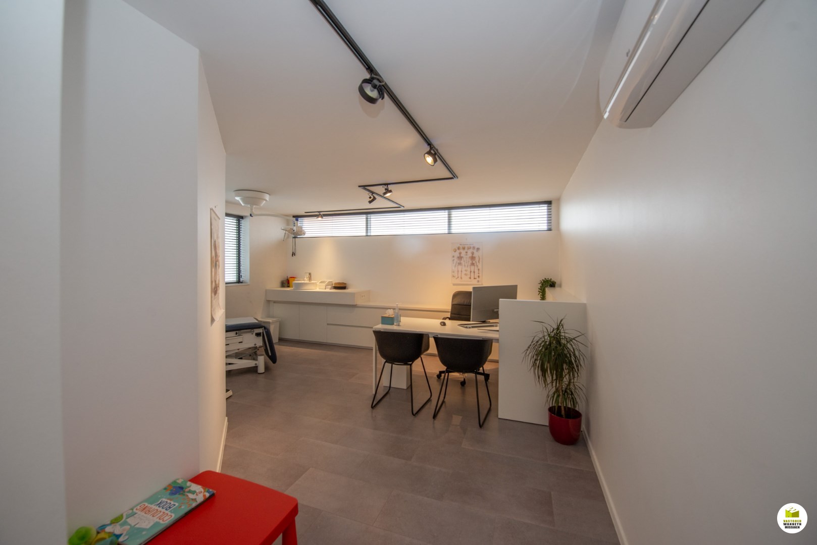 dan ook zeer energiezuinig. In de praktijkruimte zijn momenteel 2 dokterskabinetten, maar zou ook ideaal zijn als afzonderlijke woonst voor een inwonend familielid. Er is reeds een douche en toilet aanwezig.
