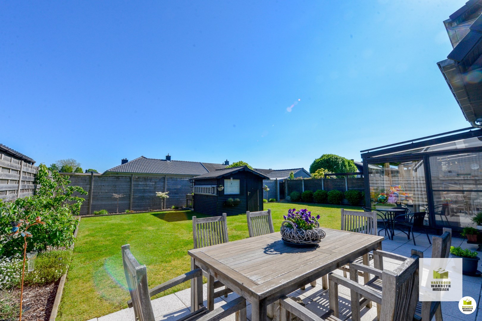 Het grote pluspunt van deze eigendom is de grote zuidgerichte tuin. Hier kunnen nieuwe eigenaars genieten van zonnige dagen, buitenactiviteiten organiseren en een groene oase creëren.