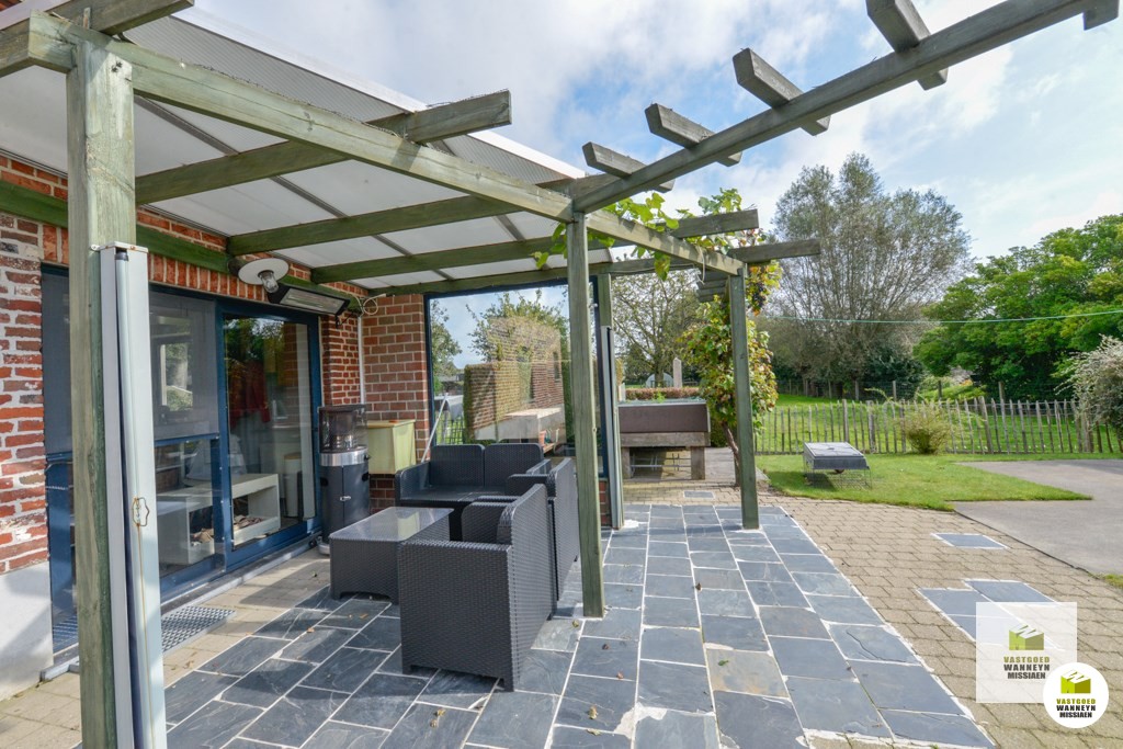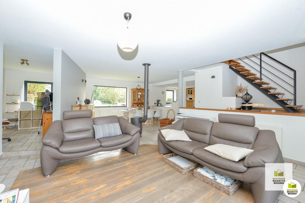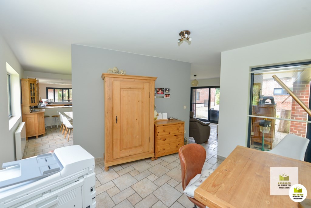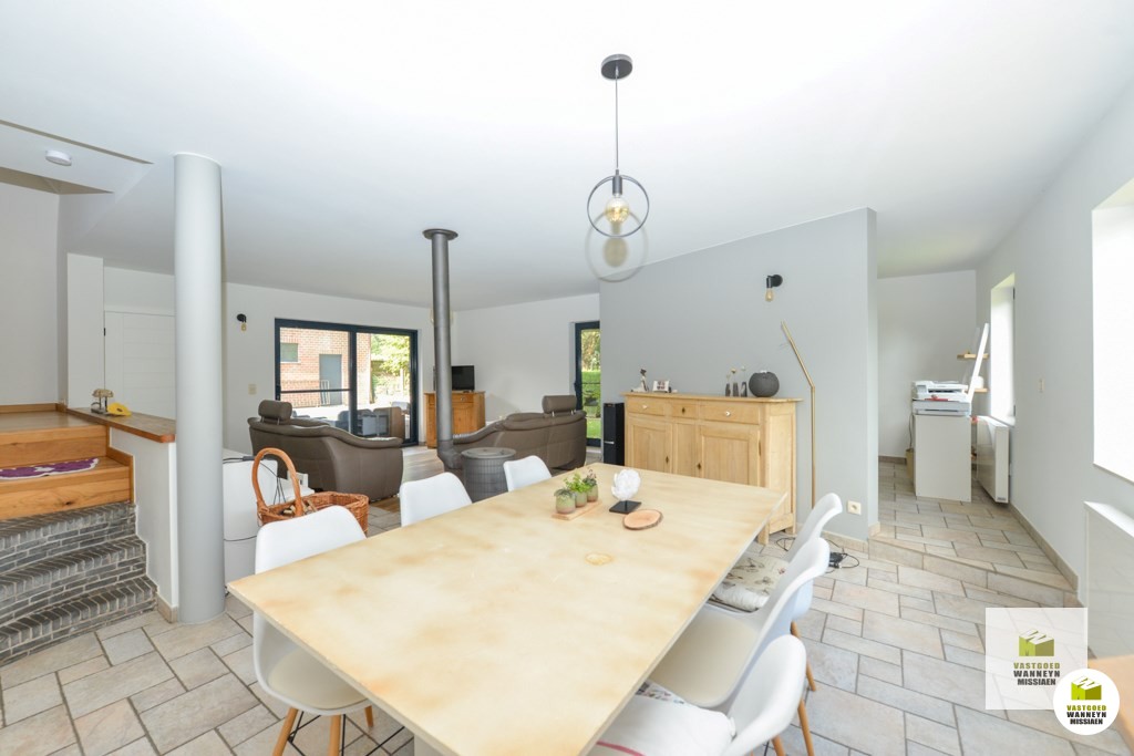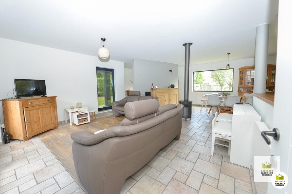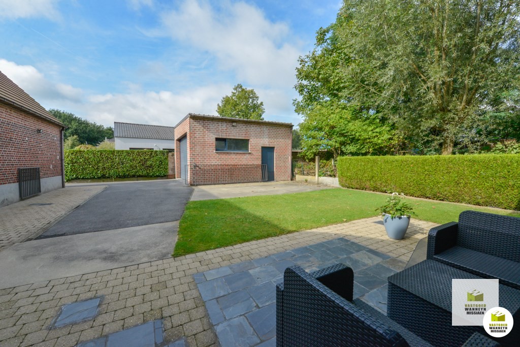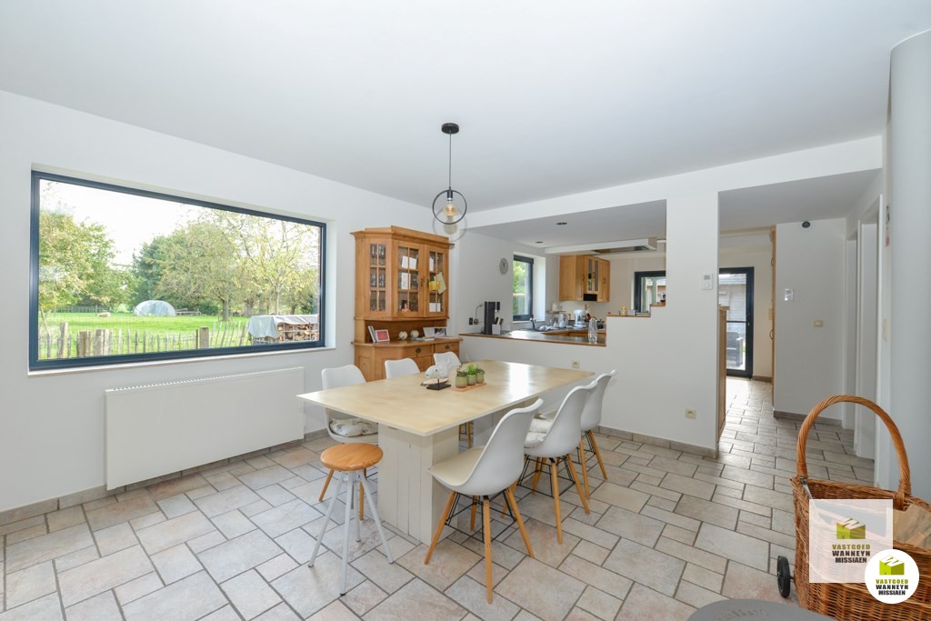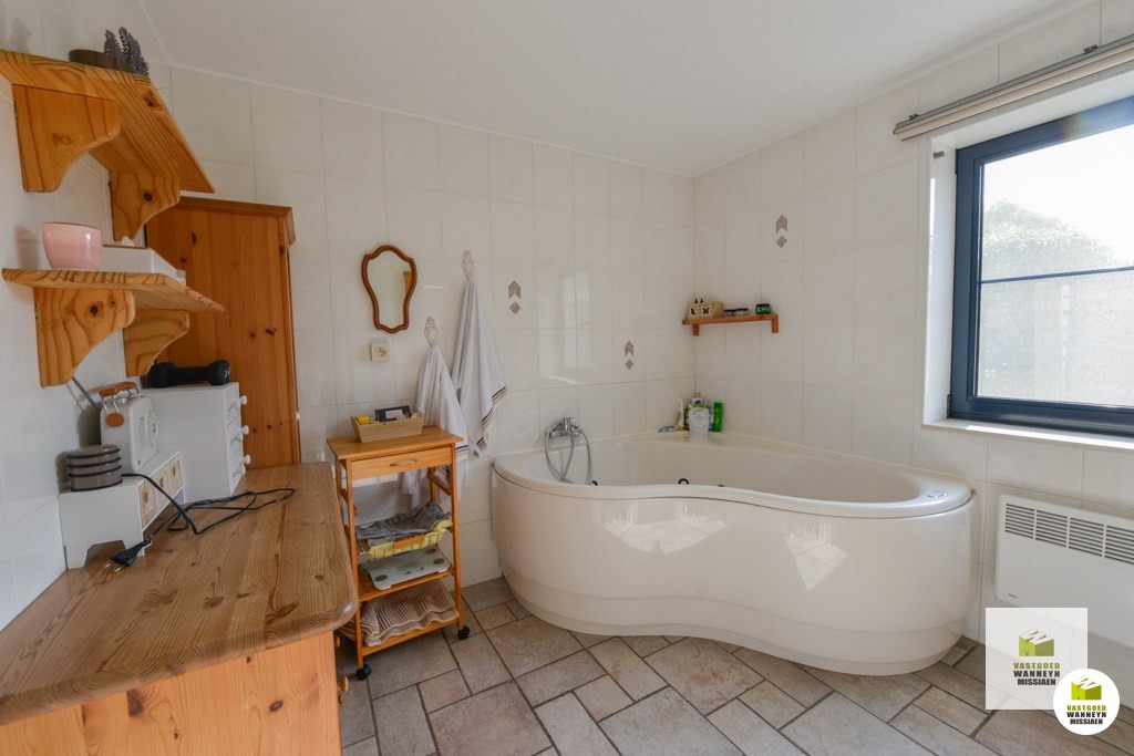 Verscholen langs de Akkerstraat vindt u deze ruime en verzorgde woning met 4 slaapkamers, 2 grote garage en zonnige tuin met mooi zicht. Een grote troef is dat de woning op 25m van de straat ligt waardoor je veel rust en privacy hebt. Indeling gelijkvloers: inkom, lichtrijke living met een zit- & eetplaats en een bureauhoek, een grote open keuken uitgerust met keramische kookplaats, combi oven/microgolf, frigo en vaatwas, koele berging/kelder, ruime badkamer met ligbad, douche en lavabo, gastentoilet, praktische wasplaats met achterinkom, grote garage met hoge poort en zolder. Op de verdieping vinden we 4 slaapkamers, een toilet en wastafel. Vooraan de woning bevindt zich nog een tweede gemetste garage met hoge poort. De 2 grote garages lenen zich ook voor iemand met een zelfstandig beroep. De tuin is te bereiken via het schuifraam aan de zithoek of het schuifraam aan de keuken. De tuin is vrij onderhoudsvriendelijk en heeft een mooi zicht op een achterliggende weide. De woning wordt verwarmd met recente elektrische radiatoren en is ...