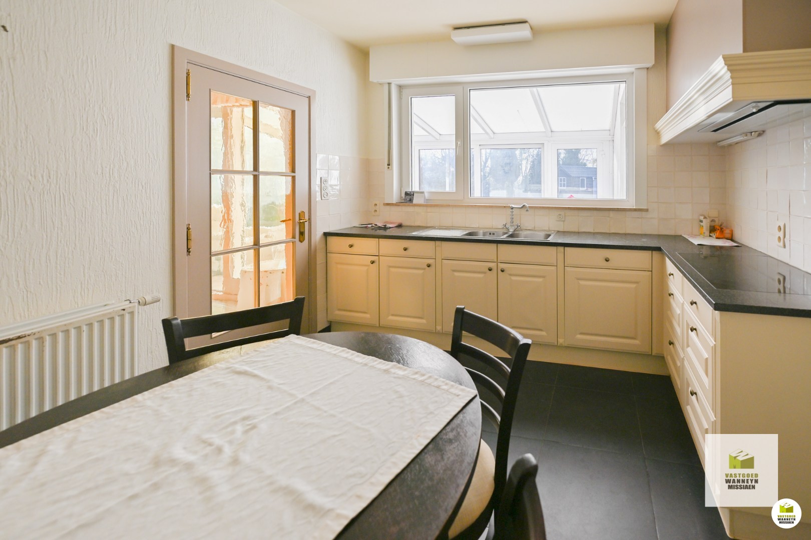 In een rustige straat in Sint-Joris vindt u deze woning met zonnige tuin op een mooi perceel van 673m². De woning beschikt over maar liefst 5 slaapkamers, waardoor ze geschikt is voor een gezin als voor wie graag nog het huis wilt uitbreiden/verbouwen. Indeling gelijkvloers: inkom, lichtrijke leefruimte, een vernieuwde keuken uitgerust met keramische kookplaat, vaatwas, oven, microgolf en natuursteen werkblad. Veranda met zicht op de tuin, ruime wasplaats met afzonderlijk toilet, garage met sectionale poort. Er is ook een droge kelder, ideaal als extra stockage- of bergplaats. Op de eerste verdieping bevinden zich 5 slaapkamers en een kleine badkamer met een toilet, wastafel en douche. Indien gewenst kan één van de slaapkamers omgevormd worden naar een grote badkamer. Momenteel is de verwarming op mazout, maar er is een mogelijkheid om aan te sluiten op aardgas. Renovatieplicht is van toepassing (binnen de 6 jaar naar minimum label D). Hier is het voldoende om het dak te isoleren en het plaatsen van een rendementsketel op gas! * ...