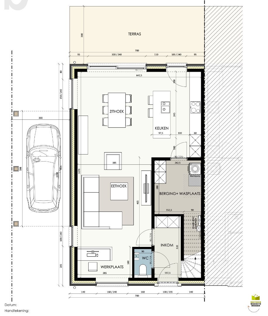 Er wordt een regenwaterput van 10.000 L voorzien.