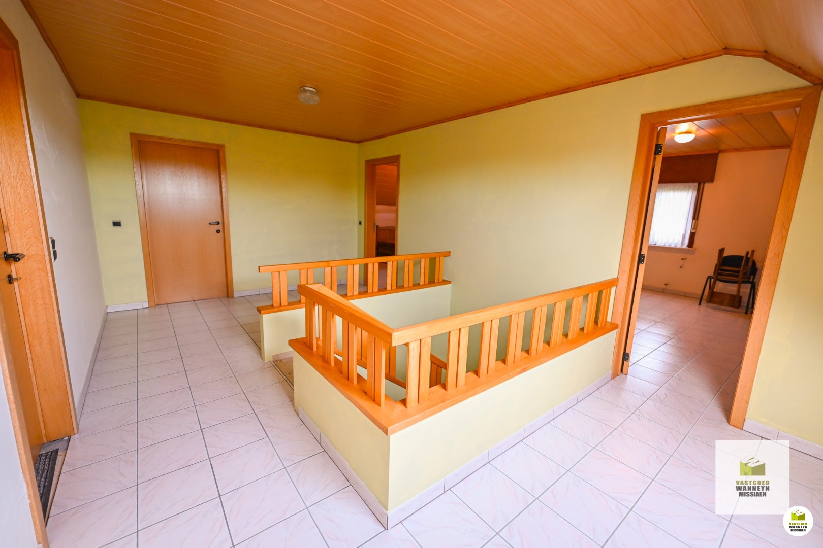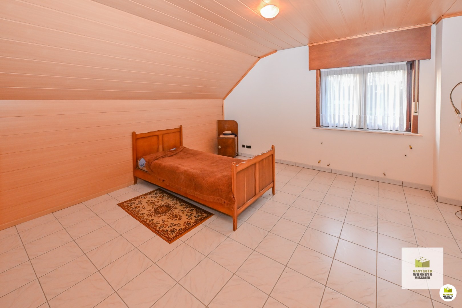 In het centrum van Beernem, op het einde van een doodlopende straat, vindt u deze zeer ruime open bebouwing. De woning heeft maar liefst 5 (mogelijks 6) slaapkamers, waarvan 2 gelijkvloerse slaapkamers. De woning werd in 1995 zeer degelijk gebouwd. Indeling gelijkvloers: inkom met gastentoilet, lichtrijke living met schouw en houtkachel alsook een bureauhoek, veranda, ruime keuken uitgerust met kookplaat, vaatwas, oven, microgolf en frigo, achterinkom met wasplaats, koele bergplaats, 2 gelijkvloerse slaapkamers, afzonderlijk toilet, badkamer met ligbad, douche en lavabomeubel, garage. Op de verdieping bevinden zich 3 slaapkamers en een zolderkamer die nog ingericht kan worden als slaapkamer en badkamer en/of dressing. Zolder met geïsoleerde vloerplaat. Centrale verwarming op aardgas. PVC ramen met dubbel glas en rolluiken (beneden elektrisch). Conforme elektrische keuring! Regenwater en stadswater. De tuin heeft een zuidoost-oriëntatie waardoor je veel kan genieten van de zon. Kortom een ideale woning voor wie houdt van rust maar toch ...