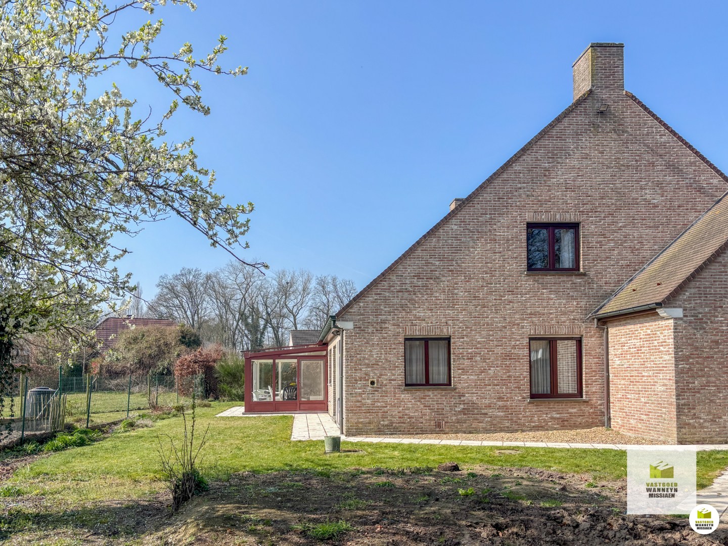 In het centrum van Beernem, op het einde van een doodlopende straat, vindt u deze zeer ruime open bebouwing. De woning heeft maar liefst 5 (mogelijks 6) slaapkamers, waarvan 2 gelijkvloerse slaapkamers. De woning werd in 1995 zeer degelijk gebouwd. Indeling gelijkvloers: inkom met gastentoilet, lichtrijke living met schouw en houtkachel alsook een bureauhoek, veranda, ruime keuken uitgerust met kookplaat, vaatwas, oven, microgolf en frigo, achterinkom met wasplaats, koele bergplaats, 2 gelijkvloerse slaapkamers, afzonderlijk toilet, badkamer met ligbad, douche en lavabomeubel, garage. Op de verdieping bevinden zich 3 slaapkamers en een zolderkamer die nog ingericht kan worden als slaapkamer en badkamer en/of dressing. Zolder met geïsoleerde vloerplaat. Centrale verwarming op aardgas. PVC ramen met dubbel glas en rolluiken (beneden elektrisch). Conforme elektrische keuring! Regenwater en stadswater. De tuin heeft een zuidoost-oriëntatie waardoor je veel kan genieten van de zon. Kortom een ideale woning voor wie houdt van rust maar toch ...