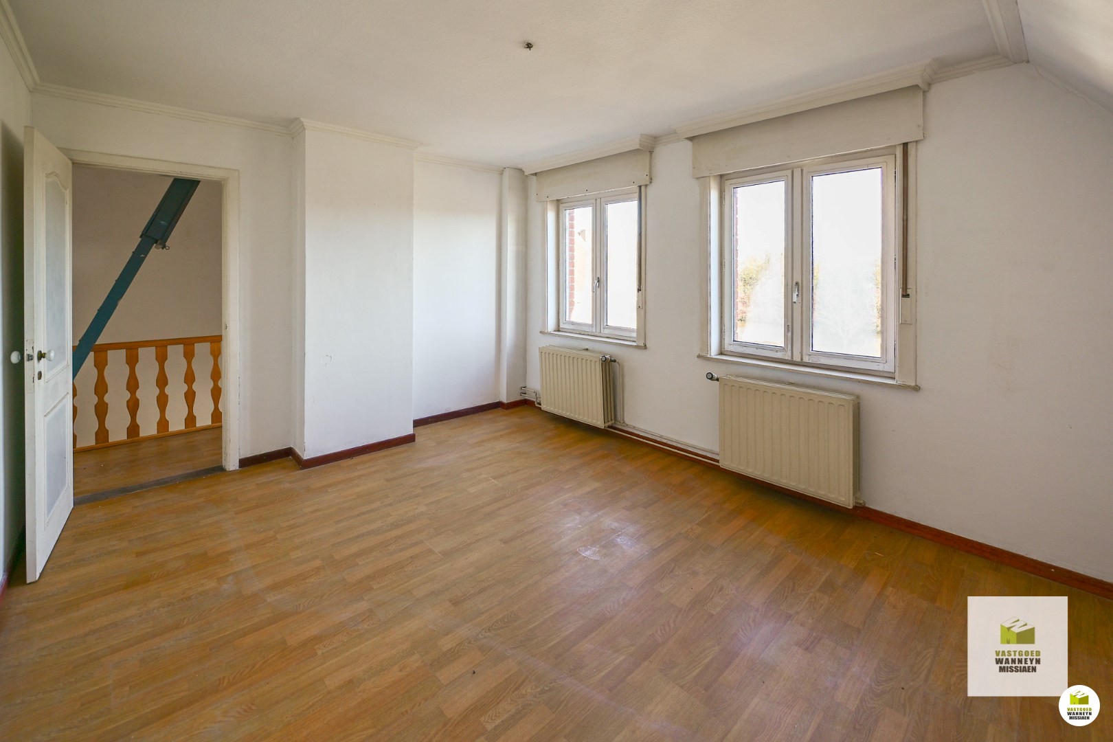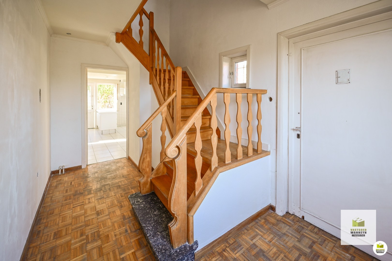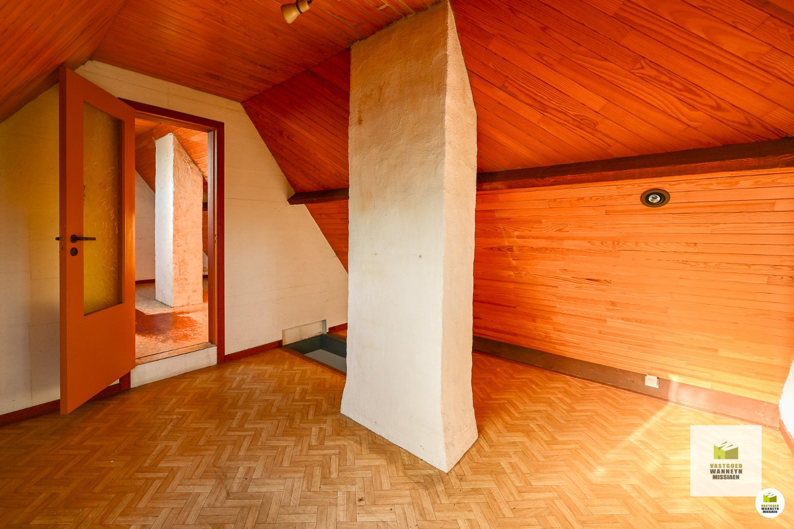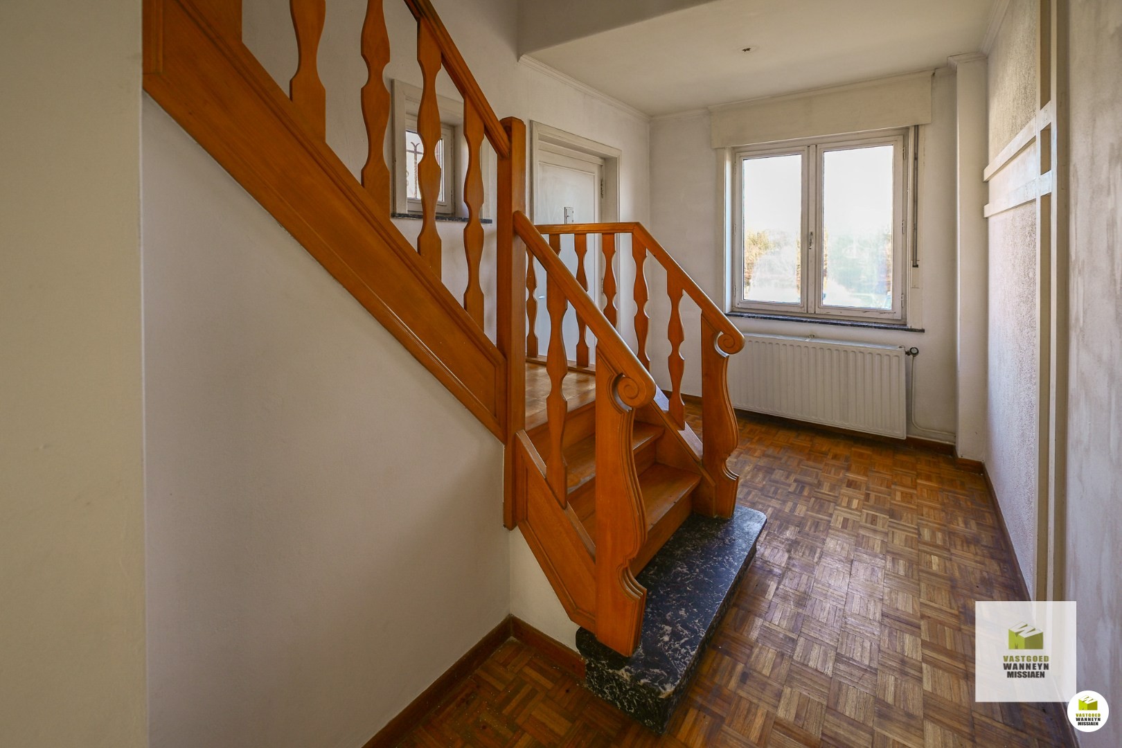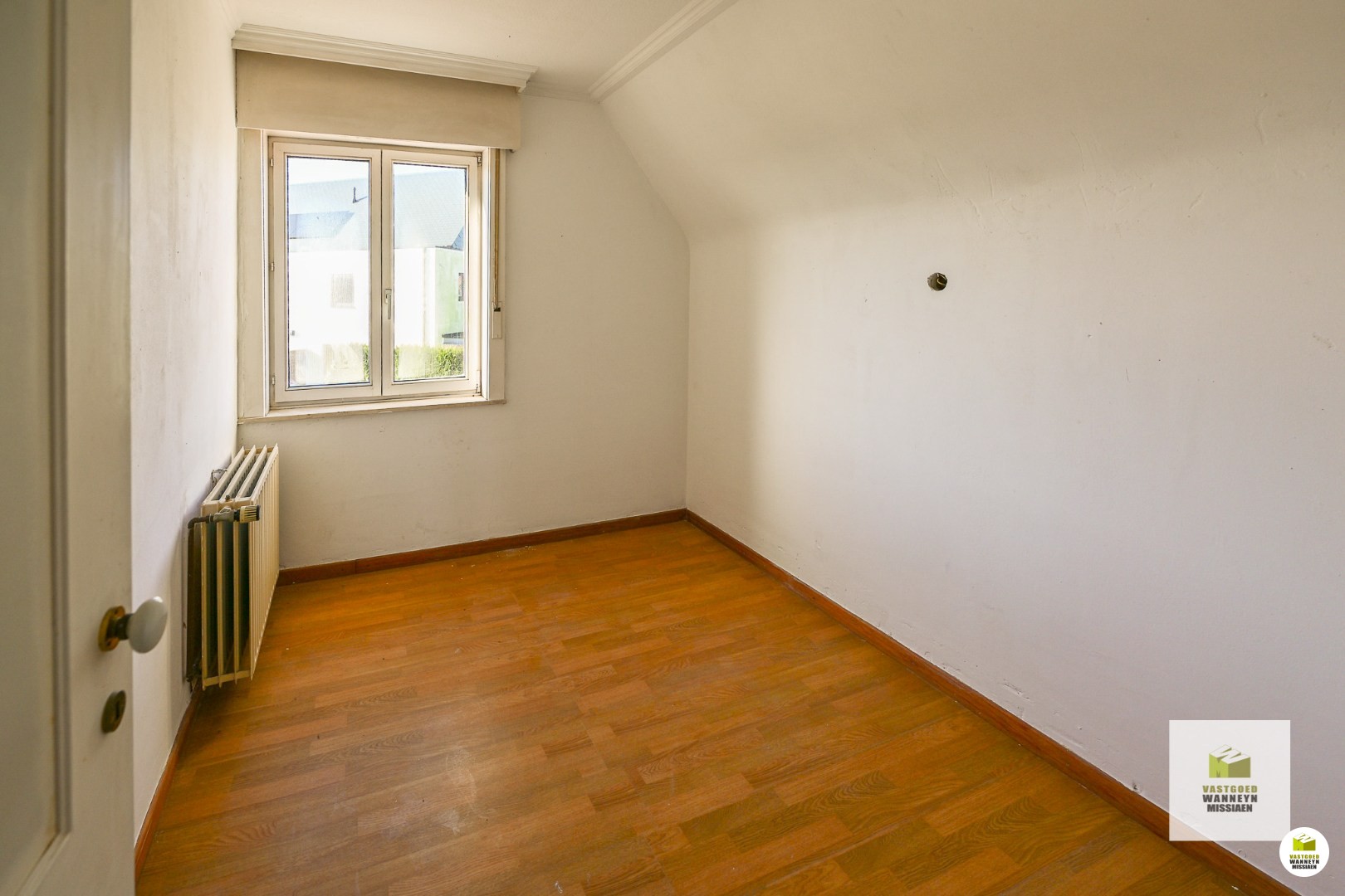 Via de keuken kan je ook naar de kelder en de ondergrondse garage. Op de eerste verdieping bevinden zich drie slaapkamers en ruimte voor een badkamer. Er is ook een ruime zolder dit mits het plaatsen van een vaste trap perfect is voor een extra kamer. Naast de woning is nog een ruime garagebox (rode poort) die achteraan uitkomt in de tuin.