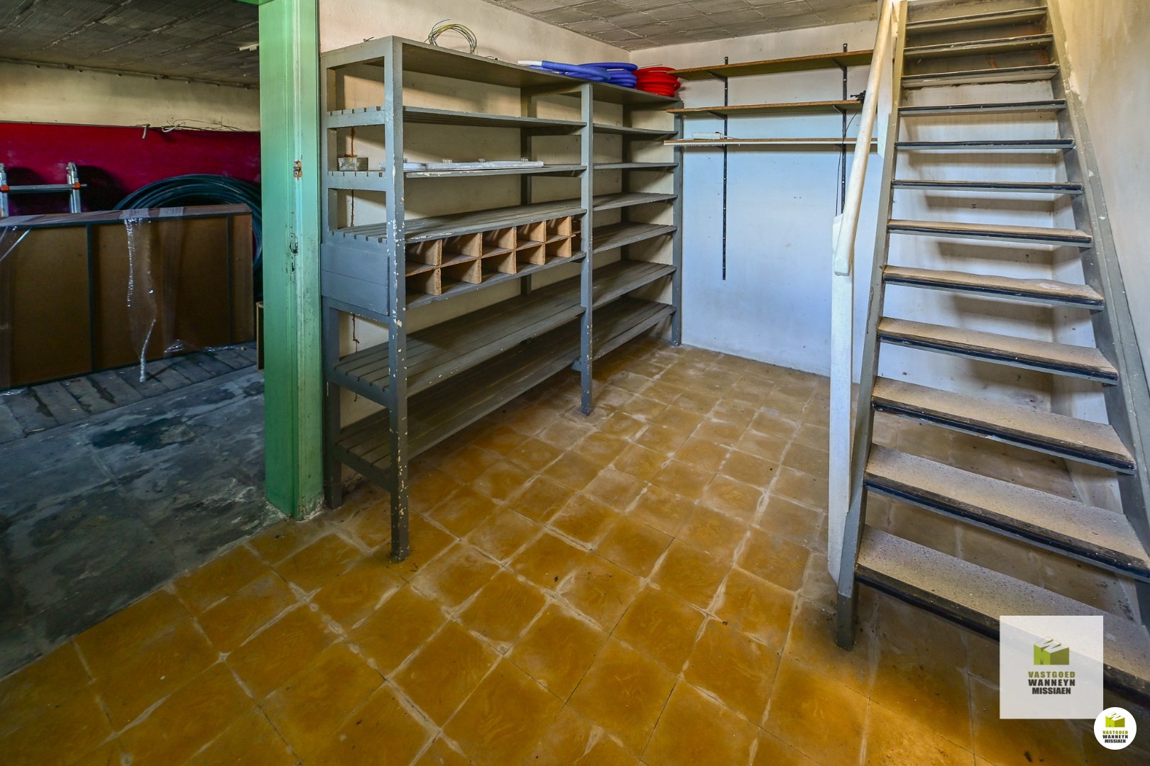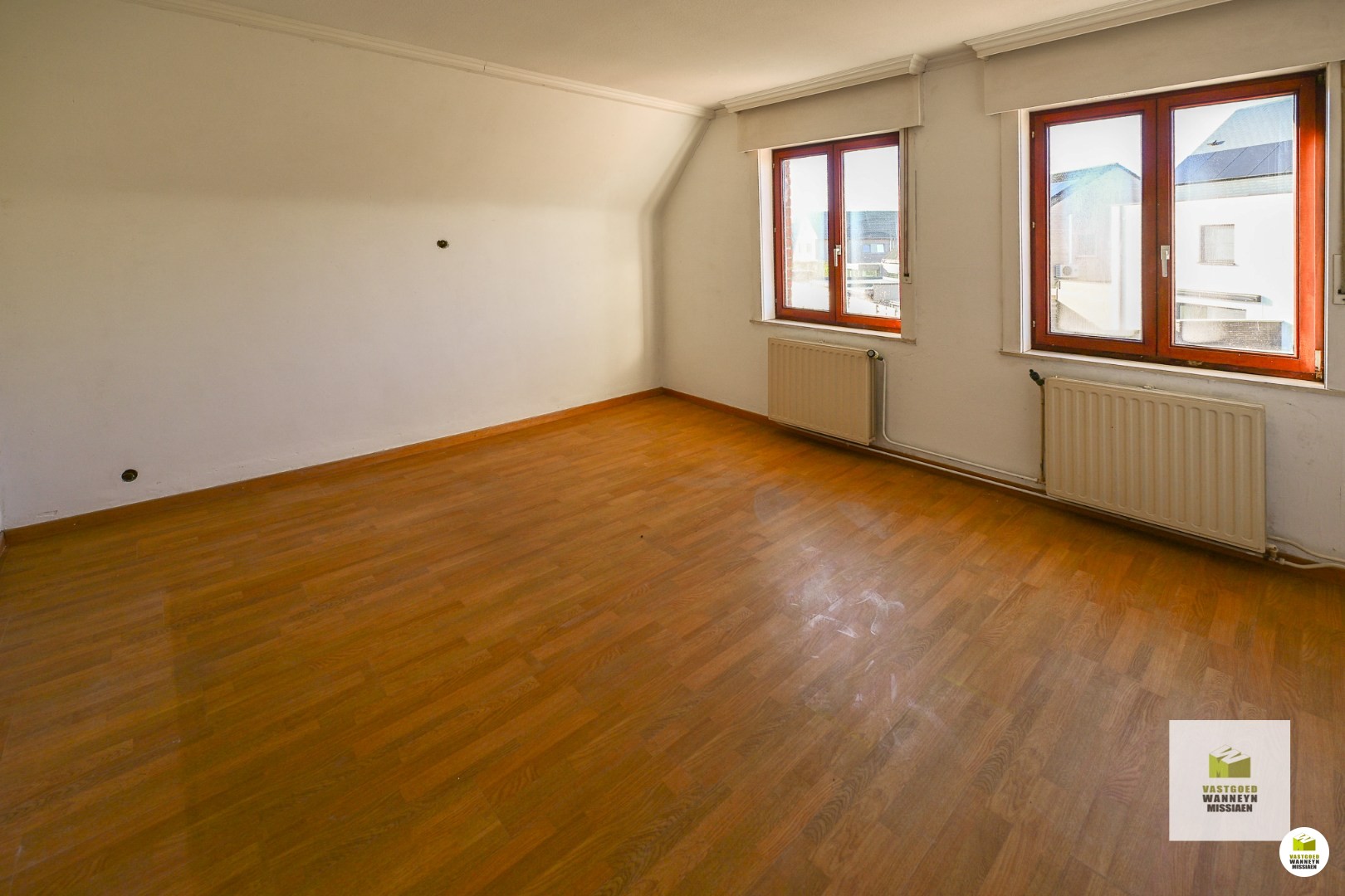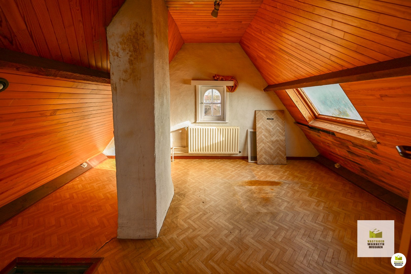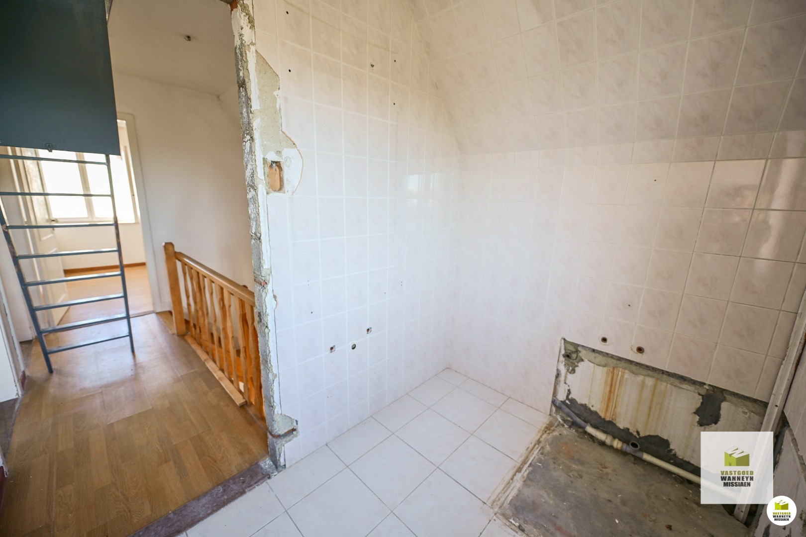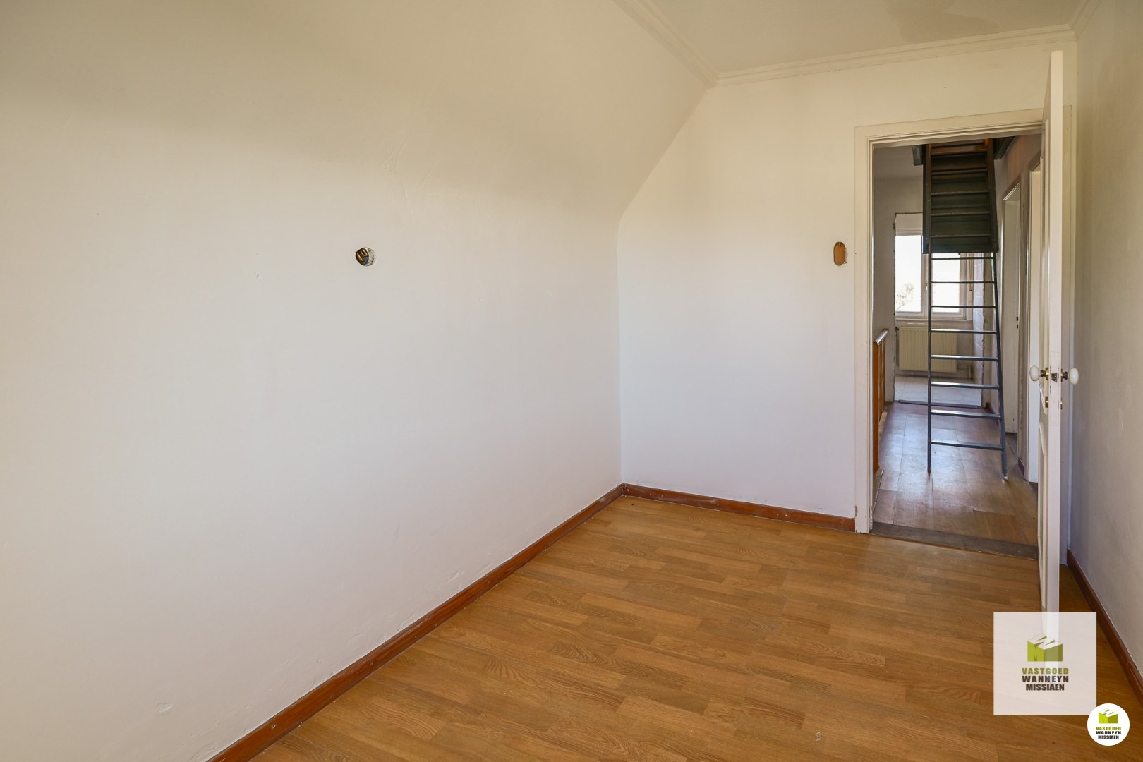 Via de keuken kan je ook naar de kelder en de ondergrondse garage. Op de eerste verdieping bevinden zich drie slaapkamers en ruimte voor een badkamer. Er is ook een ruime zolder dit mits het plaatsen van een vaste trap perfect is voor een extra kamer. Naast de woning is nog een ruime garagebox (rode poort) die achteraan uitkomt in de tuin.