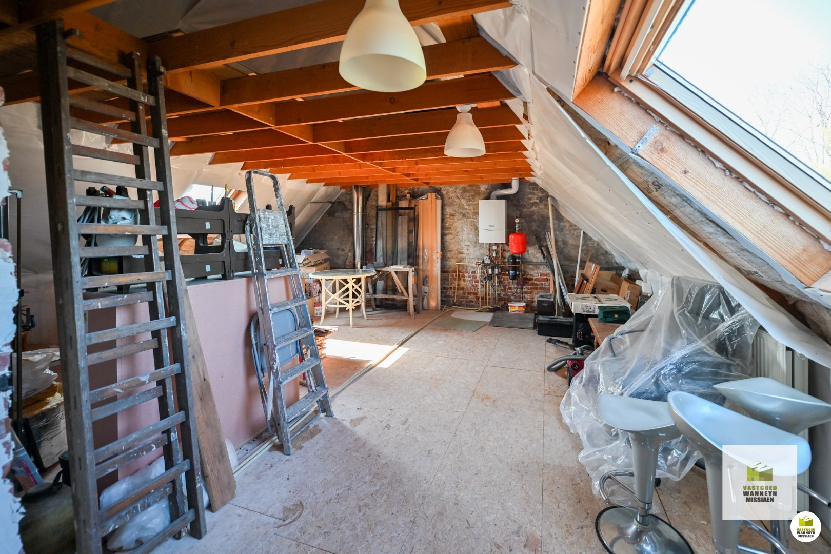 De zolderverdieping werd vernieuwd in 2011 (nieuw onderdak en isolatie) en biedt, mits verdere afwerking, mogelijkheden tot het creëren van extra volwaardige kamers.