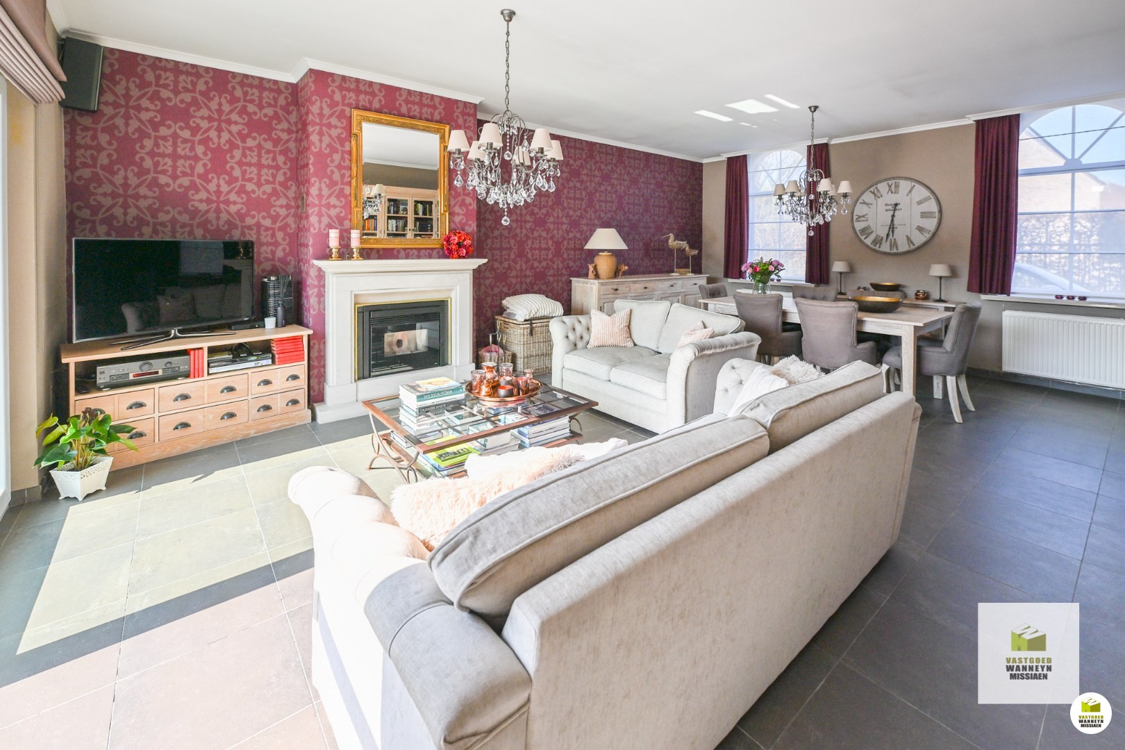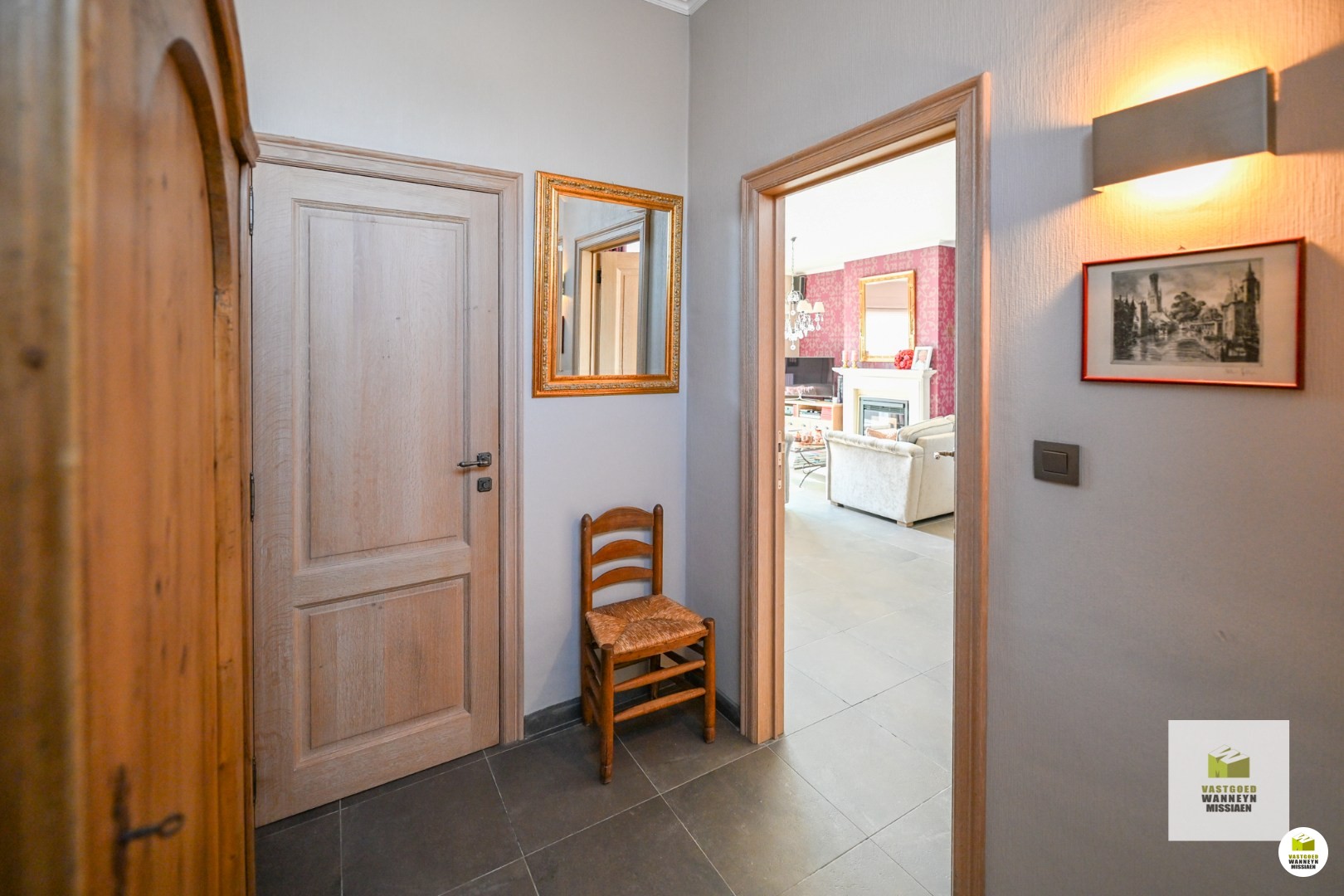 Bij het binnenkomen betreed je een karaktervol en zeer verzorgd pand. Via de inkomhal met gastentoilet kom je in de lichtrijke leefruimte, waar grote raampartijen zorgen voor een aangenaam zicht op het terras en de tuin. Naast de centrale verwarming zorgt de pelletkachel voor extra warmte en sfeer tijdens koudere dagen.