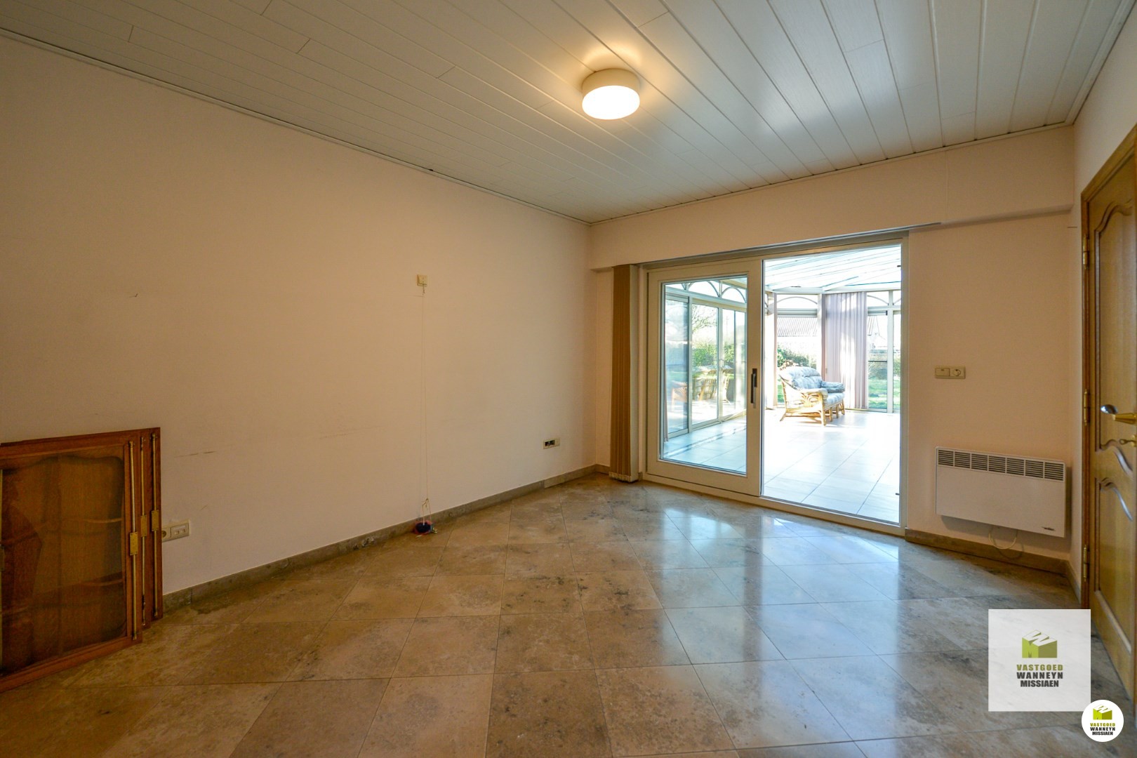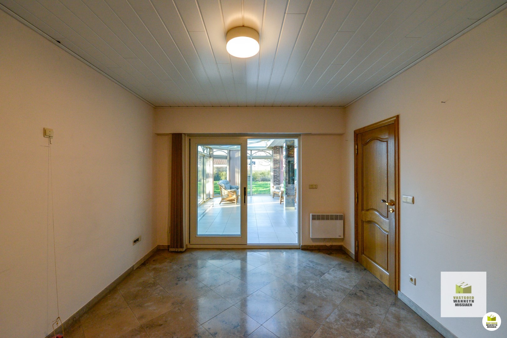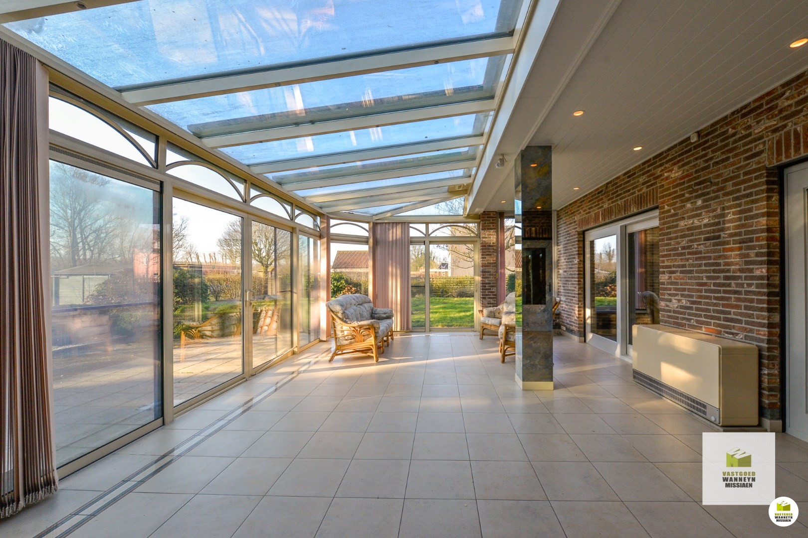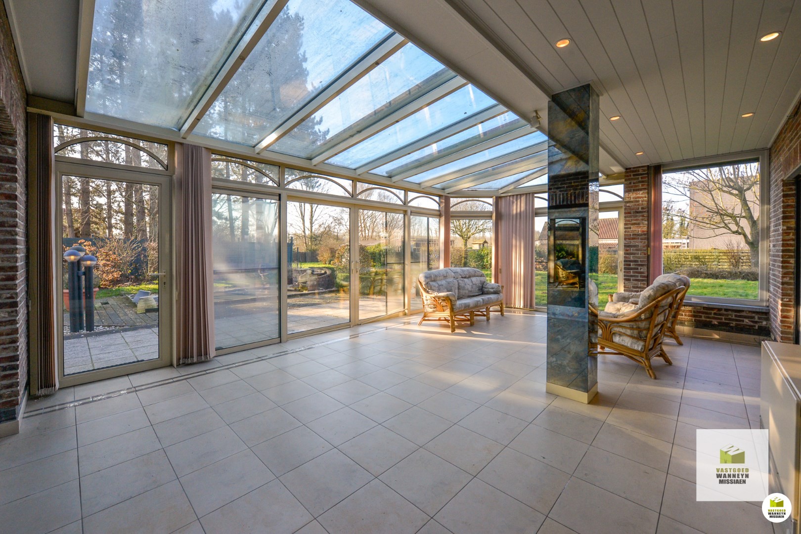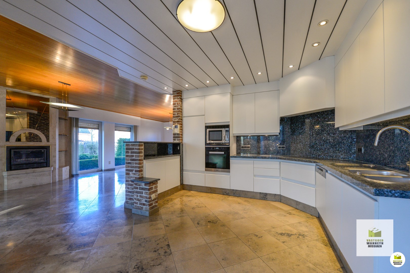 Indeling van de woning is als volgt: Binnenkomen doen we in de open en lichtrijke inkomhal met traphal. Onder de trap is een apart gastentoilet terug te vinden. Vervolgens komen we binnen in de leefruimte, omringd met ramen die voldoende natuurlijk daglicht laten binnenkomen gedurende de hele dag! De leefruimte werd voorzien van een ingebouwde houtkachel, om in de winter of 's avonds gezellig voor tot rust te komen. Vervolgens is de keuken gelegen. Deze staat in verbinding met de leefruimte en werd voorzien van een granieten werkblad en Miele toestellen: ingebouwde frigo, oven en microgolf, dubbelen spoelbak en ingebouwde vaatwasmachine. Bovendien is er nog een ingebouwde kraan met zowel gekoeld en kokend als plat en bruisend water! Aan zowel de leefruimte als de keuken is de veranda verbonden. Deze werd bijgebouwd in 1999 en ... voorziet de keuken en leefruimte van extra daglicht en een zalig zicht op de tuin! In de veranda is het genieten van elke zonnestraal op elk moment van de dag en elk moment van het jaar!