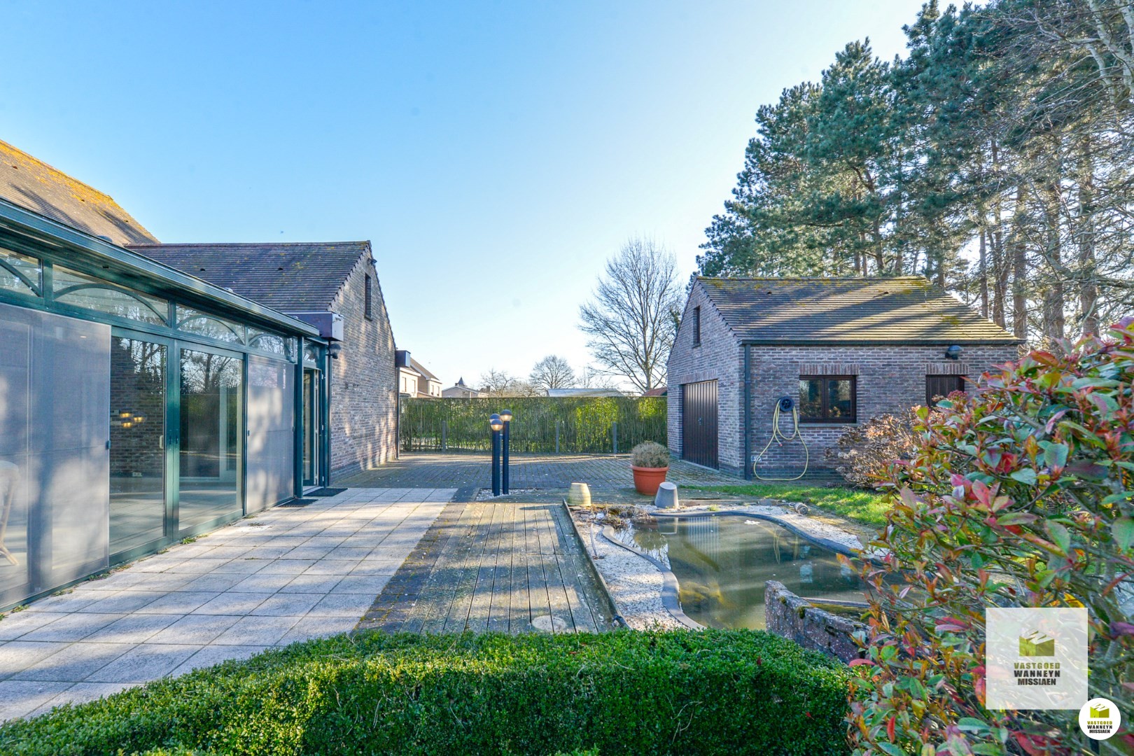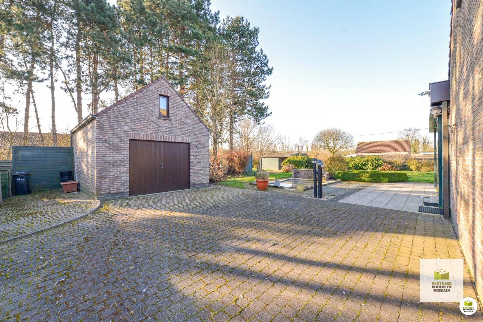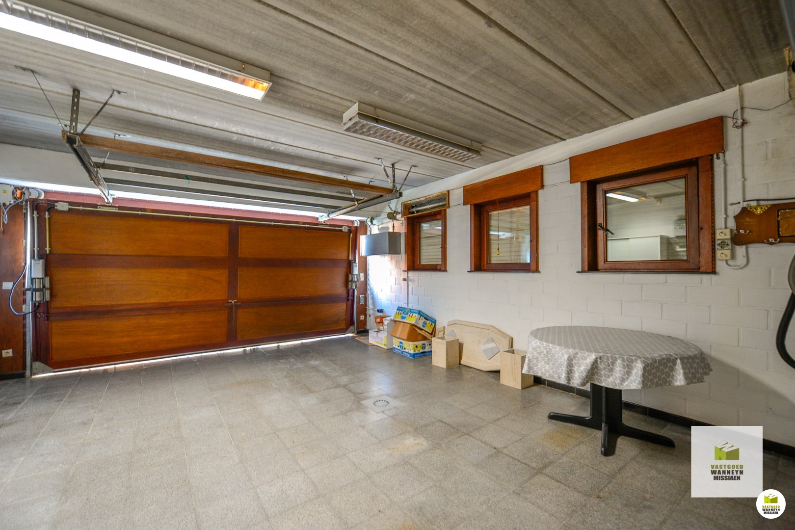 Hiernaast is een praktische berging gelegen, die vervolgens vlakbij de garage is. De inpandige garage biedt plaats voor 2 wagens, alsook opbergruimte en is voorzien van een elektrische automatische poort.