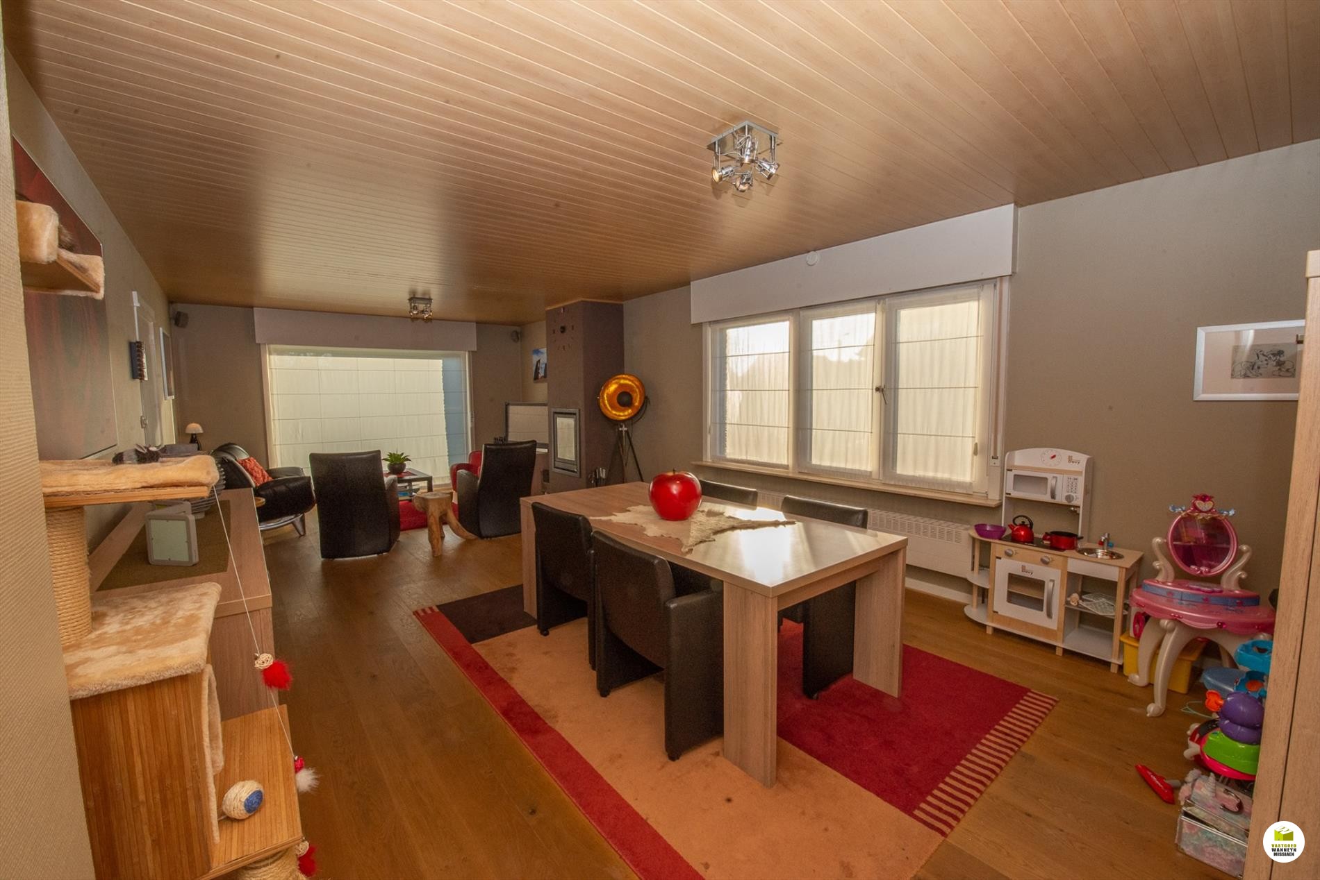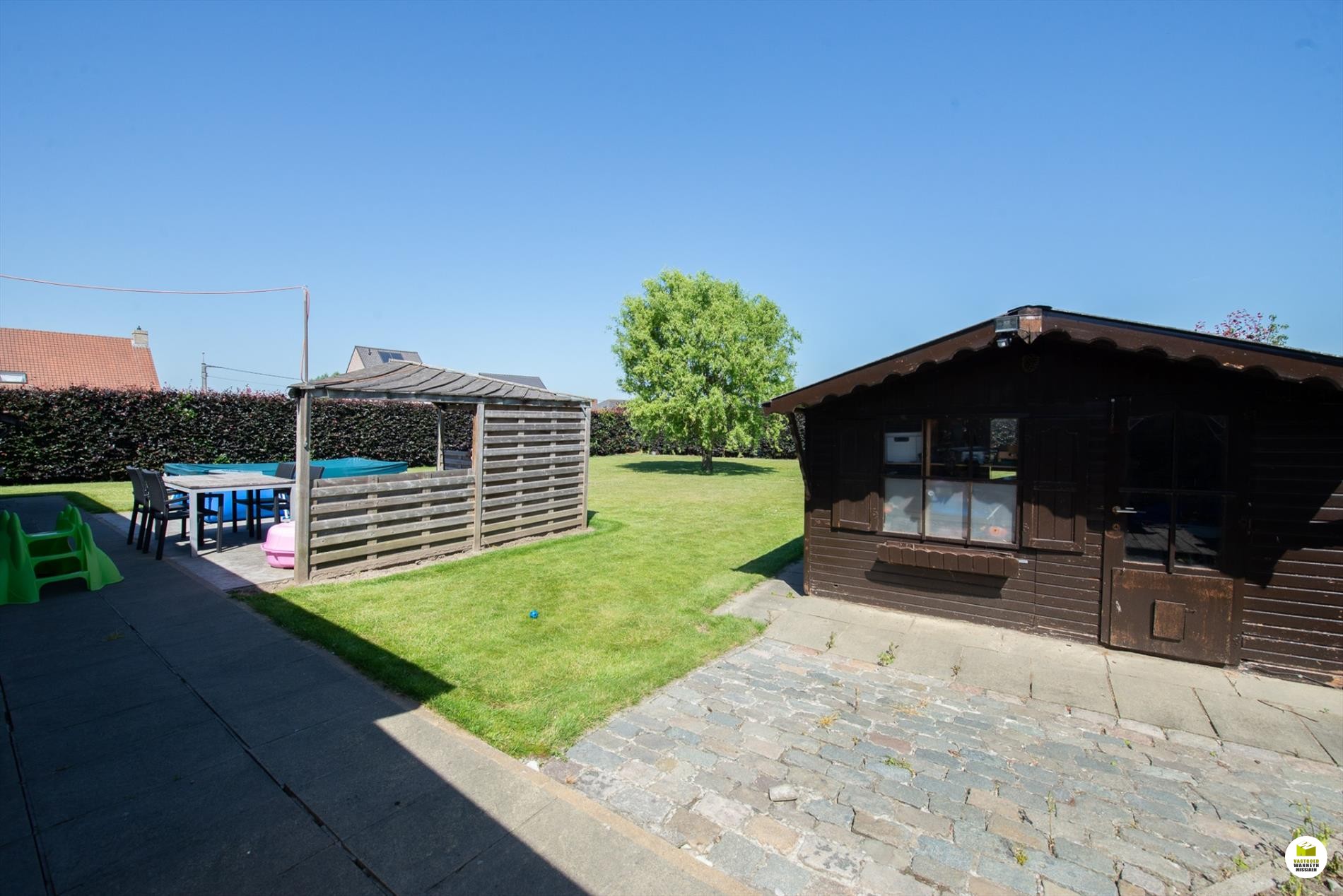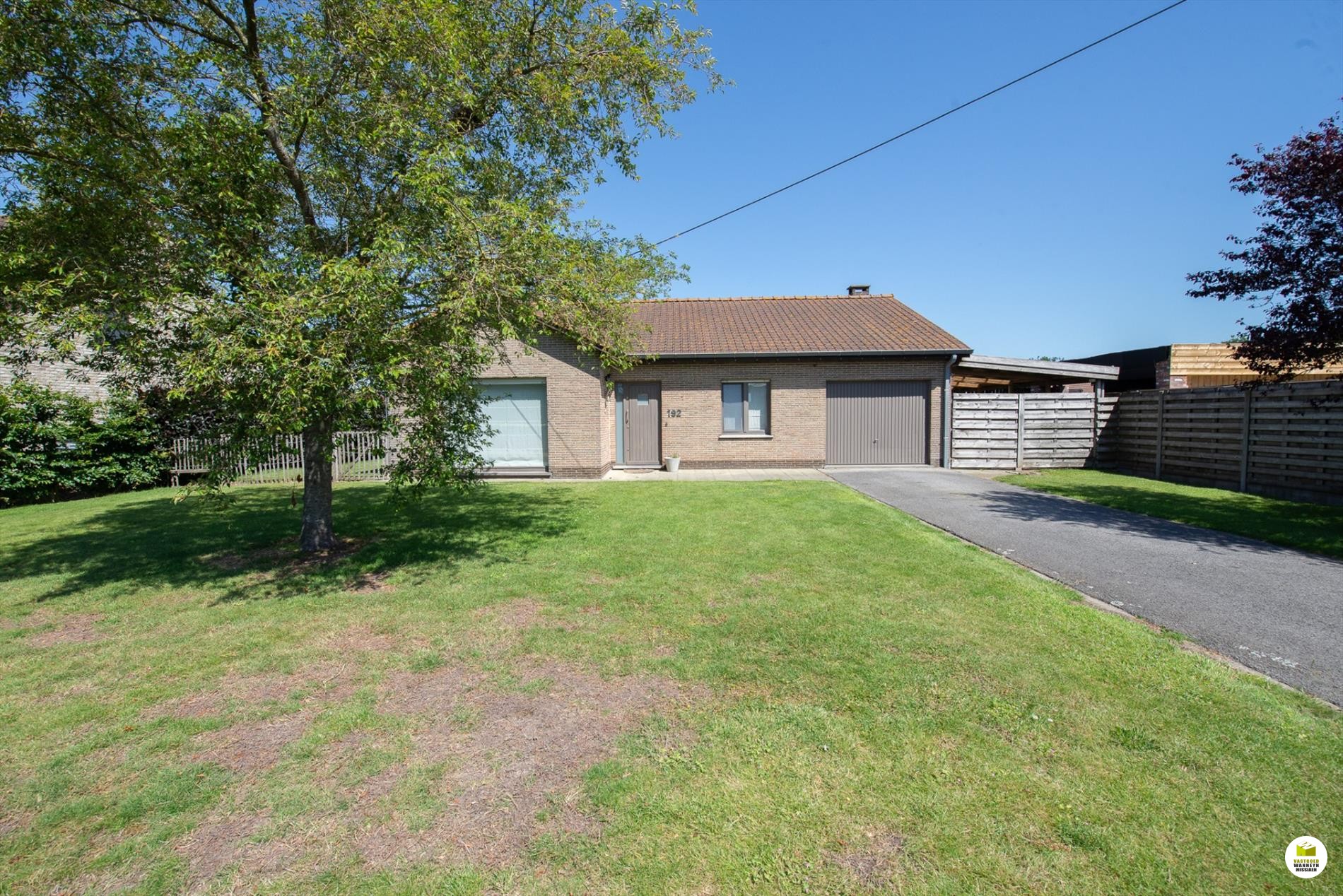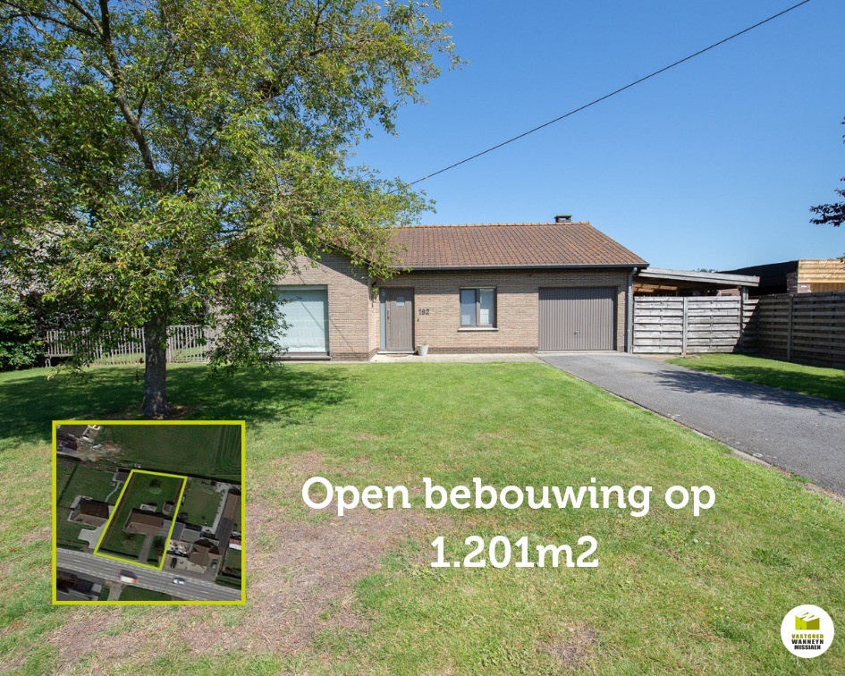 Instapklare open bebouwing (bungalow) op een mooi rechthoekig perceel van 1.201m2. Indeling: inkomhall, lichtrijke living (8,45 x 4,2m) met inbouwhoutcasette, zeer mooie keuken met werkblad in zwarte merlin, gasvuur, ATAG vaatwas, oven en microgolf, berging, 2 slaapkamers, afzonderlijk toilet, vernieuwde badkamer (2016) met dubbele lavabo in natuursteen en walk-in bad en douche, garage (5,5 x 3m) ideaal als 3de slaapkamer. Zolder. Volledig omheinde grote tuin met aangelegd terras. Onder het gras ligt een mollennet alsook bedrading voor grasrobot. Indien U verder nog vragen heeft of U wenst een bezoek? Aarzel niet en contacteer ons op het nummer: 050/70 34 35.