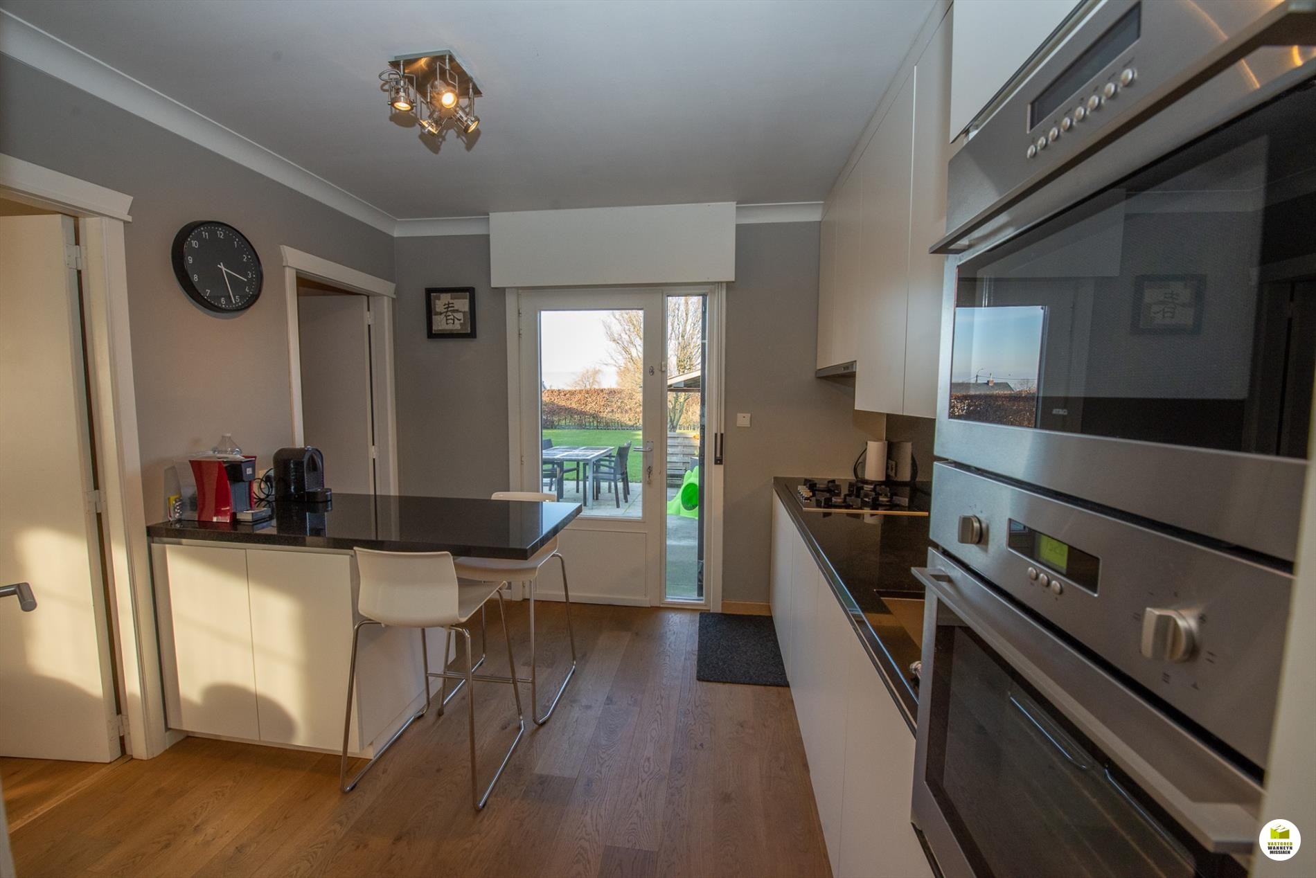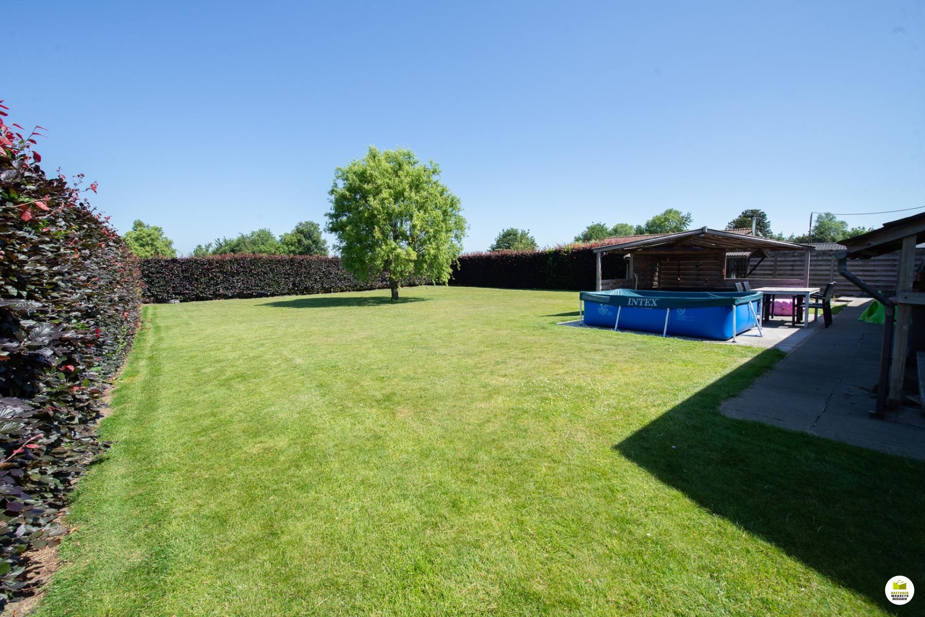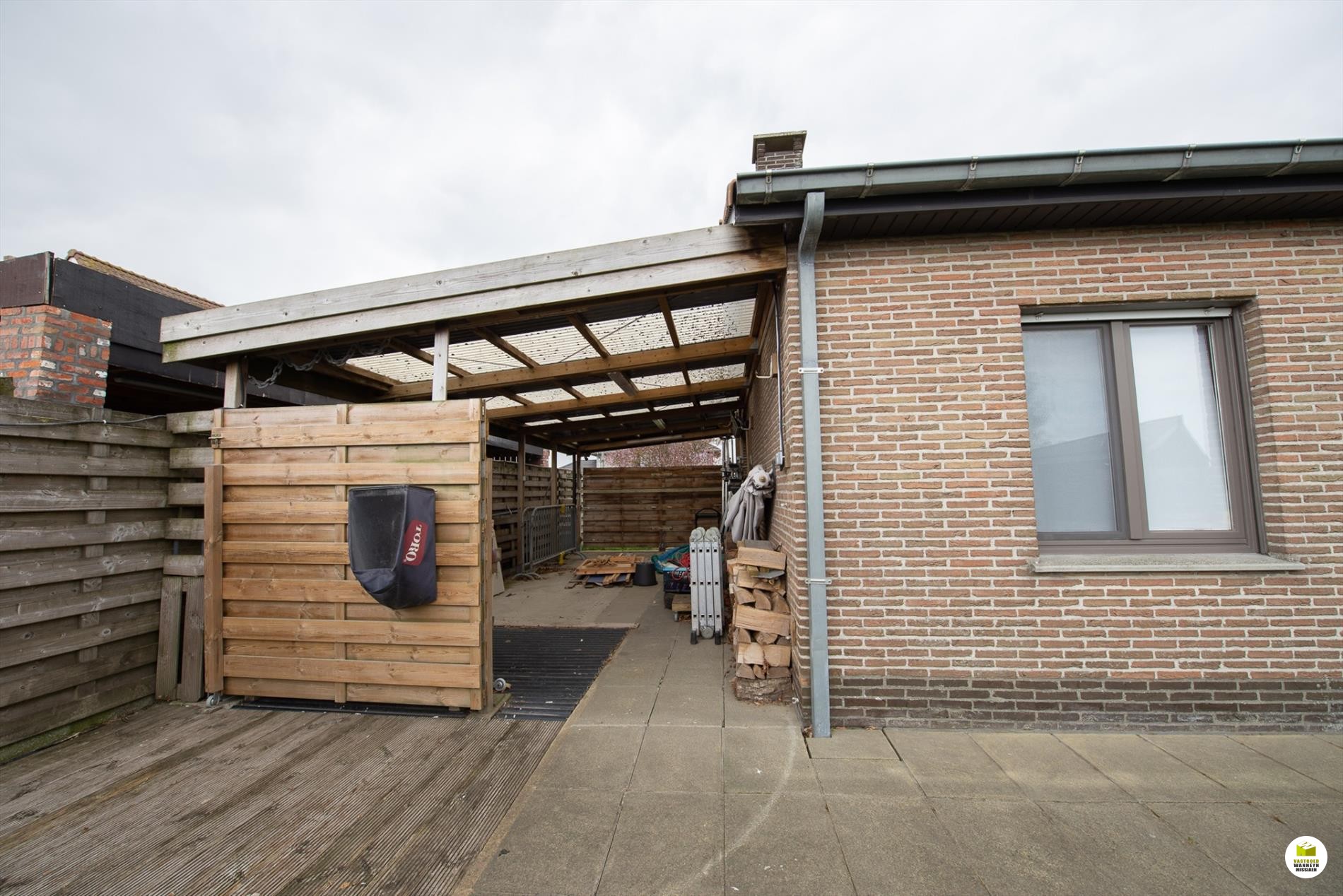 Instapklare open bebouwing (bungalow) op een mooi rechthoekig perceel van 1.201m2. Indeling: inkomhall, lichtrijke living (8,45 x 4,2m) met inbouwhoutcasette, zeer mooie keuken met werkblad in zwarte merlin, gasvuur, ATAG vaatwas, oven en microgolf, berging, 2 slaapkamers, afzonderlijk toilet, vernieuwde badkamer (2016) met dubbele lavabo in natuursteen en walk-in bad en douche, garage (5,5 x 3m) ideaal als 3de slaapkamer. Zolder. Volledig omheinde grote tuin met aangelegd terras. Onder het gras ligt een mollennet alsook bedrading voor grasrobot. Indien U verder nog vragen heeft of U wenst een bezoek? Aarzel niet en contacteer ons op het nummer: 050/70 34 35.