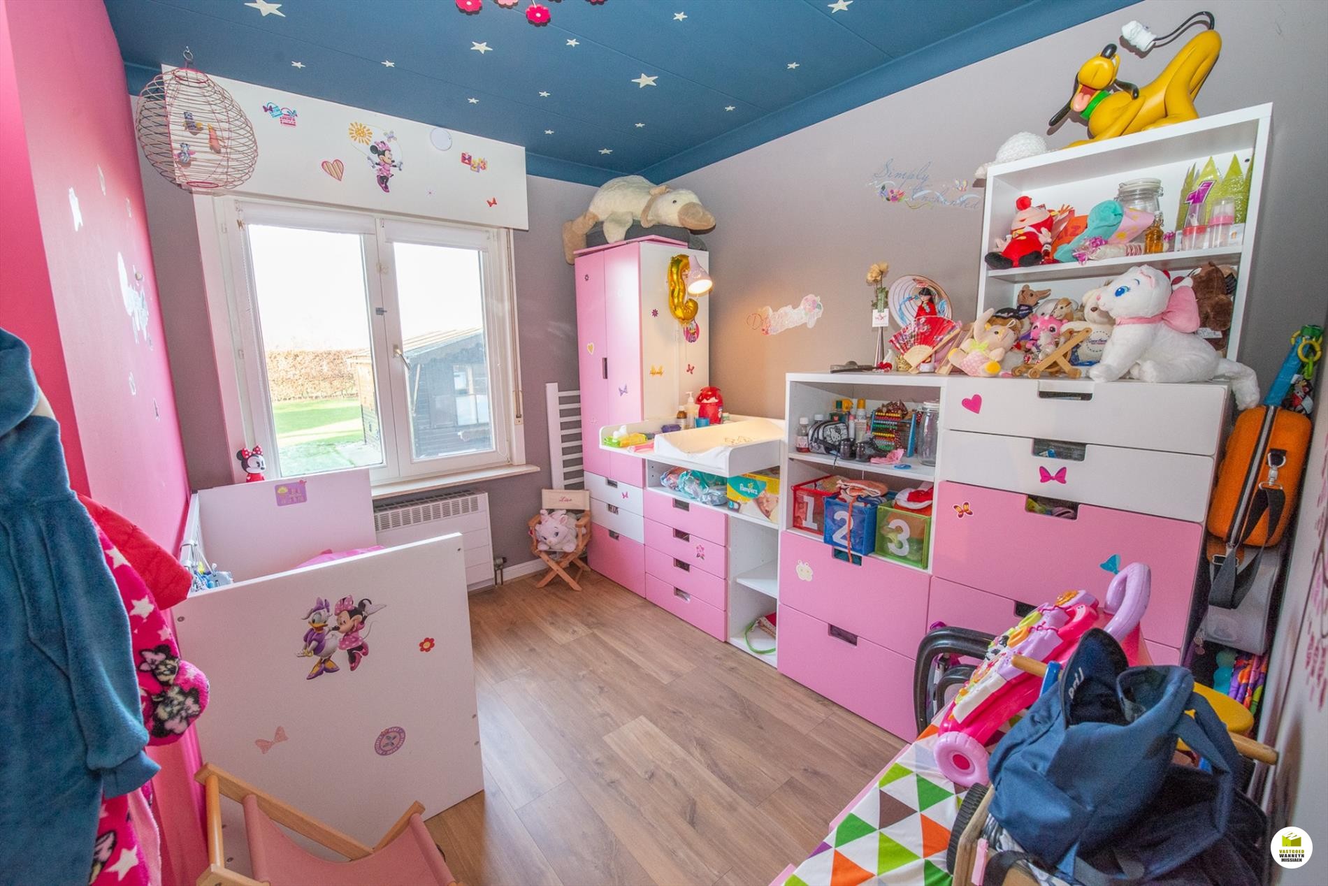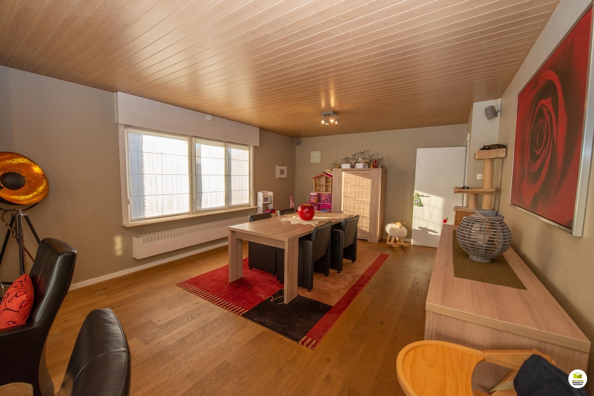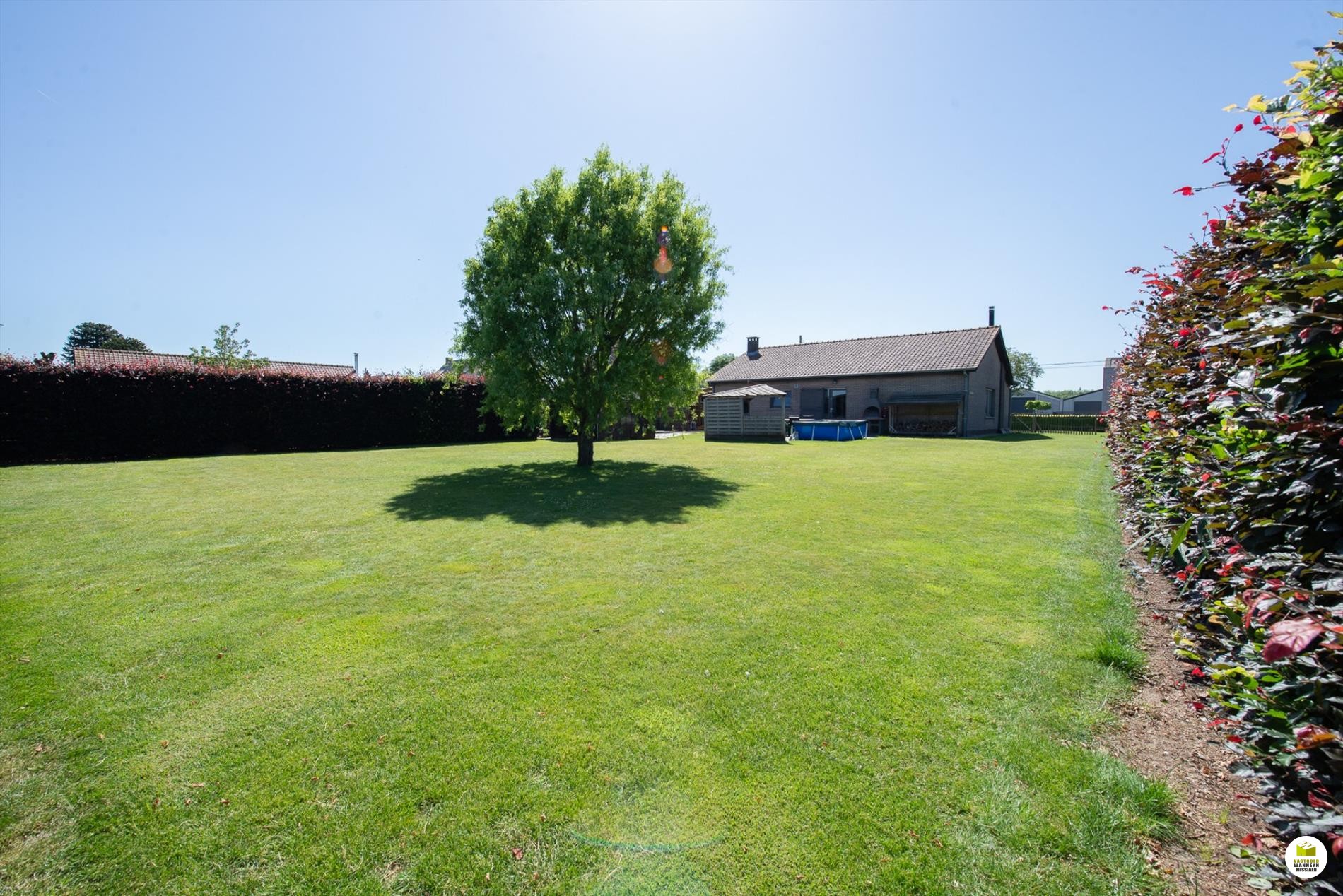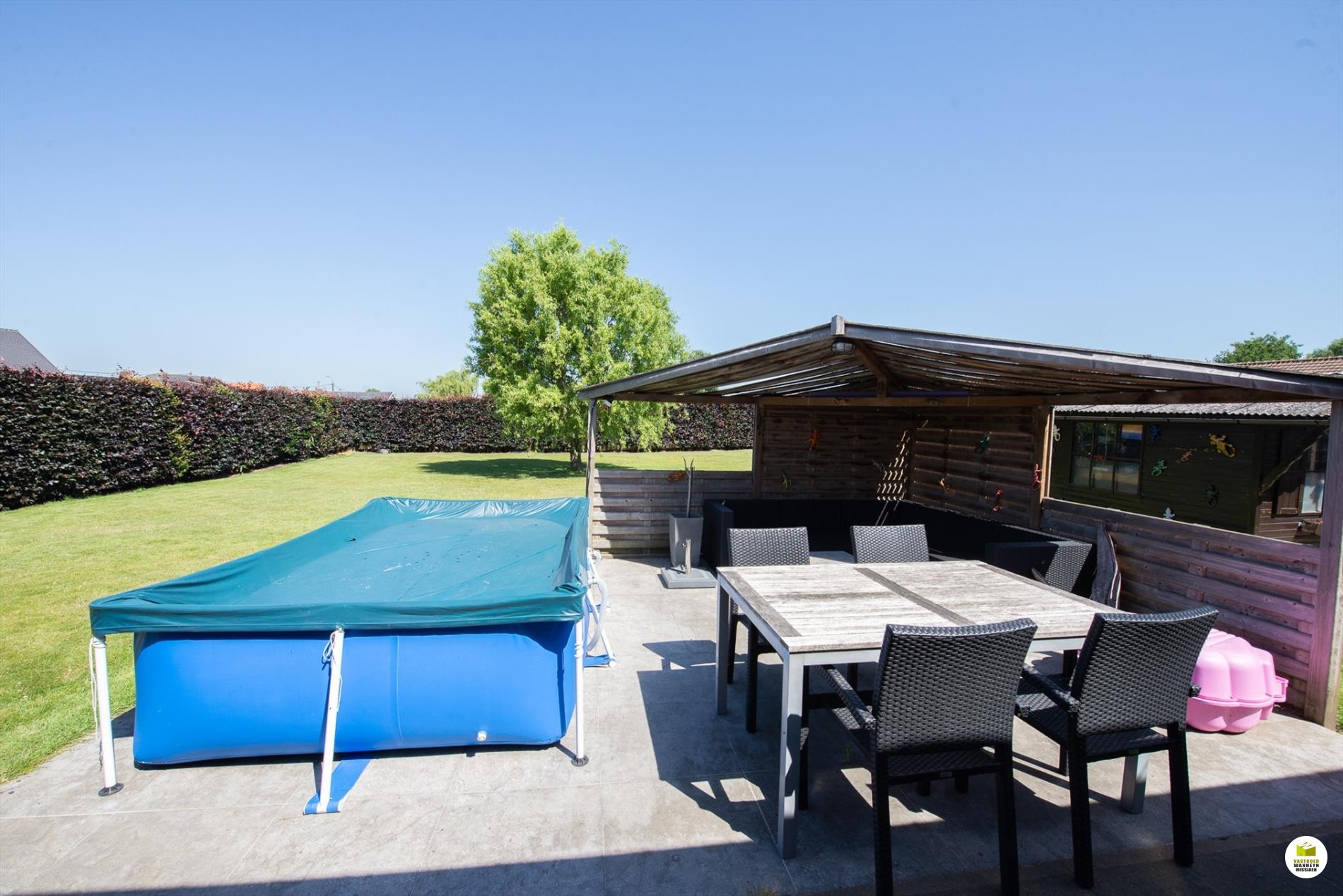 Instapklare open bebouwing (bungalow) op een mooi rechthoekig perceel van 1.201m2. Indeling: inkomhall, lichtrijke living (8,45 x 4,2m) met inbouwhoutcasette, zeer mooie keuken met werkblad in zwarte merlin, gasvuur, ATAG vaatwas, oven en microgolf, berging, 2 slaapkamers, afzonderlijk toilet, vernieuwde badkamer (2016) met dubbele lavabo in natuursteen en walk-in bad en douche, garage (5,5 x 3m) ideaal als 3de slaapkamer. Zolder. Volledig omheinde grote tuin met aangelegd terras. Onder het gras ligt een mollennet alsook bedrading voor grasrobot. Indien U verder nog vragen heeft of U wenst een bezoek? Aarzel niet en contacteer ons op het nummer: 050/70 34 35.