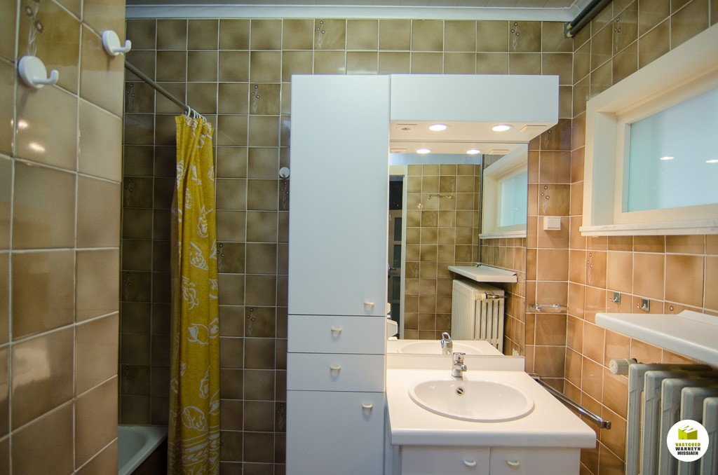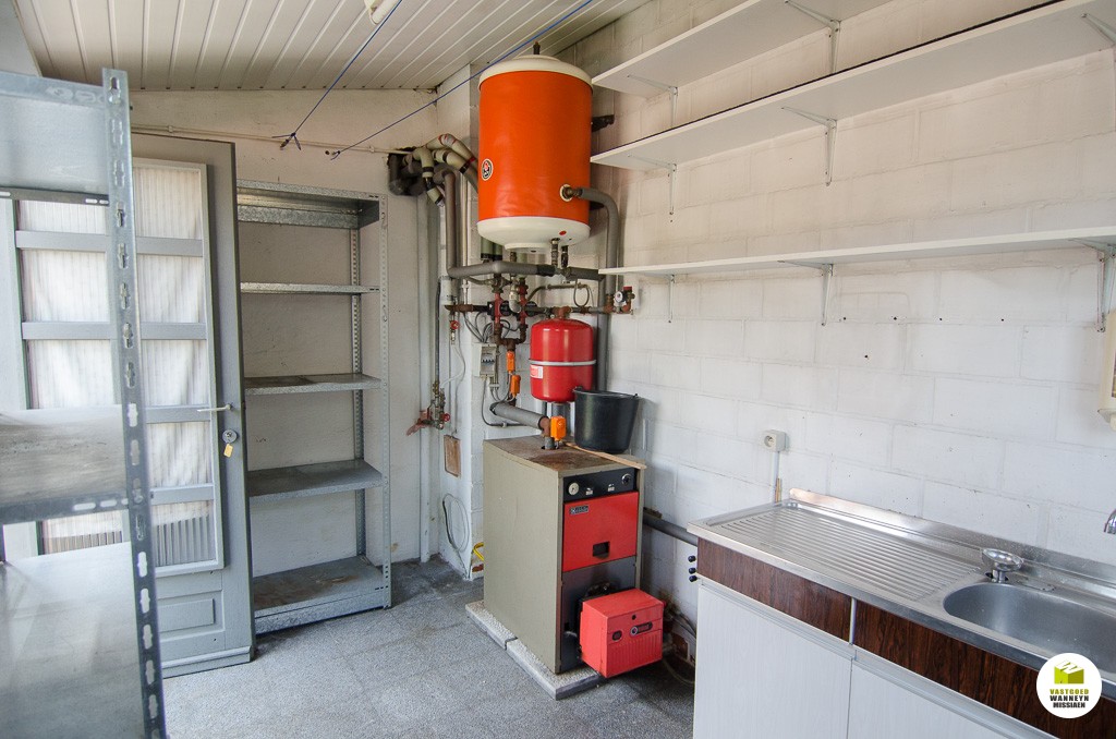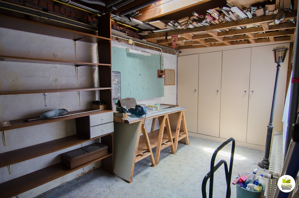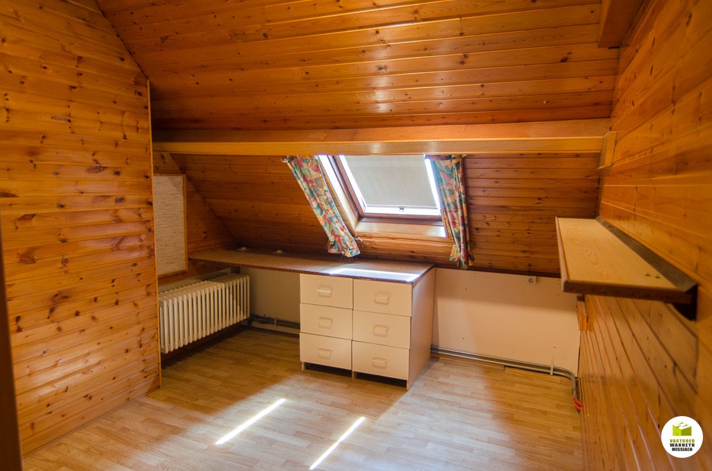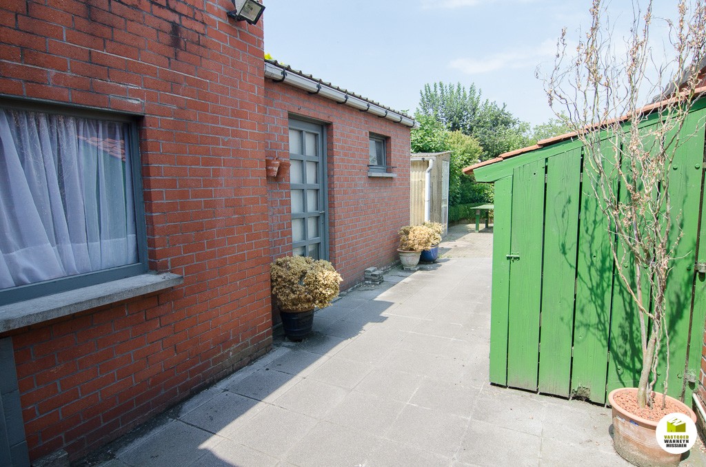 Knusse starterswoning 2 slaapkamers, grote onderhoudsvriendelijke tuin met uitweg en grote garage (33m2)\n\nLigging: op 500m van het station, door centrumligging quasi alles binnen wandelafstand bereikbaar.\n\nIndeling: we komen binnen in de woonkamer, knusse eetplaats en tv-hoek. De keuken is nieuw van 2004 en is goed geïnstalleerd (AEG toestellen), naar aanleiding van die werken werden ook de sanitaire leidingen vernieuwd, alsook werd er toen een nieuwe vloer gelegd. Aansluitend vinden we de badkamer (zitbad) met apart toilet. De badkamer kan flink groter gemaakt worden. De hobby- werkplaats sluit aan de wasplaats. Vanuit de keuken heb je zicht op de tuin, serre en het terras. Er is een tuinhuis en een grote garage voorzien van een sectionale poort (33m2). Op de eerste verdieping zijn er 2 slaapkamers. Alle hoekjes en kantjes werden optimaal gebruikt door nissen en inbouwkasten. Er is een grote zolder, toegankelijk met een schuiftrap.\n\nPluspunten: \n- overal centrale verwarming (mazout)\n- nieuwe keuken 2004\n- centrumligging doch ...