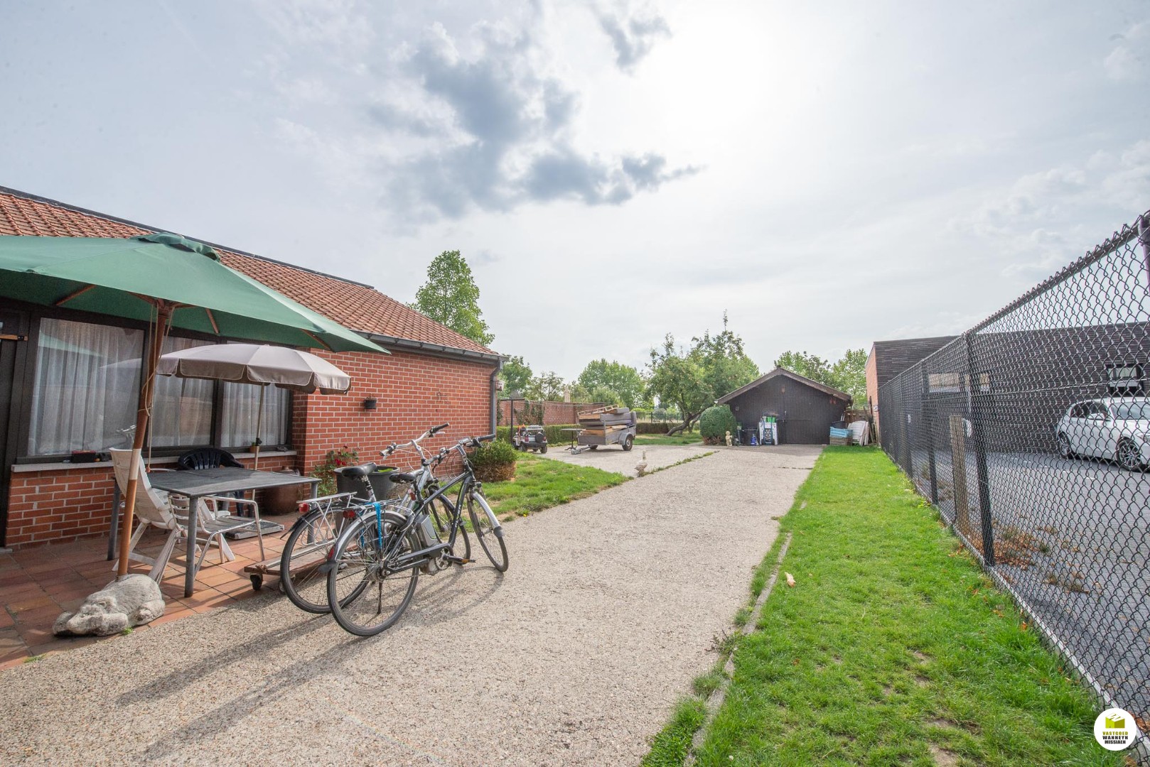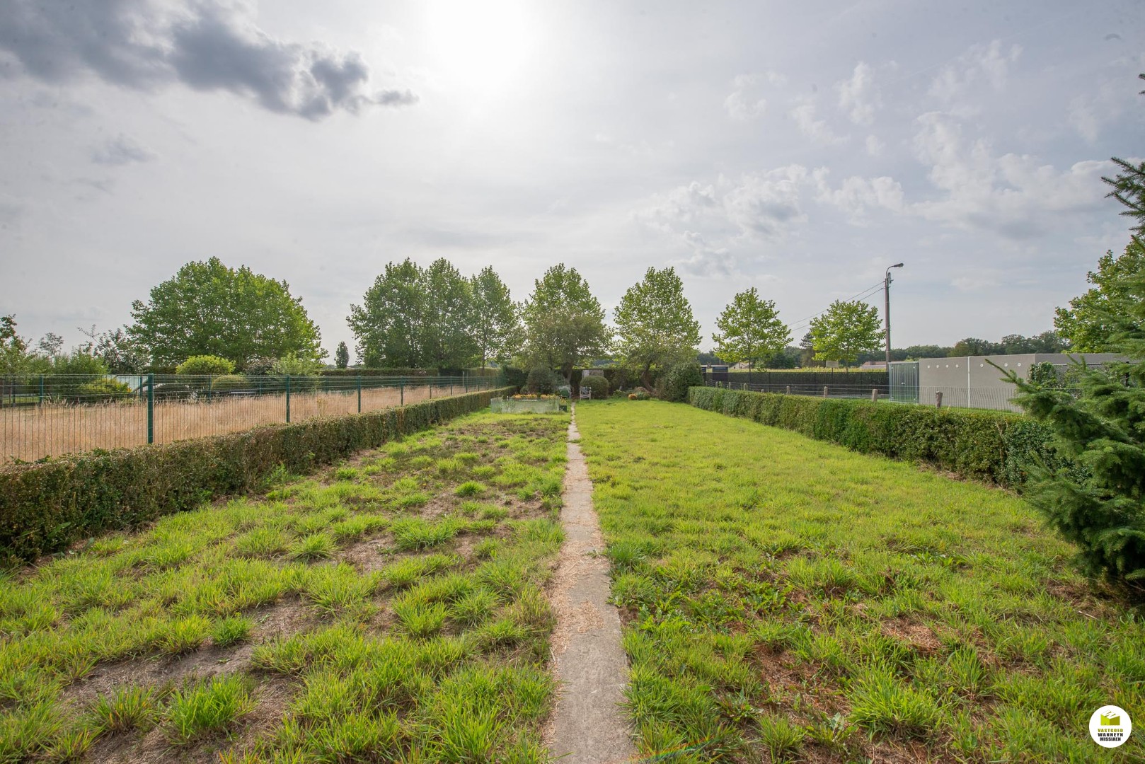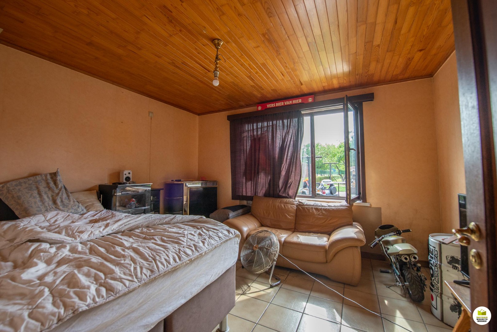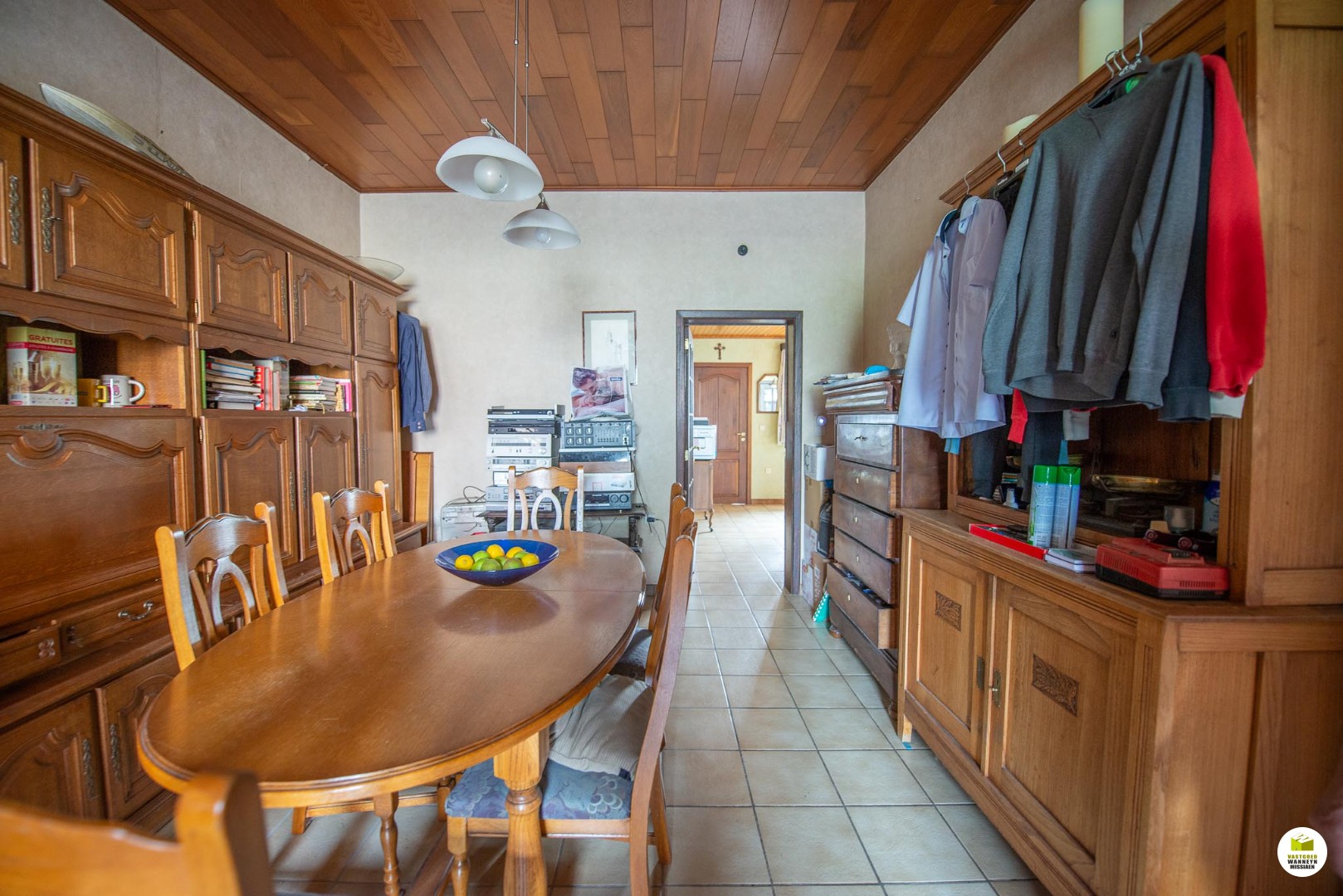 Indeling woning: inkom met rechtstreekse toegang tot de achtergelegen keuken en de leefruimte. Beide ruimtes worden verwarmd door middel van een gaskachel, centrale verwarming is in de woning niet aanwezig. De leefruimte wordt verbonden met de keuken via de eetplaats, waar voldoende ruimte is om een grote eettafel te plaatsen. De keuken is basis ingericht en uitgerust met een oven en kookplaat. Aanpalend aan de keuken is er een kelder én een koele berging. In de keuken is het leuk kokkerellen met zicht op de zongerichte tuin. In deze aanbouw vinden we als een ruime wasplaats, alsook een afzonderlijk toilet en een gelijkvloerse badkamer met lavabo en inloopdouche. Er is ook een gelijkvloerse slaapkamer die ook gebruikt kan worden als bureauruimte. Ook van hieruit is er zicht op de grote ... tuin.
