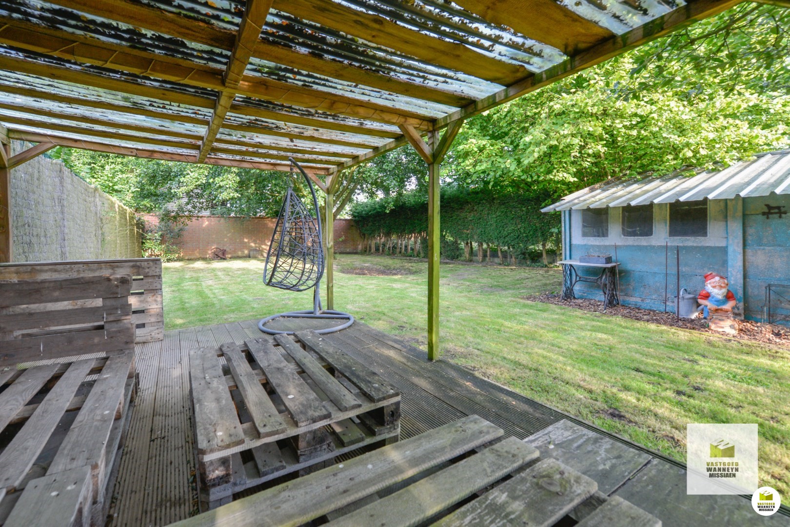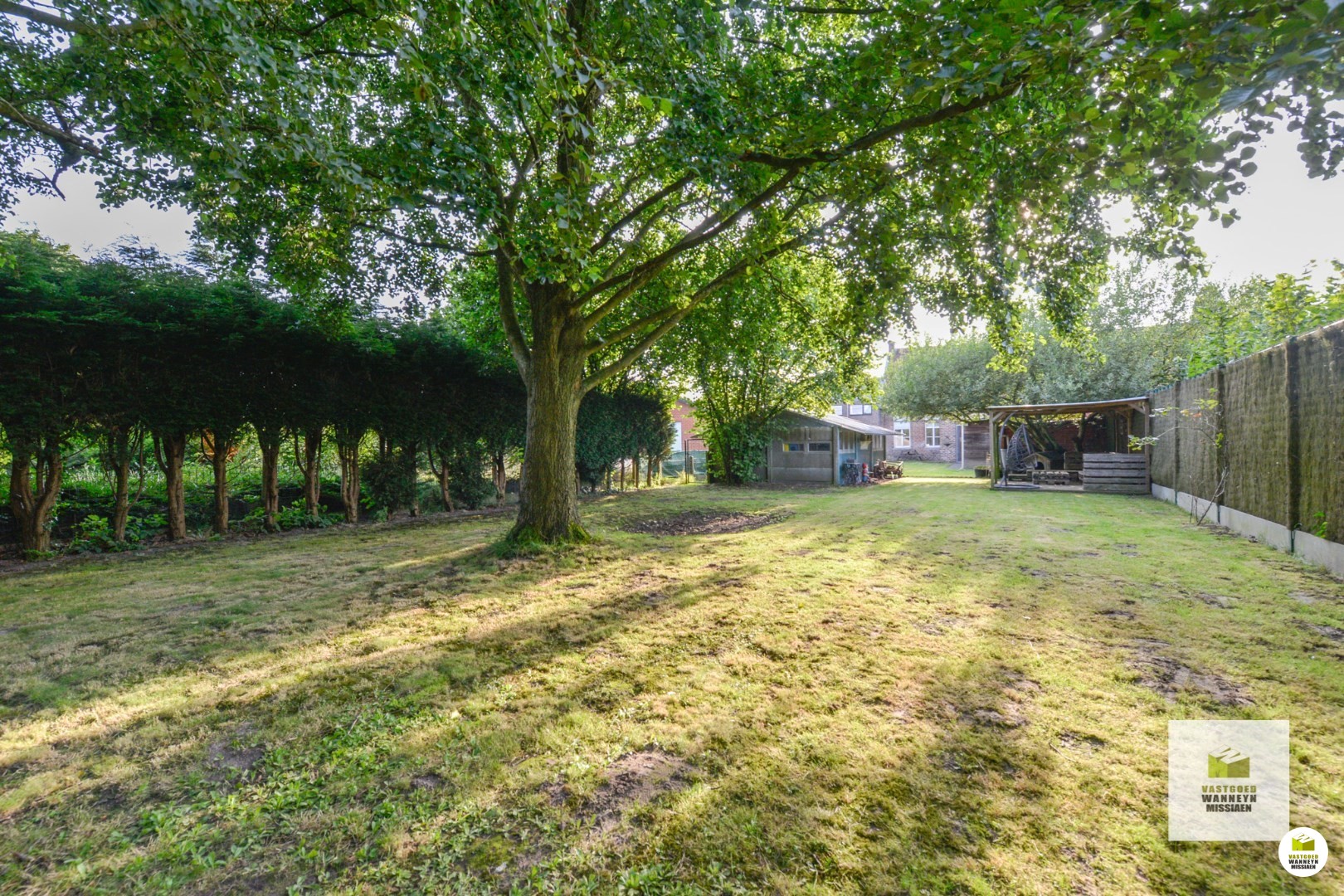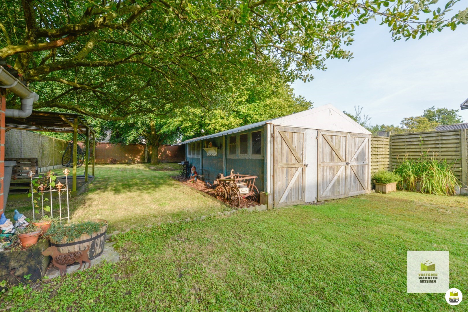 Een groot pluspunt van dit perceel is de grote tuin. Deze biedt voldoende privacy en mogelijkheden om er enerzijds tot rust te komen en anderzijds de groene vingers in te laten werken. In de tuin is een garage gelegen, die kan bereikt worden via de poort aan de zijkant van de woning. Bovendien is aan de voorkant van de woning nog parkeermogelijkheid.