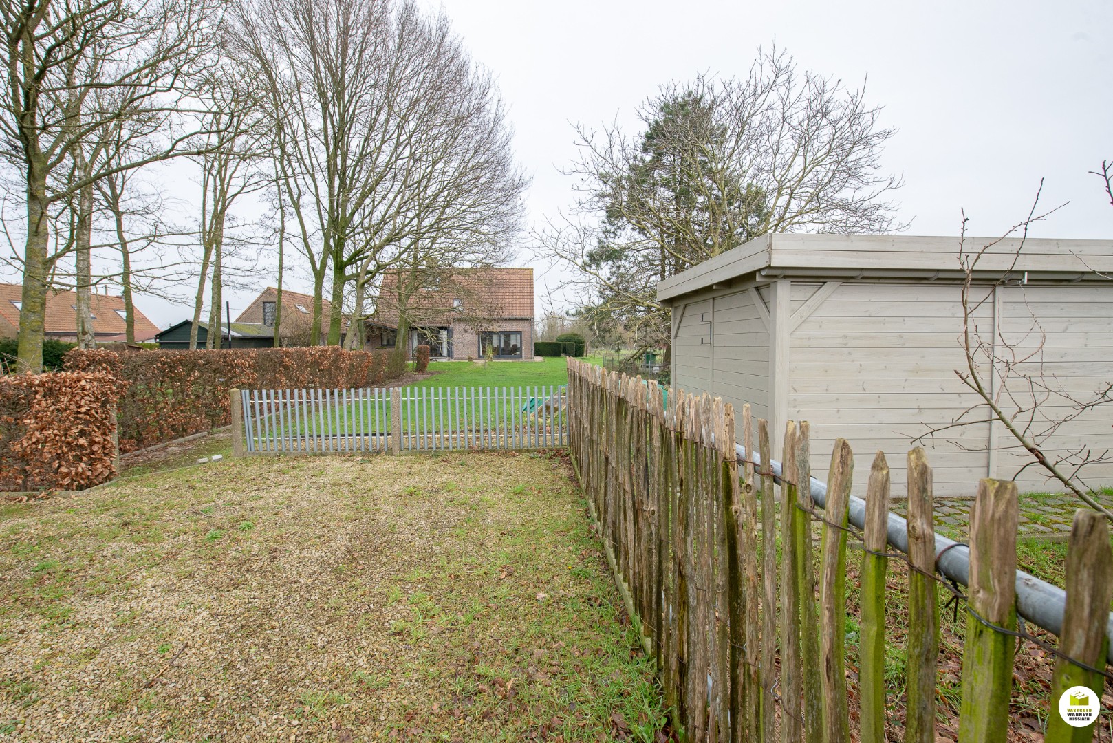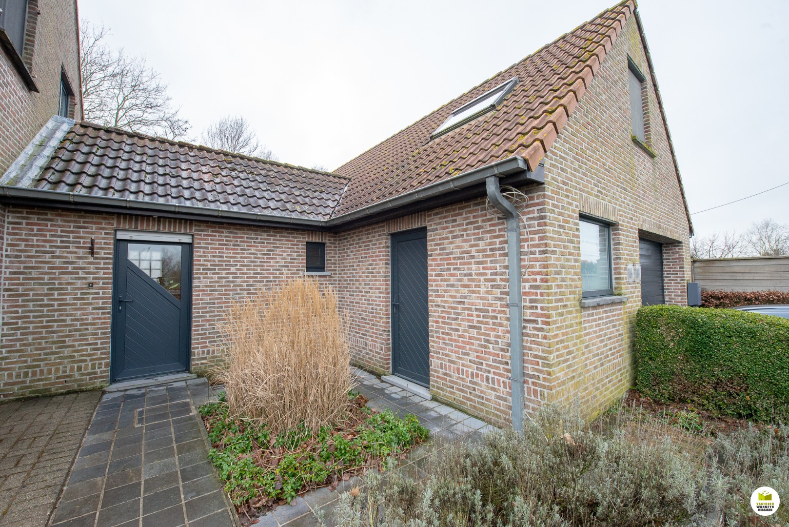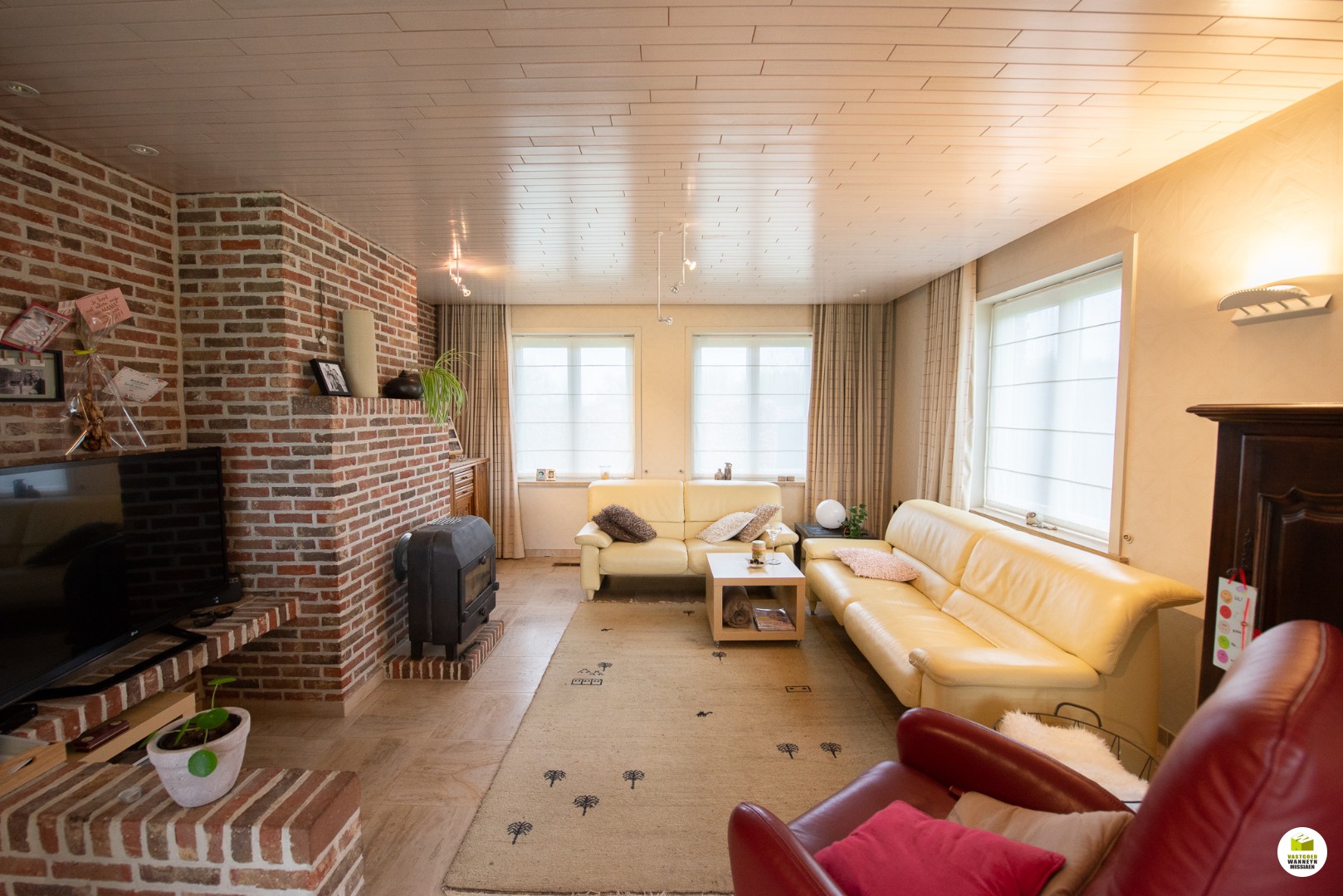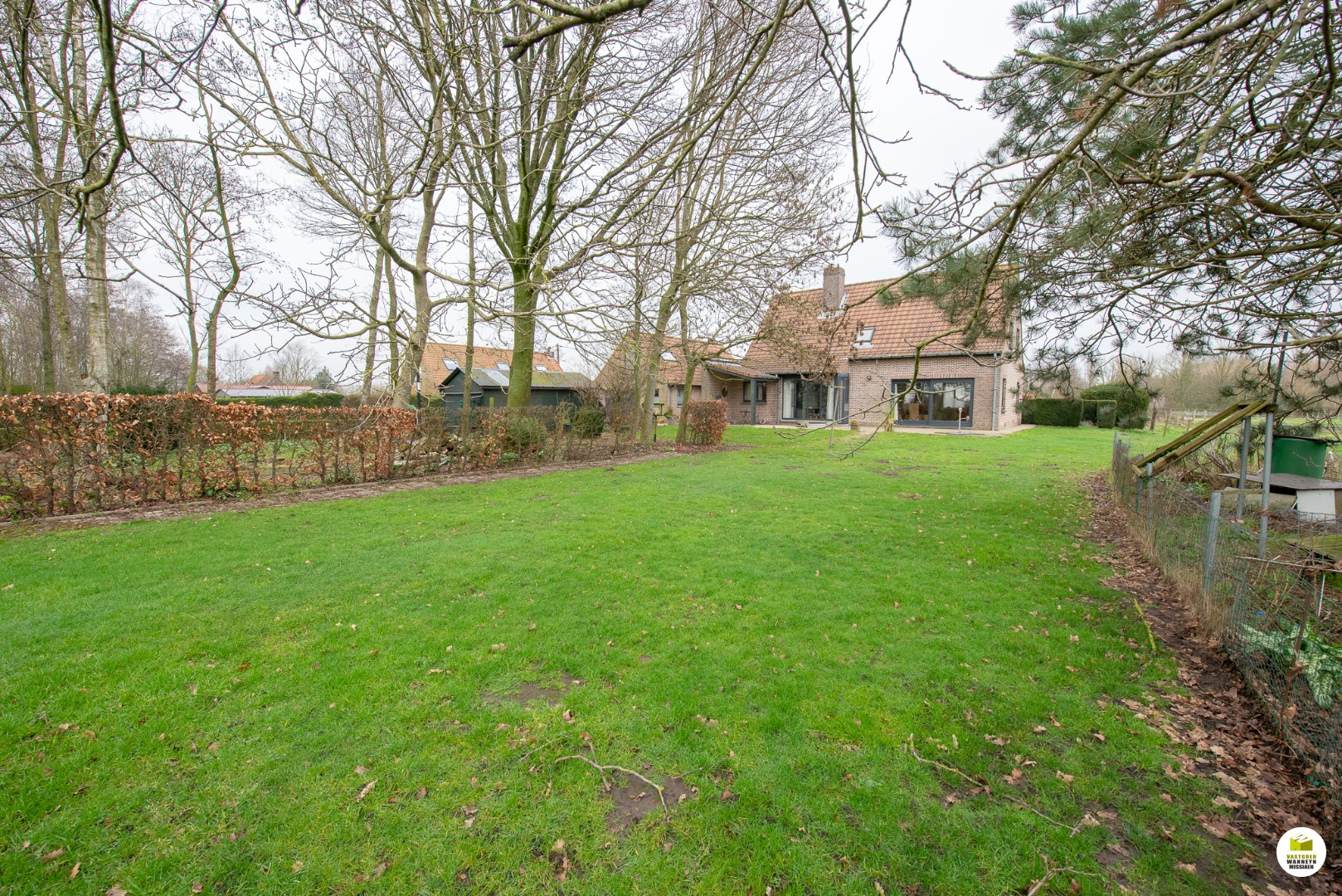 Landelijk gelegen alleenstaande woning met gelijkvloers bureel (12m2) en grote garage (65m2) met 3/4 slaapkamers op +/- 1700m2 zicht op de velden