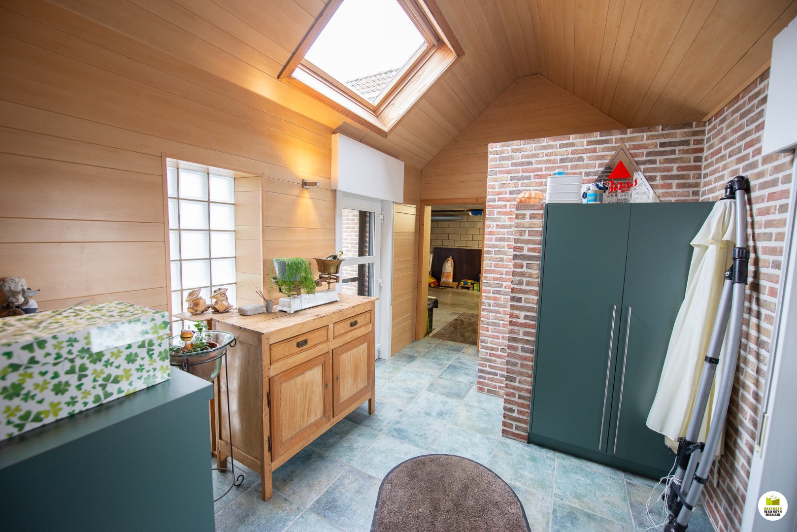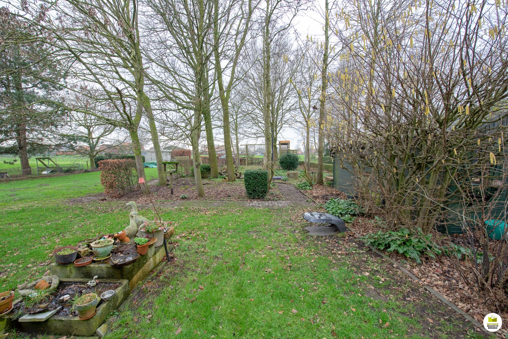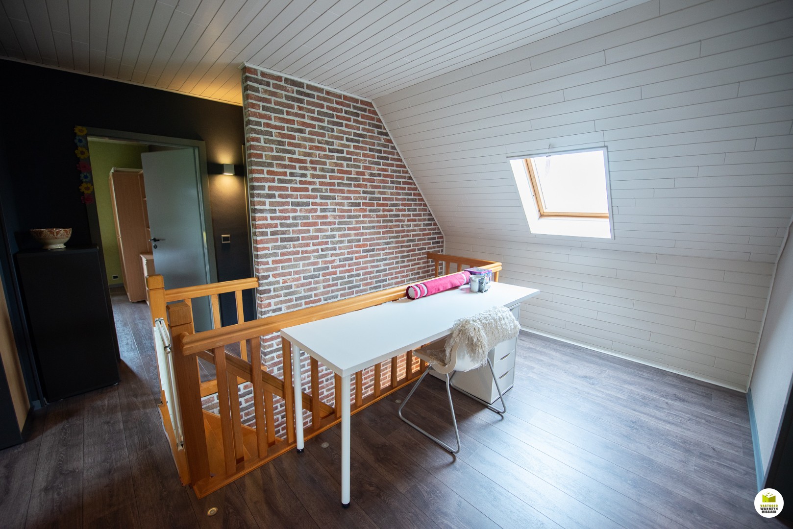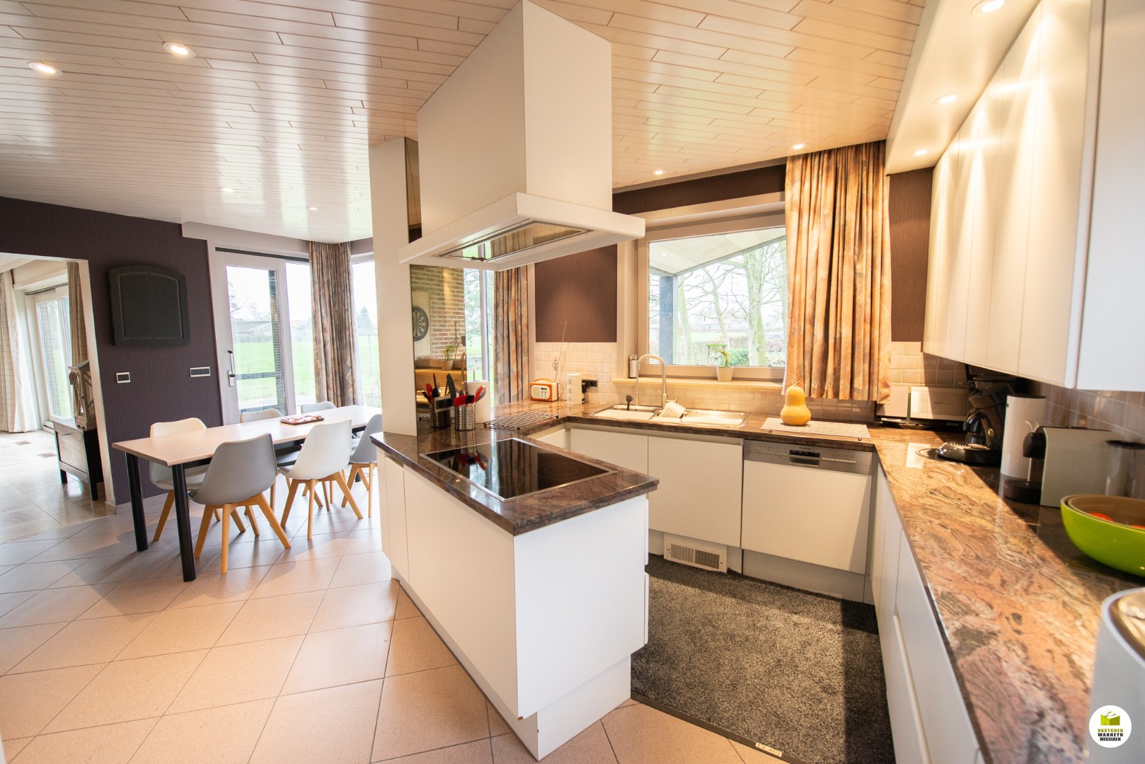 Landelijk gelegen alleenstaande woning met gelijkvloers bureel (12m2) en grote garage (65m2) met 3/4 slaapkamers op +/- 1700m2 zicht op de velden