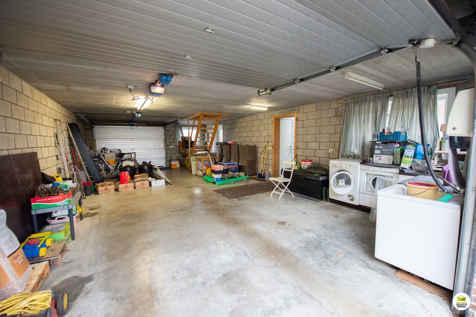 Er is een tweede inkomhal met gastentoilet en toegang via een sas naar het gelijkvloers bureel en de was -en stookplaats. Het bureel kan ook gebruikt worden als gelijkvloerse slaapkamer want in de wasplaats is er ook een douche voorzien. Het bureel meet 3,5m x3,5m en is voorzien van inbouwkasten en ingebouwd bureau. ... Rechtstreeks toegankelijk van de tweede inkomhal vinden we en grote garage (10 x 6m) ideaal voor een kleine zelfstandige met een vaste trap naar eerste verdieping (niet ingericht), en wordt momenteel als bergruimte gebruikt (40m2).De garage is toegankelijk met 2 automatische poorten.