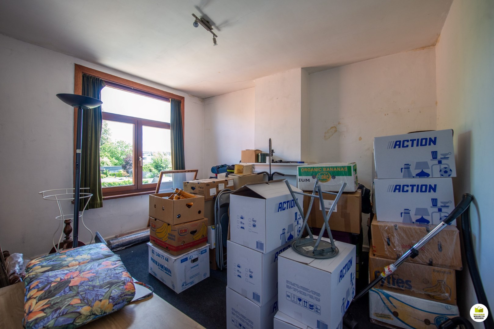 De indeling van de woning is praktisch en functioneel, met voldoende ruimte voor een woonkamer, eetkamer, keuken, slaapkamers en een badkamer. Binnenkomen doen we in de aparte inkomhal. Deze staat in verbinding met de zithoek een een voorplaats, ... waar kan gespeeld worden met de ruimtes om er bijvoorbeeld een eetplaats of bureau van te maken. Verder is de keuken gelegen. Deze is basis ingericht maar wel voorzien van de nodige apparatuur en uitrustingen. Palend aan de keuken vinden we de badkamer met lavabo en douche terug en vervolgens een apart gastentoilet. Vanuit de keuken is via de achterdeur toegang tot het terras met rustgevende vijver en koterijen. Vanuit de tuin kan men ook naar de garage, die dus eigenlijk ook als sas kan dienen voor het (tuin)afval of fietsen. Waardoor er niet door de woning dient gegaan te worden. Tot slot is er beneden ook nog een kelder.