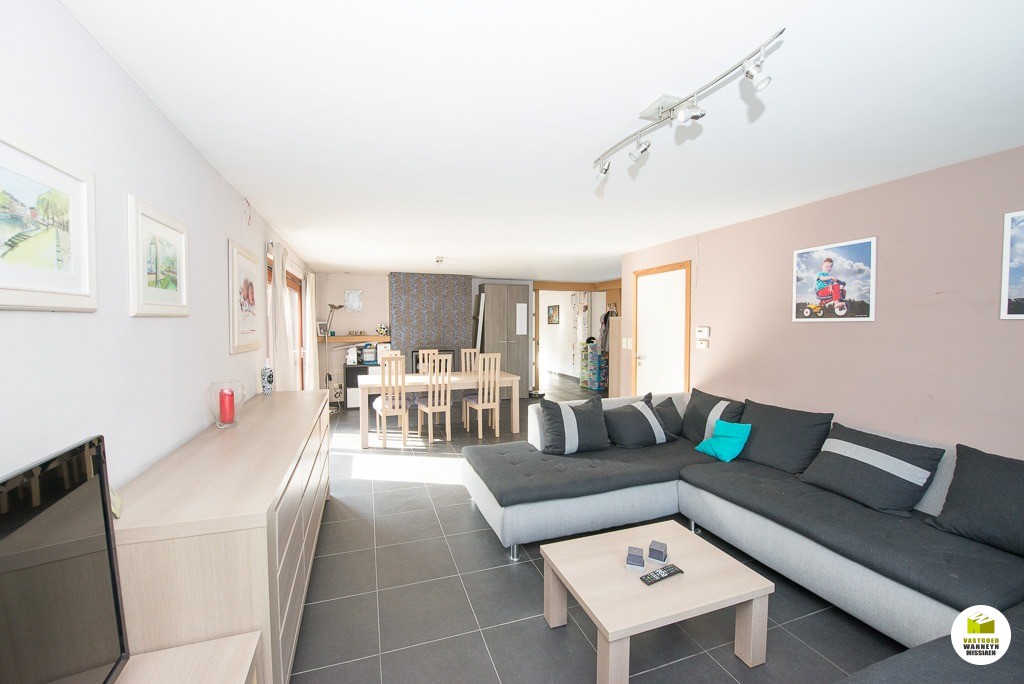 Landelijk gelegen instapklare woning met tuin en garage nabij het centrum van Ruiselede. Gelijkvloers: gastentoilet, lichtrijke living met houtcassette, ruime volledig uitgeruste keuken (vaatwas, frigo, microgolf en oven), garage met automatische poort. Verdiep: ruime slaapkamer aan voorzijde die opgesplitst kan worden in 2 kamers (2 deuren), dressing, ruime slaapkamer aan achterzijde, recente badkamer met wastafel, inloopdouche, ligbad en toilet. Centrale verwarming op gas (ondergrondse propaantank). Tuin met zonneterras (morgen- en avondzon)! Zeer rustig gelegen, doch op fietsafstand van centrum en goede verbinding naar Aalter en Tielt! Voor meer info: 050/70 34 35