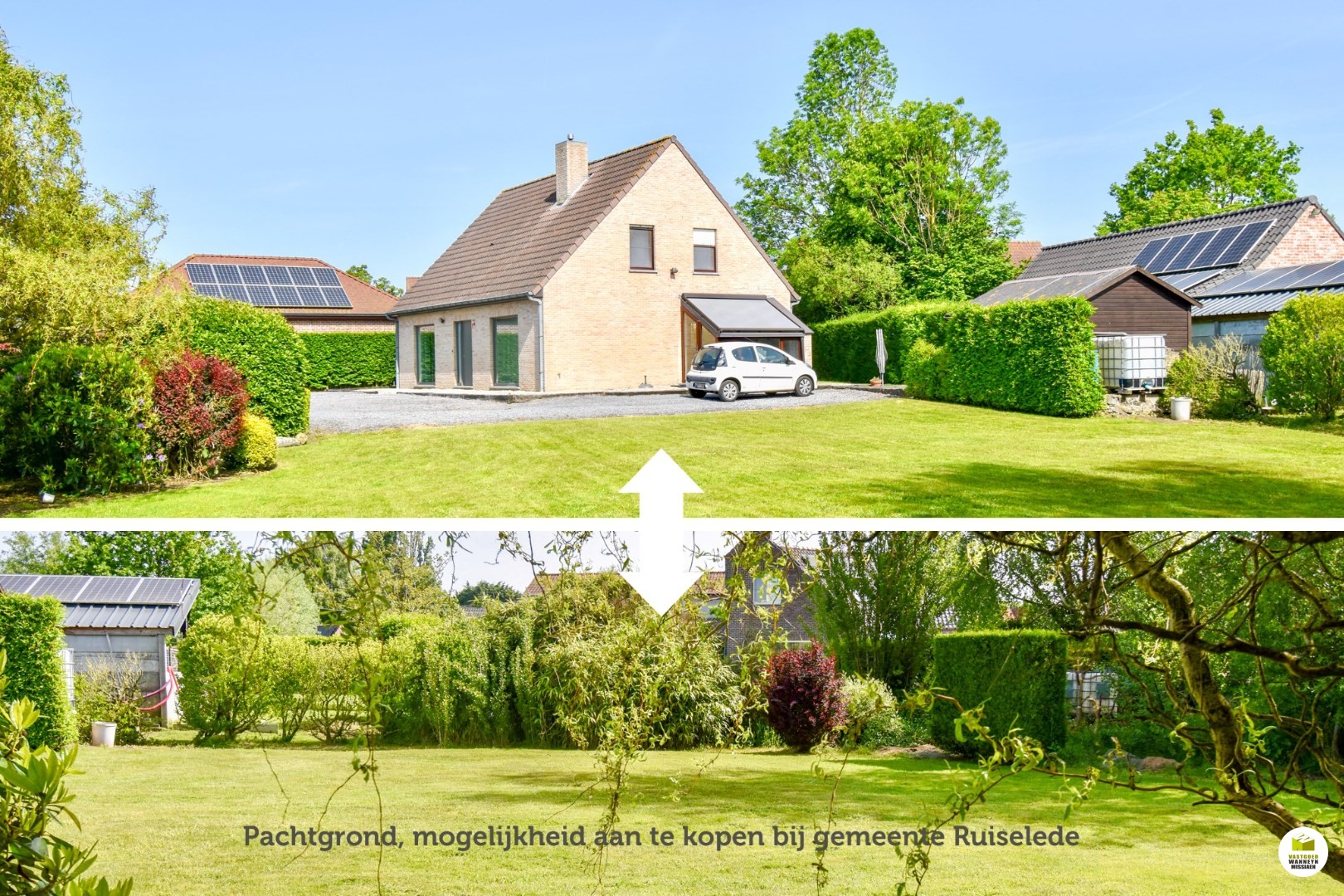 De naastliggende tuin meet +- 600 vierkante meter, momenteel wordt dit stuk eigendom gepacht aan de gemeente Ruiselede, maar het kan bijkomend aangekocht worden aan een voordelige prijs.