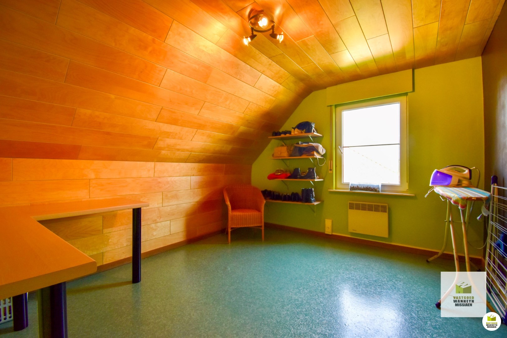 Inkomhal met gastentoilet, woonkamer (verwarmd met pelletkachel) met open keuken met aangrenzend een koele berging tweede woonkamer met kitchenette en gelijkvloerse slaapkamer met ... douchekamer met lavabo. Op de verdieping is er een nachthal met 4 ruime slaapkamers, een badkamer voorzien van dubbele lavabo, ligbad, en douchecabine, er nog een extra zolderruimte.