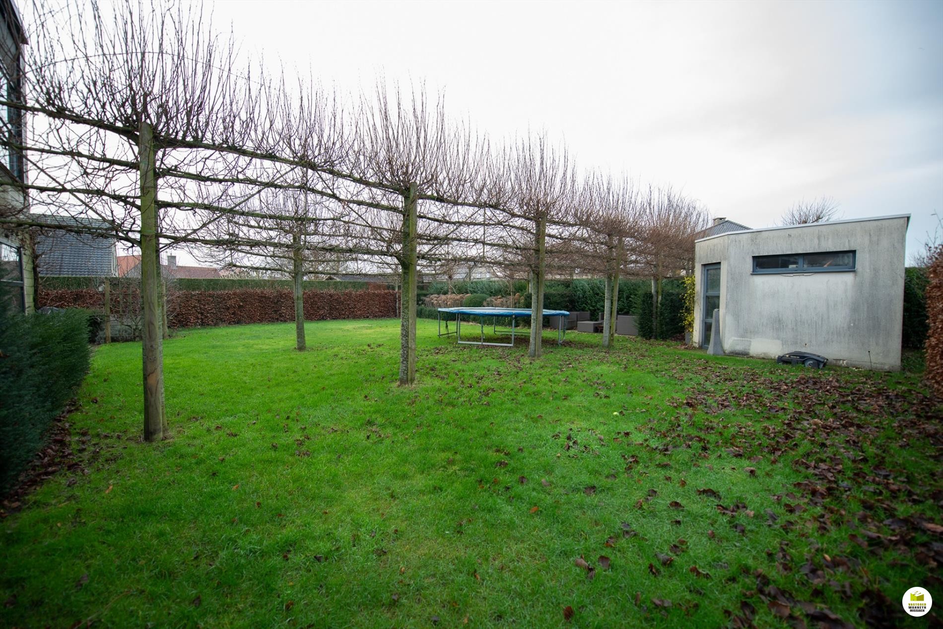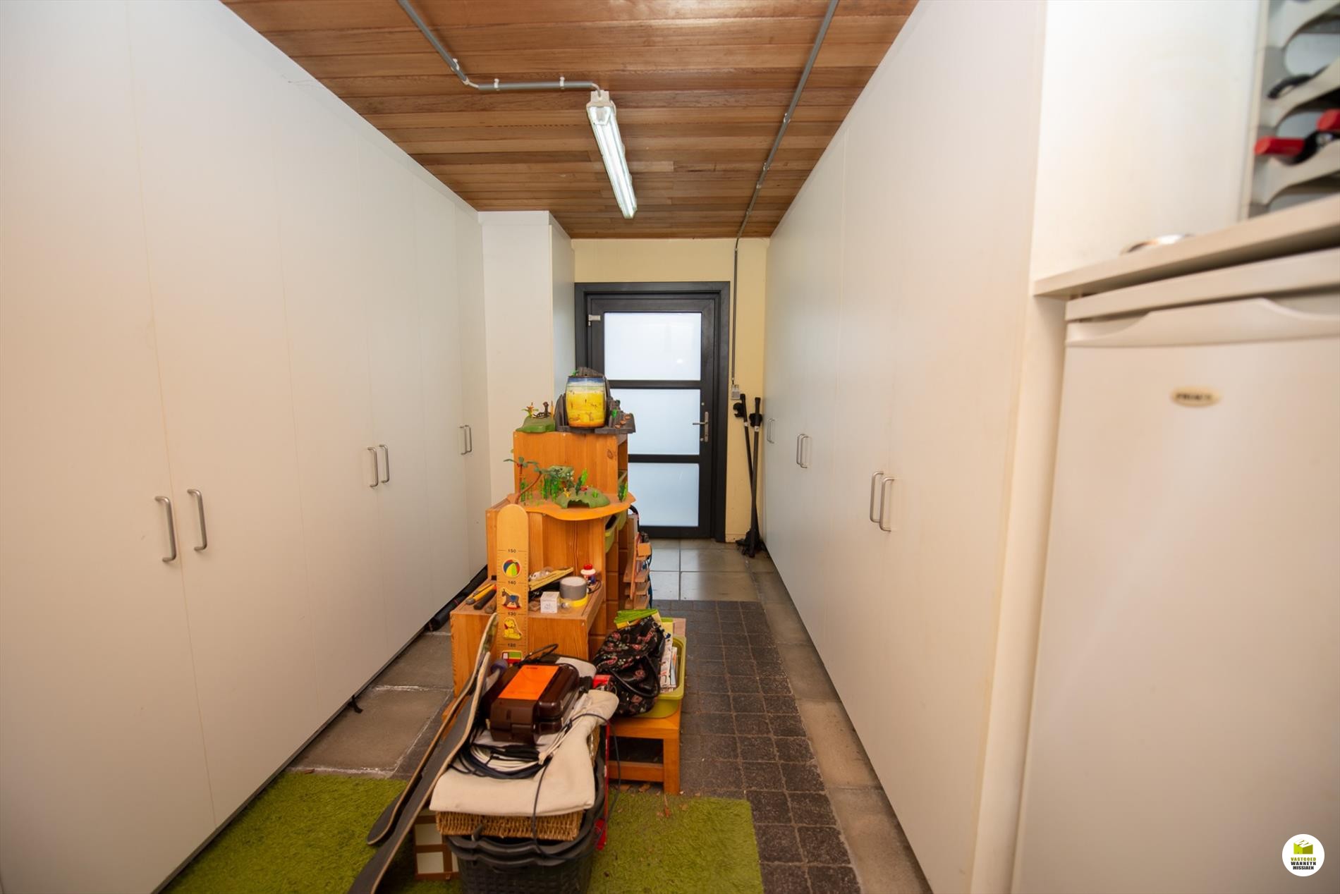 Via de keuken komen we in de bijkeuken die tevens dienst doet als was-en bergplaats met aansluitend toegang naar een extra berging. Deze ruimte kan tevens dienst doen als praktijkruimte. Beide kamers zijn praktisch ingericht met inbouwkasten. Via een achterdeur komen we in de tuin waar we toegang hebben via een wandelpad naar de fietsen- en vuilnisberging. De tuin is aangekleed met leibomen en voorzien van gezellige terrasjes zodat je op elk moment van de dag in de zon of in de schaduw kunt vertoeven. Gemakkelijk is ook de gemetste buitenberging. Ook de kids kunnen hier voetballen of hun trampoline zetten.