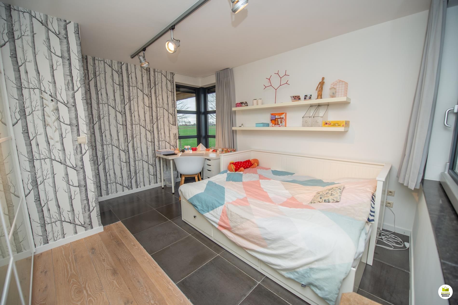 - volledig behangen met vlies en geschilderd in 2017