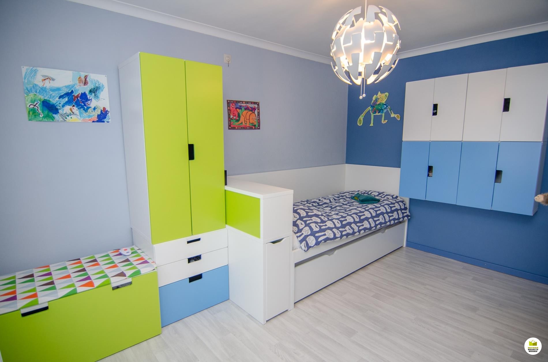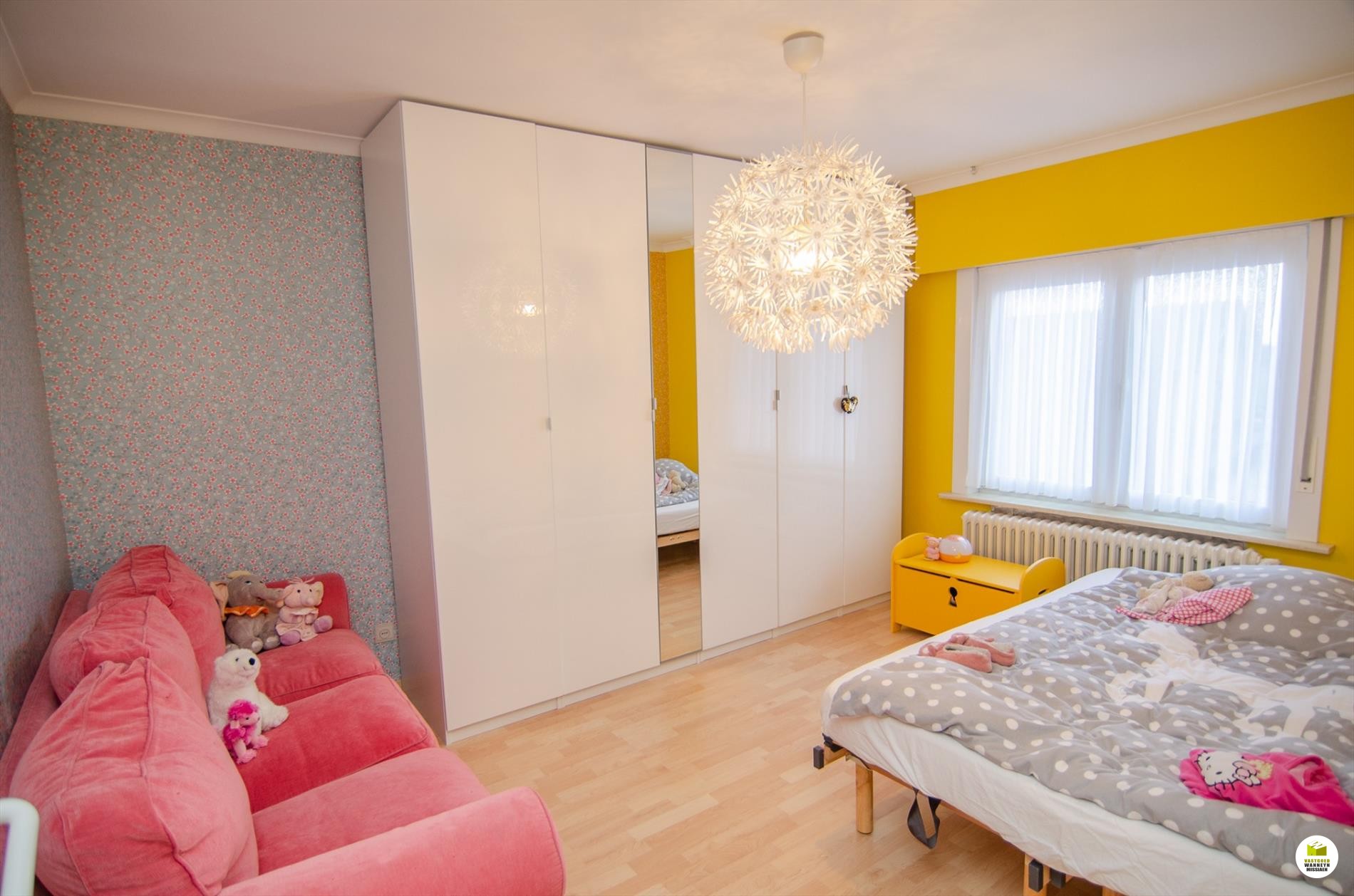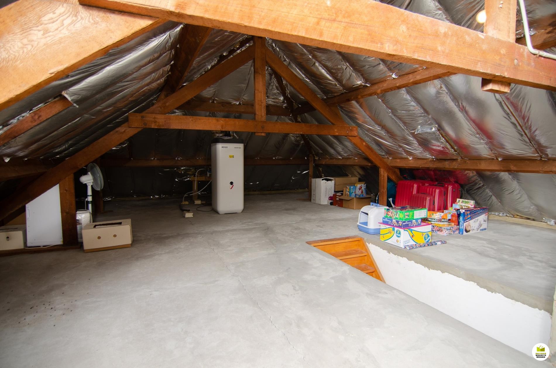 De 1ste verdieping is een volwaardige verdieping, er zijn 5 slpk en een badkamer. 4 slpk zijn ongeveer even groot (12m2). 1 slpk is voorzien van ... praktische inbouwkasten. De vijfde slaapkamer meet 24m2 en is voorzien van een extra berging van 9m2 (ideaal om in te richten als dressing of als tweede badkamer, de leidingen zijn reeds voorzien). De badkamer bevindt zich centraal en is uitgerust met een ligbad, een toilet en lavabo. Met een vaste trap bereiken we de geïsoleerde zolder (60m2) die kan dienen als berging of speelzolder.