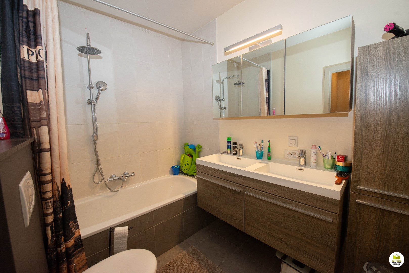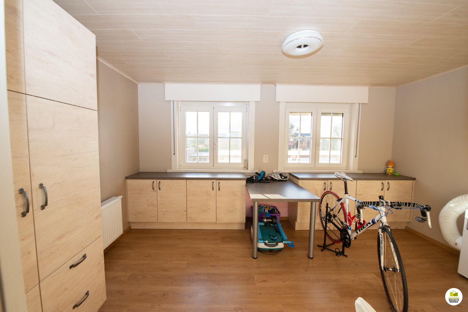 met aansluitend een 4de slaapkamer ( 3,3 x 5m) hier zijn er tafels en kasten ingebouwd. De moderne badkamer is voorzien van een ligbad, dubbele lavabo en een toilet, de afmetingen van deze ruimte bedragen ( 2,55 m x 1,9 m)