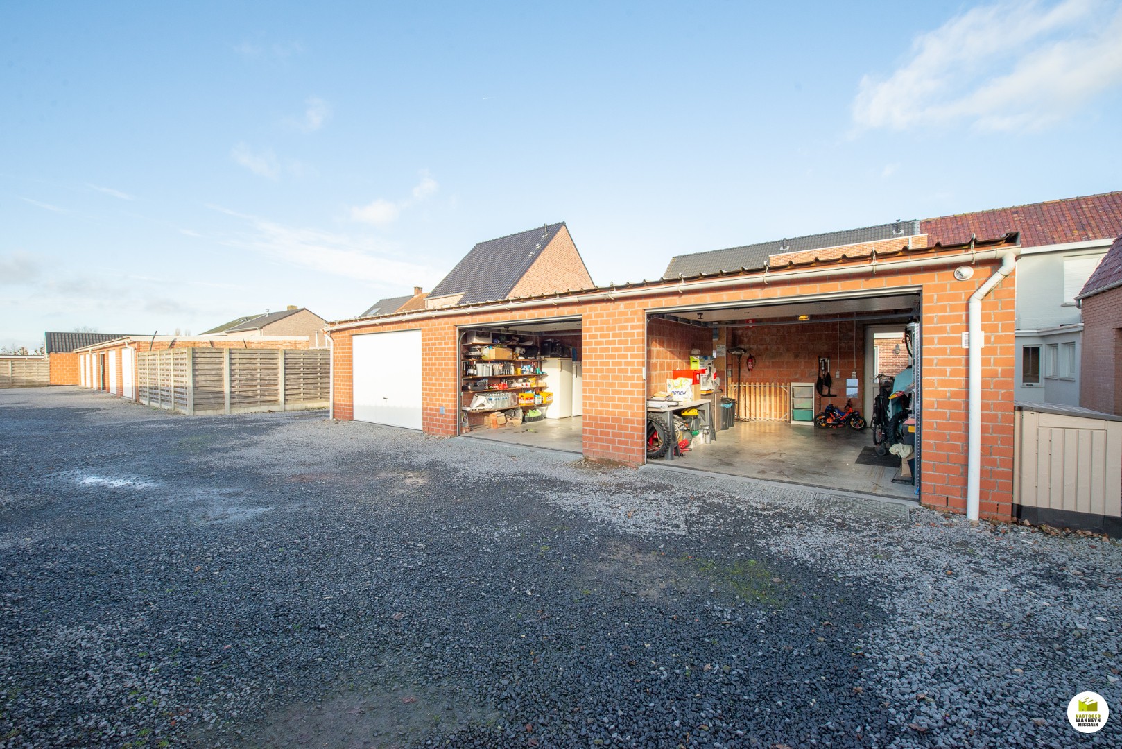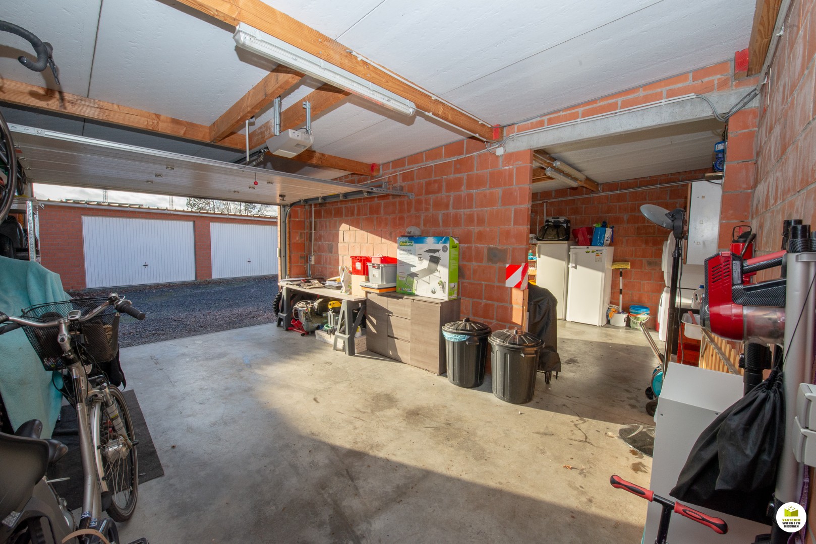 In de garage is er elektriciteit en water voorzien, daardoor ideaal om te benutten als wasplaats. De 2 poorten zijn automatisch en sectionaal. De 2 garage zijn van elkaar gescheiden door een muur met doorgang, daardoor bereik je een totale