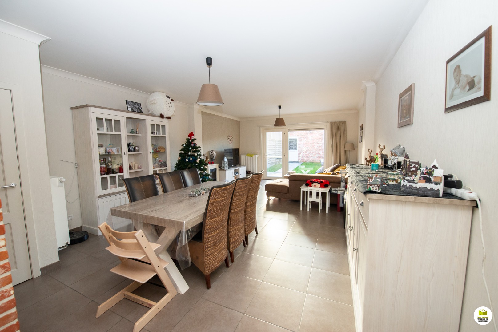 Instapklare recente woning (2009) met 3 slaapkamers en een bureau met een zuidgerichte tuin en groot terras. Er zijn 2 garageboxen (50m2).