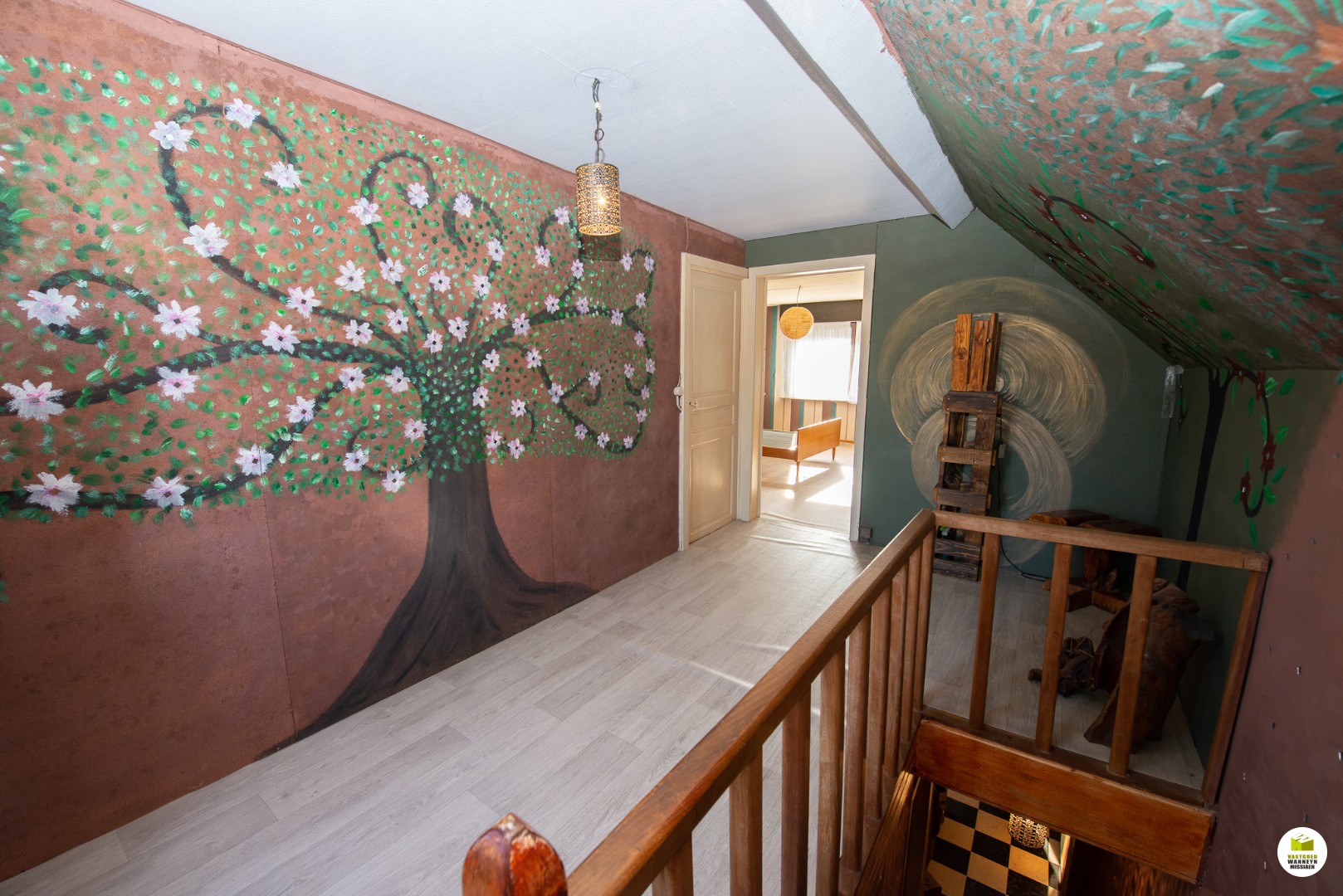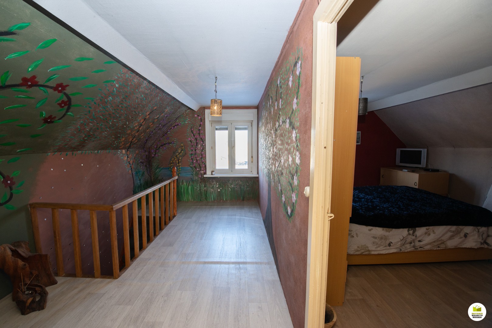 Via de inkomhal kunnen we naar het eerste verdiep waar er 2 slaapkamers zijn; (14m2 en 18m2) met een ruime overloop (10 m2)